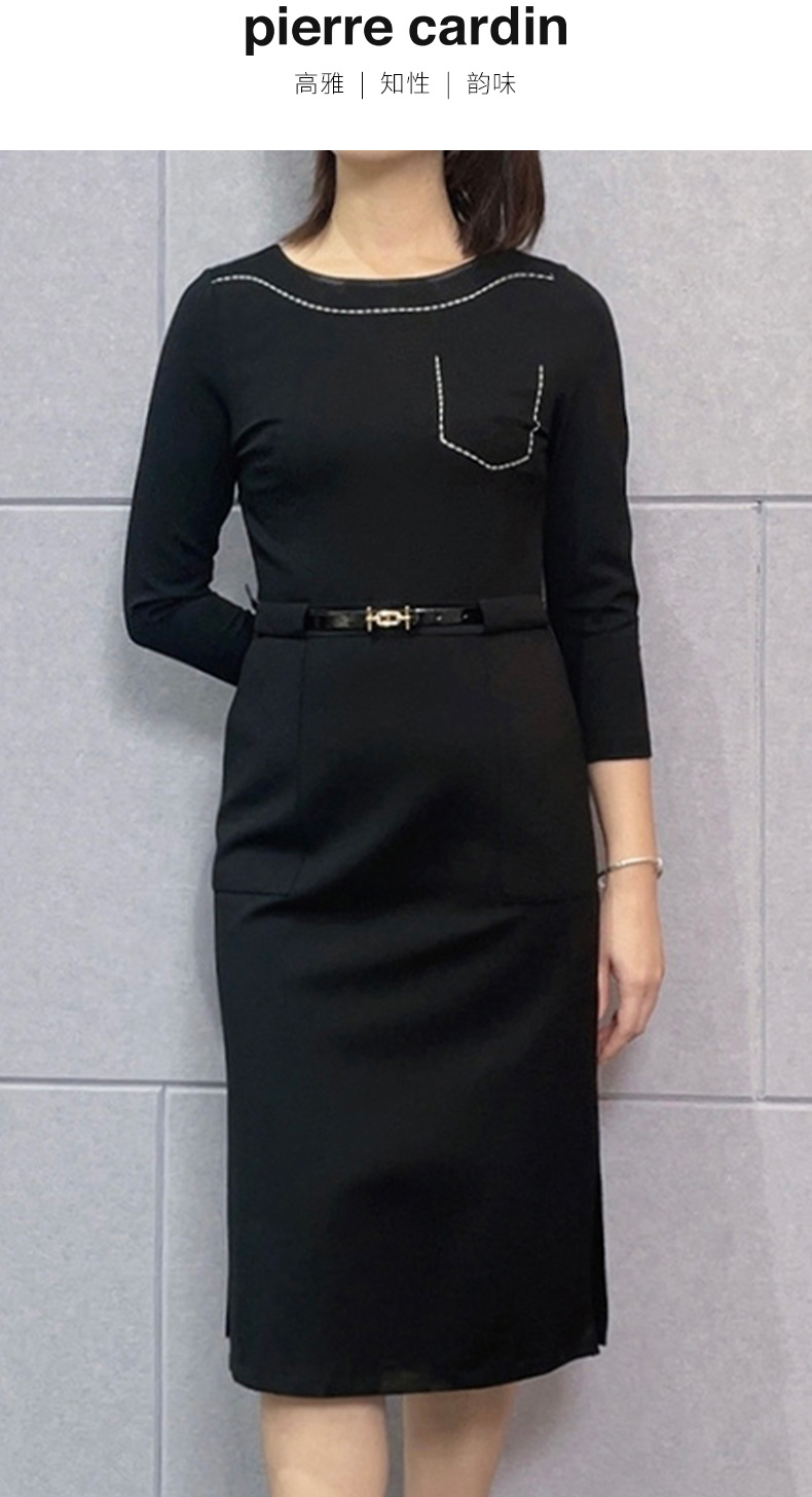 皮尔卡丹女装2024春夏新款黑色简约通勤风连衣裙C42DL30B0