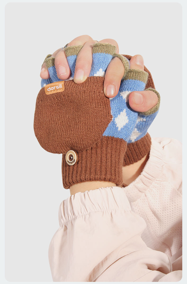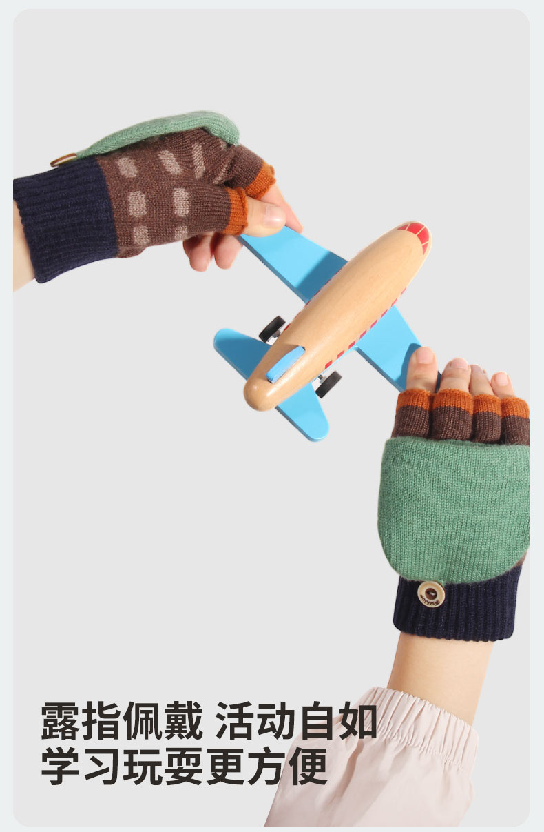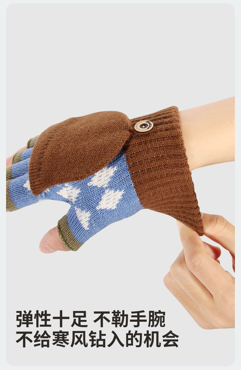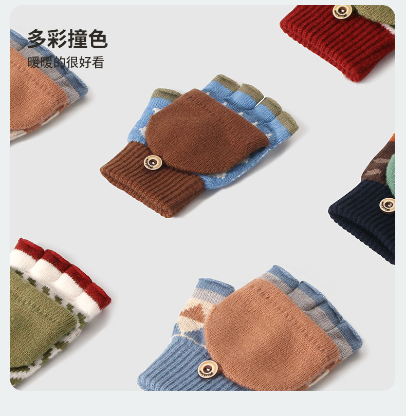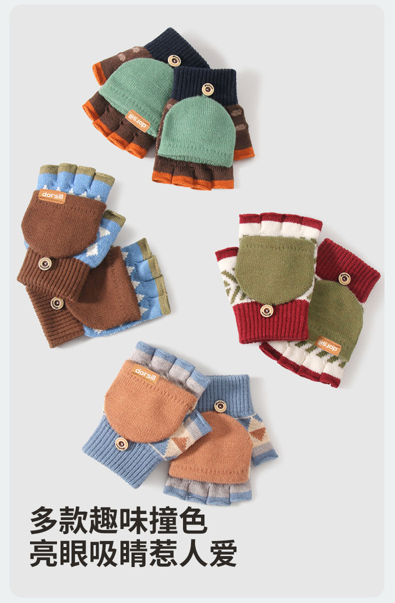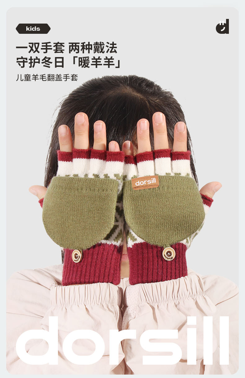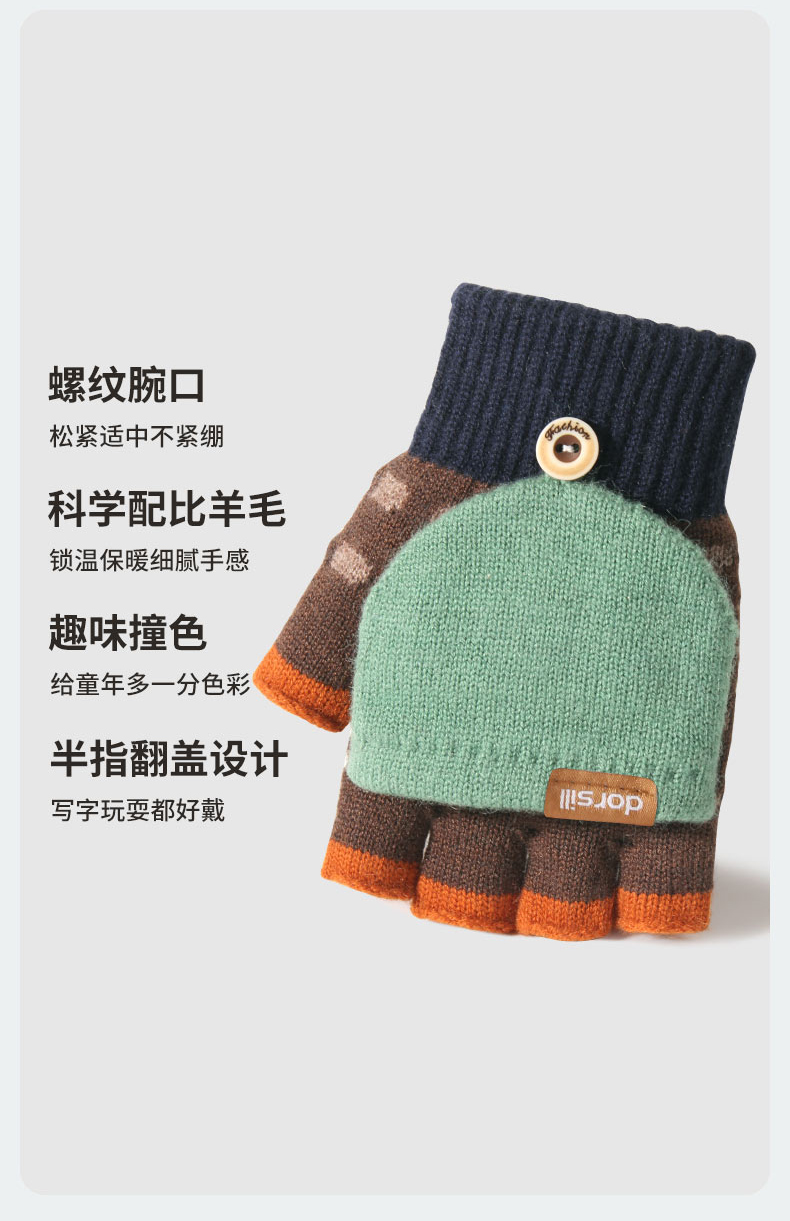 朵熙儿 新款儿童手套秋冬季羊毛保暖男女童翻盖学生写字手套防冻