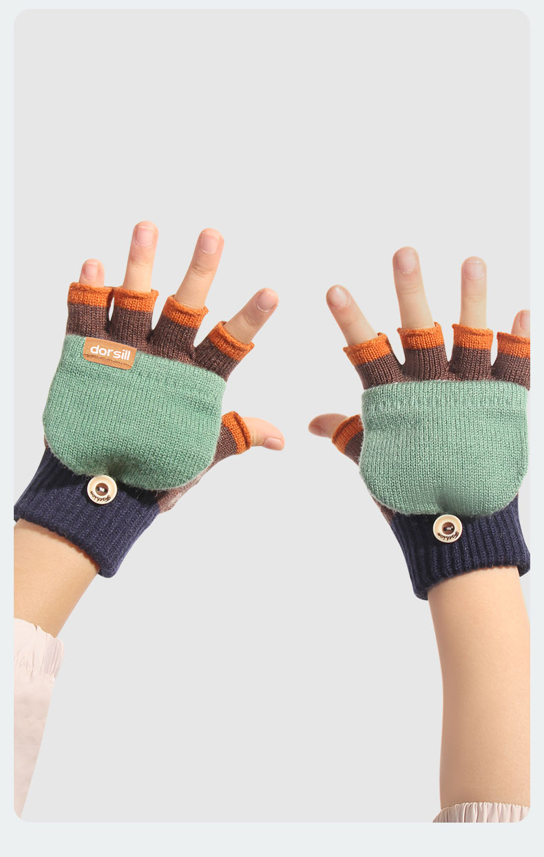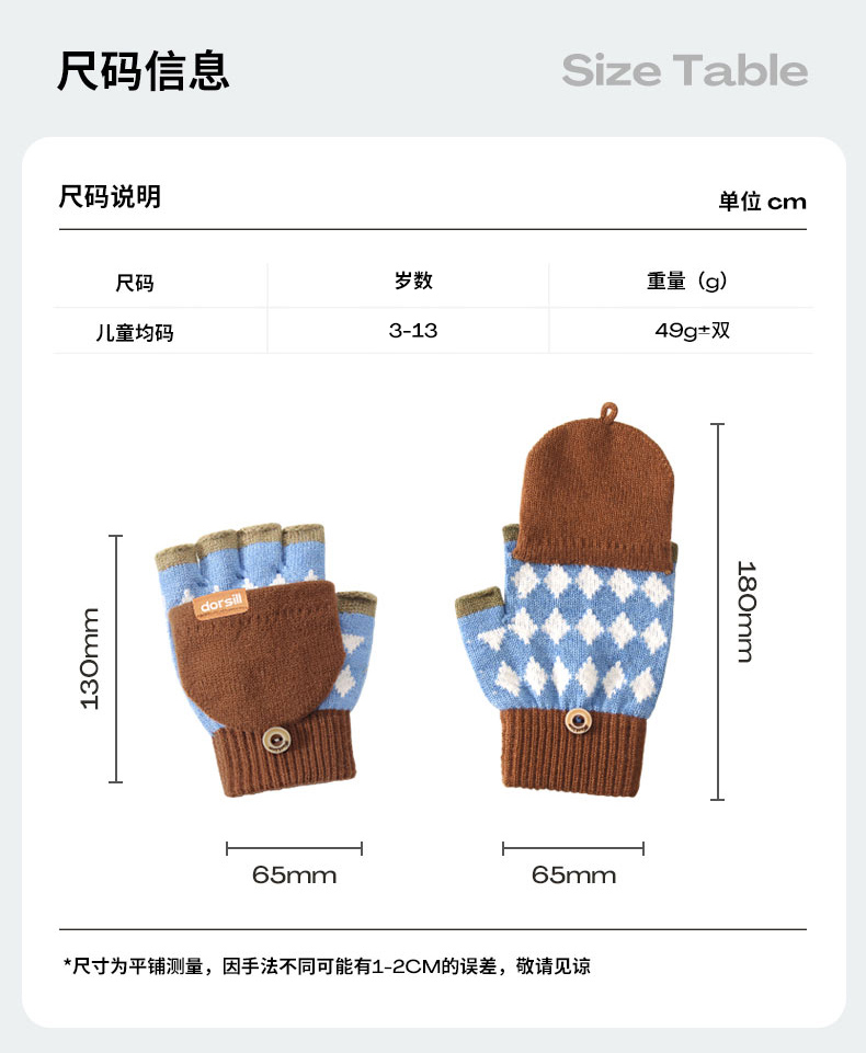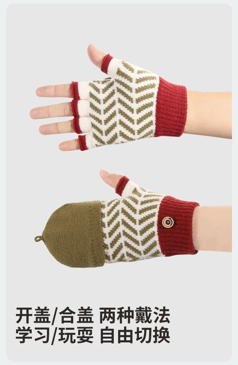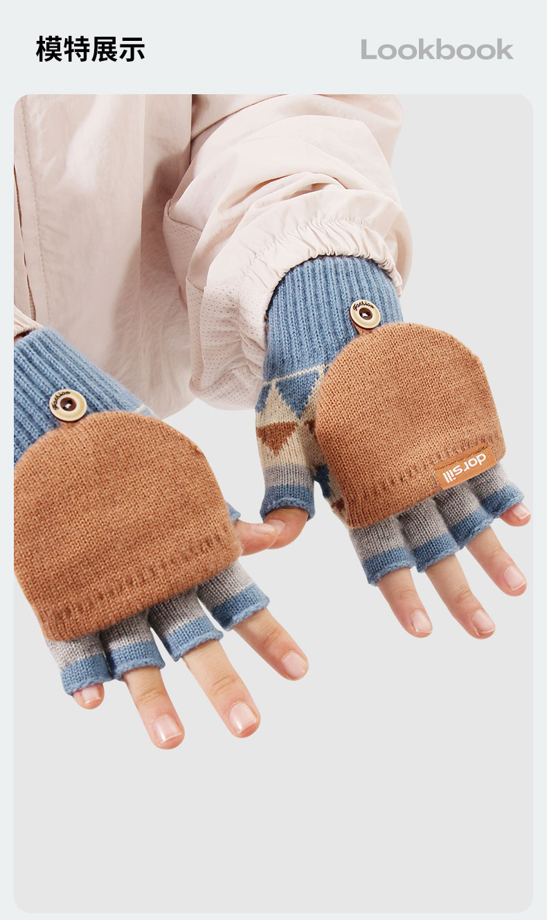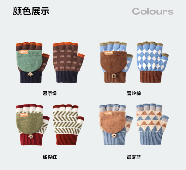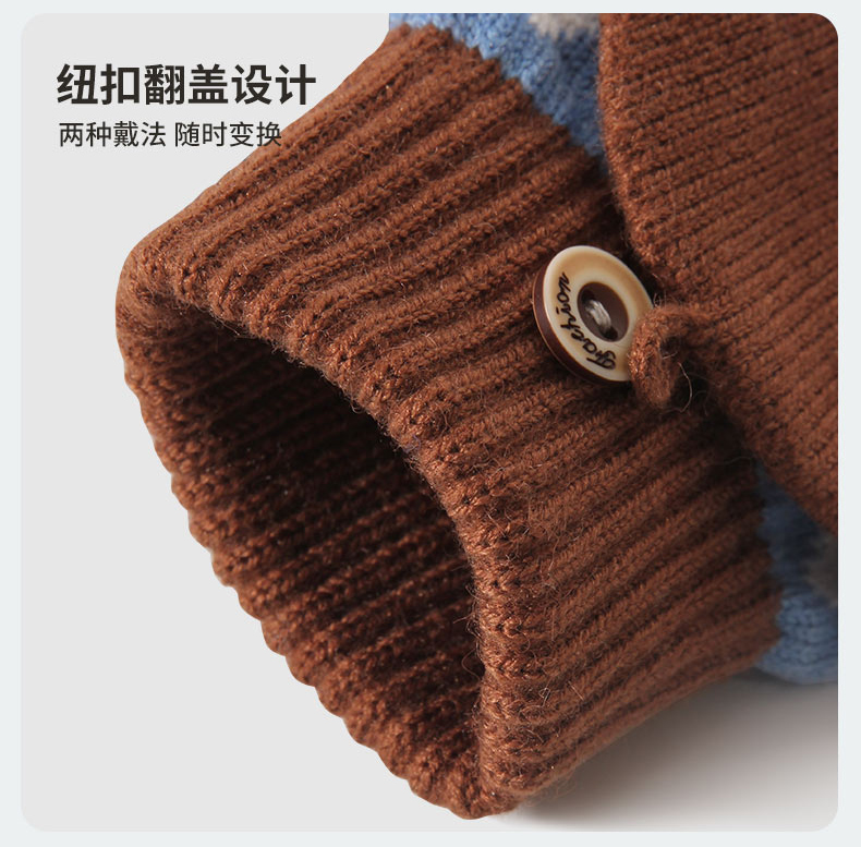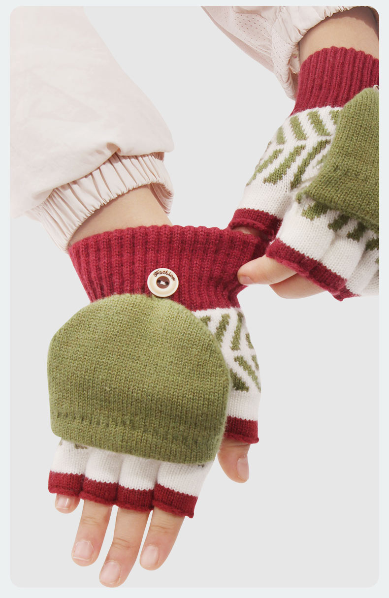 朵熙儿 新款儿童手套秋冬季羊毛保暖男女童翻盖学生写字手套防冻