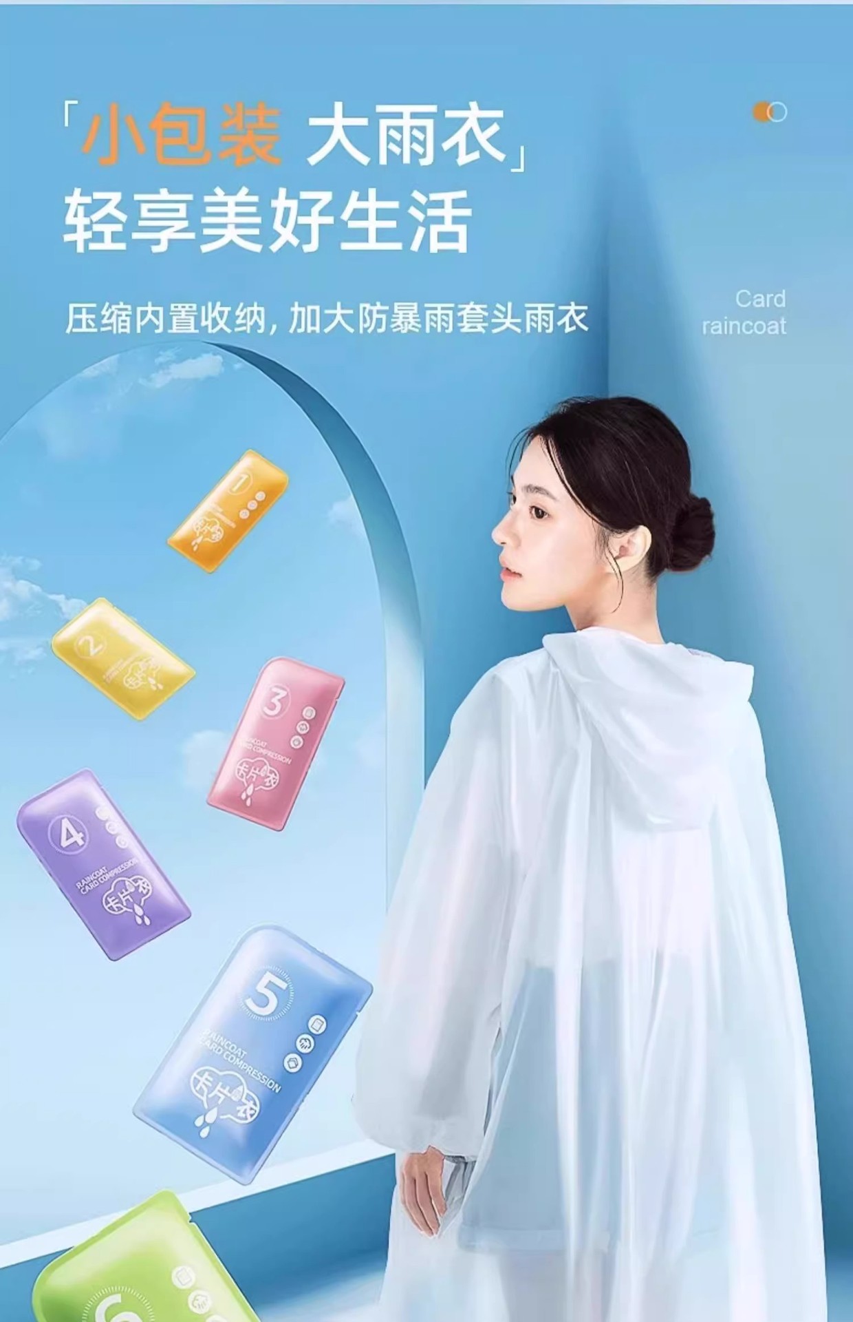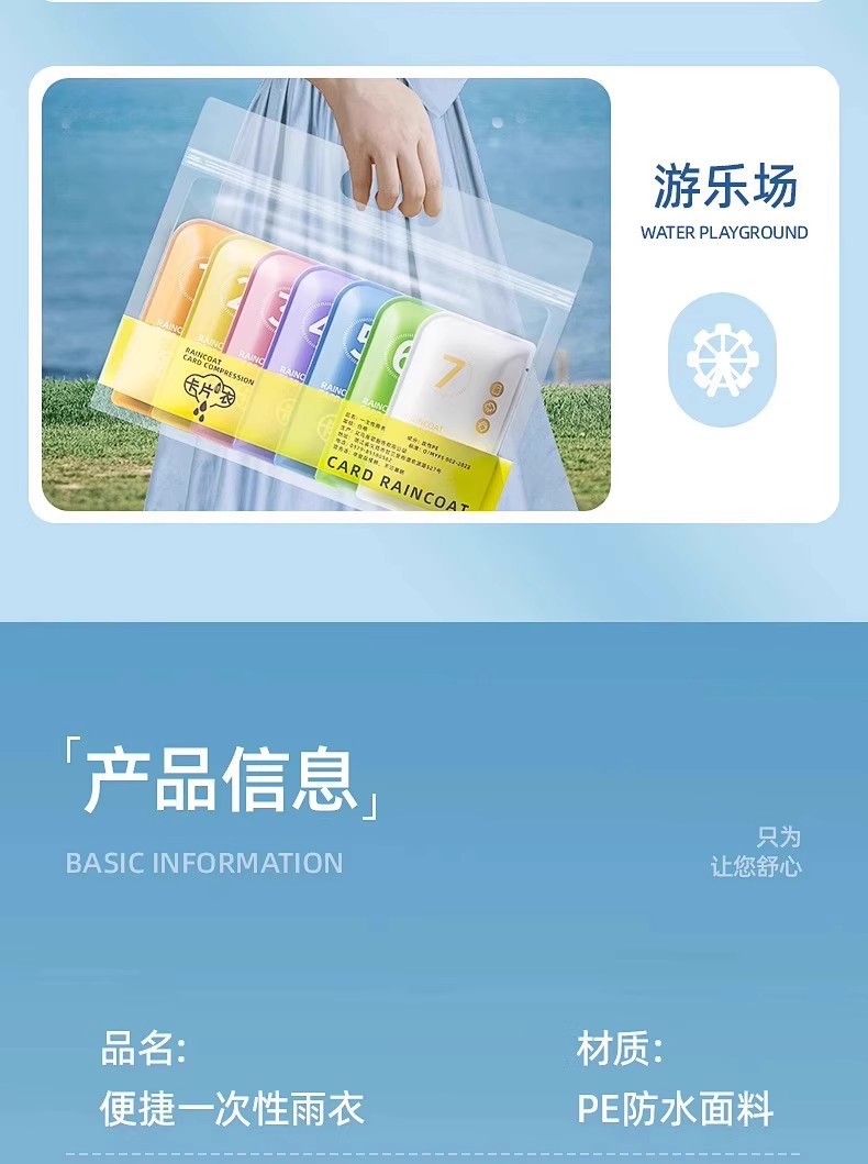 【新色系!独立包装 便携雨披】一次性雨衣 便携束口儿童成人户外雨披 旅游爬山防暴雨长款加厚卡片雨披