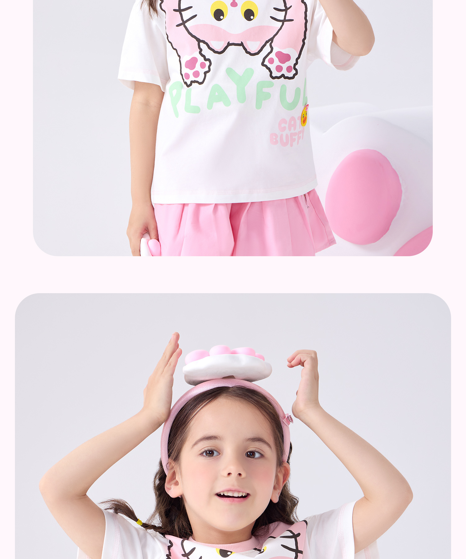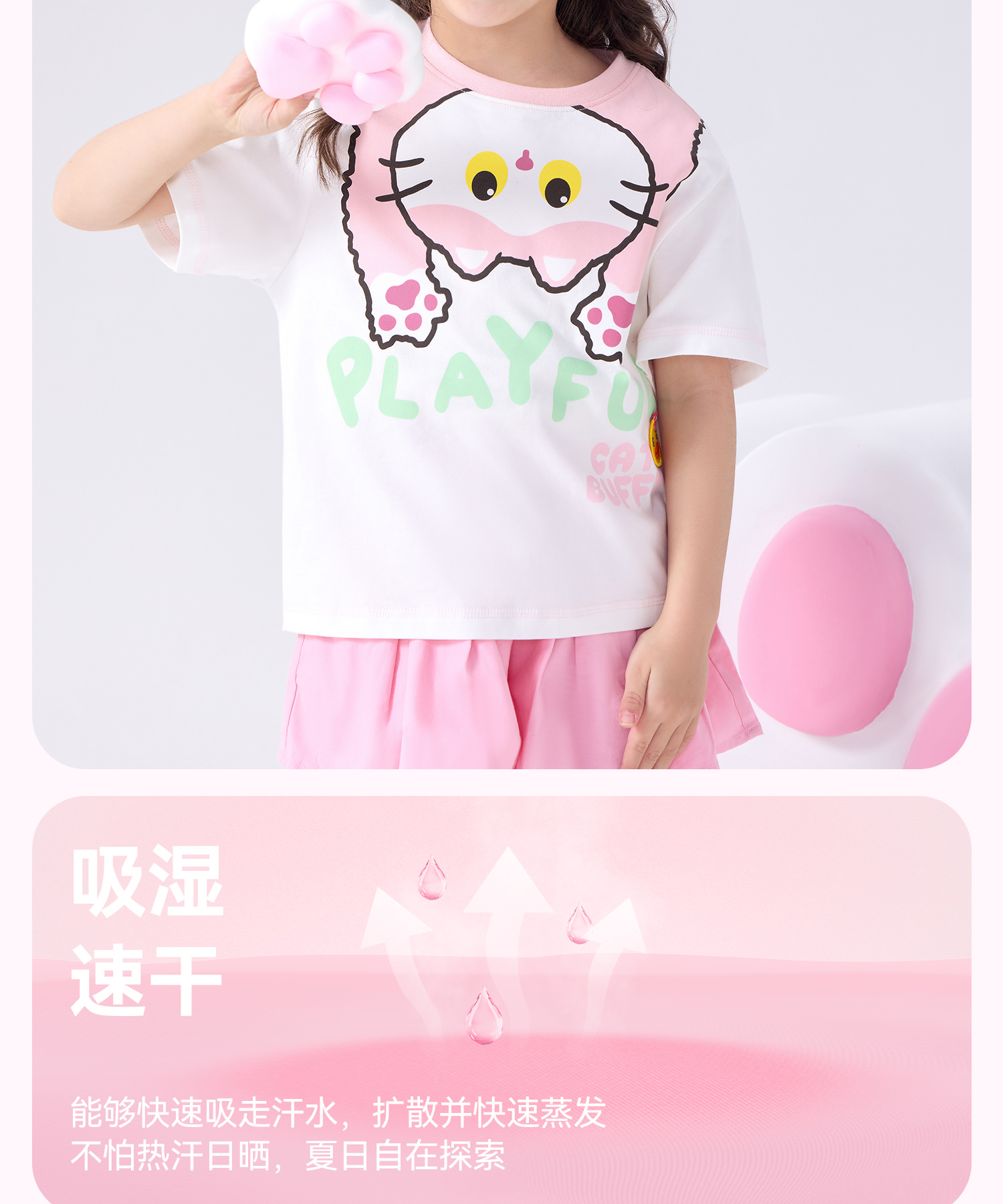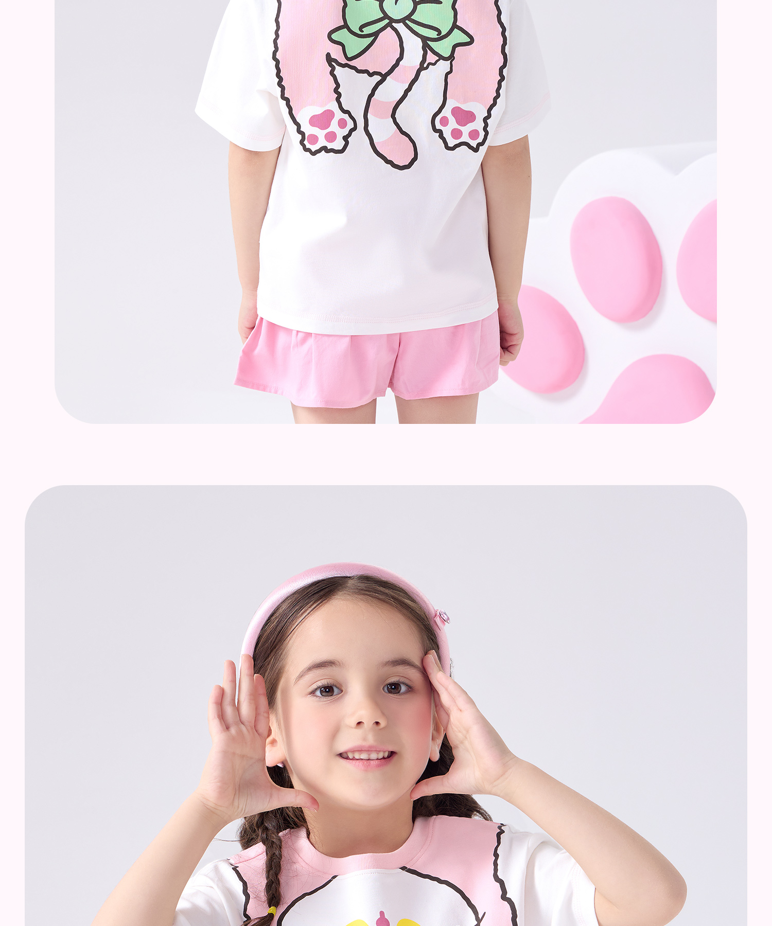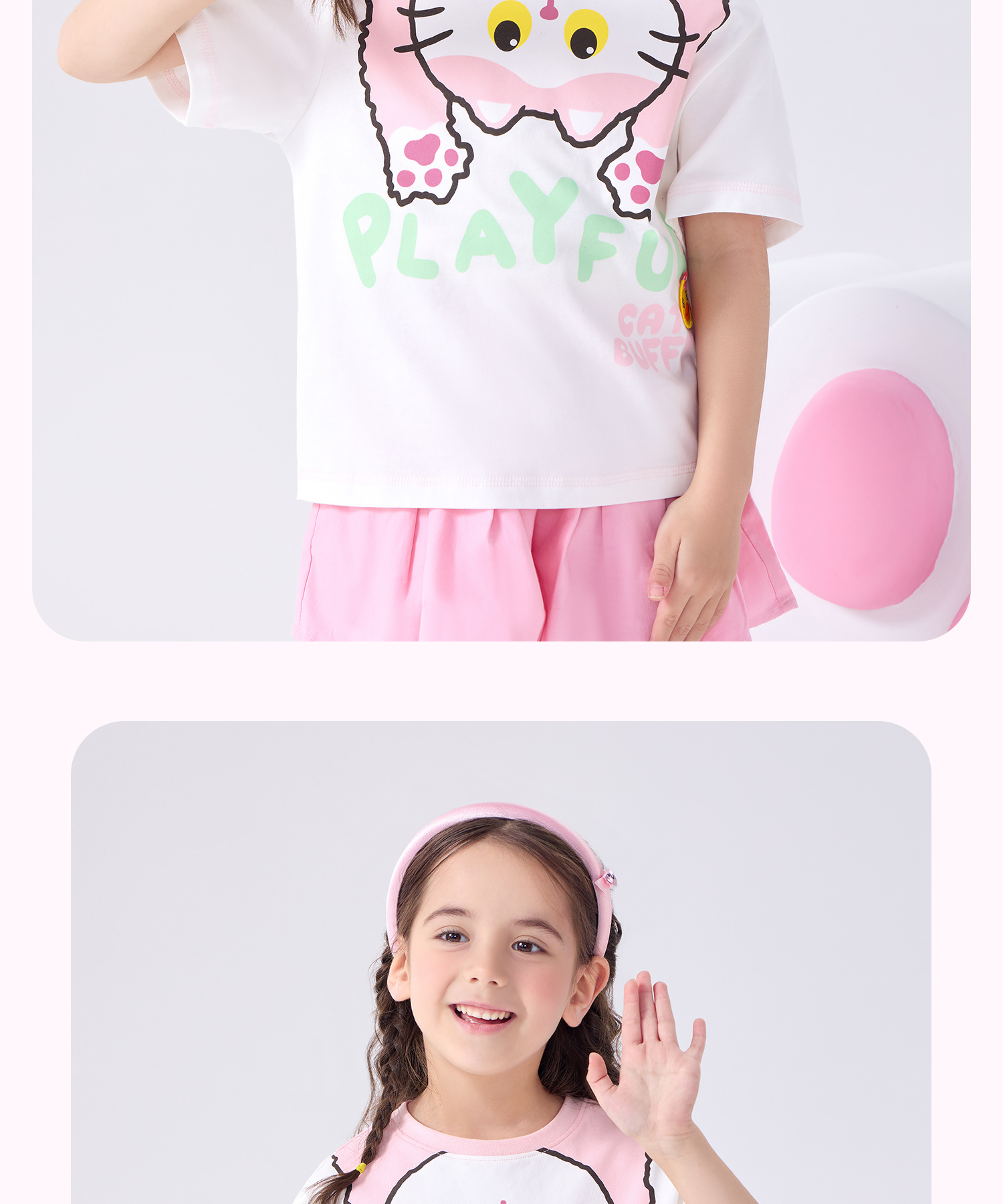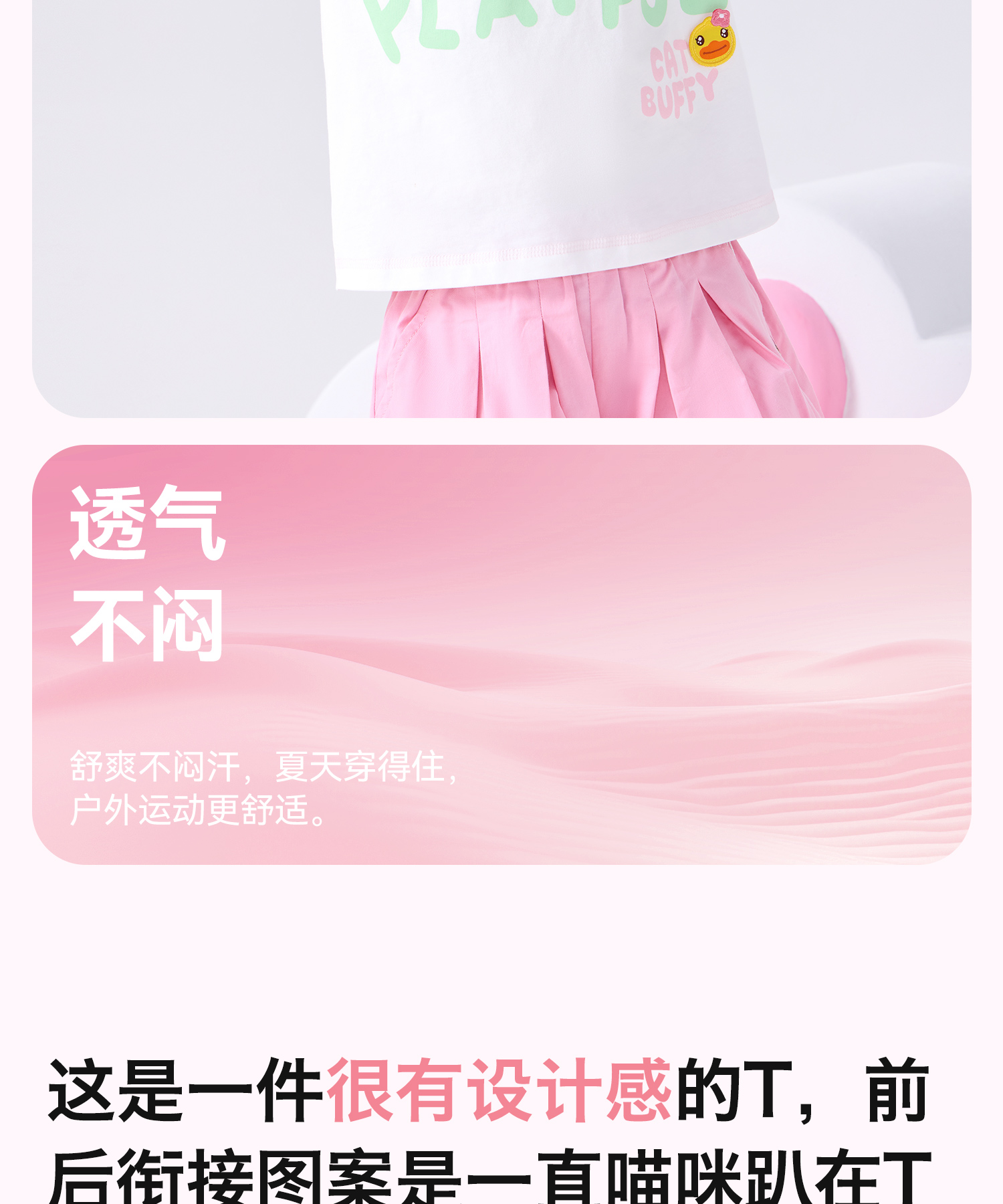 bduck小黄鸭童装夏季童女童T恤短袖夏装纯棉猫咪印花儿童半袖上衣薄款105-150 FF2601013
