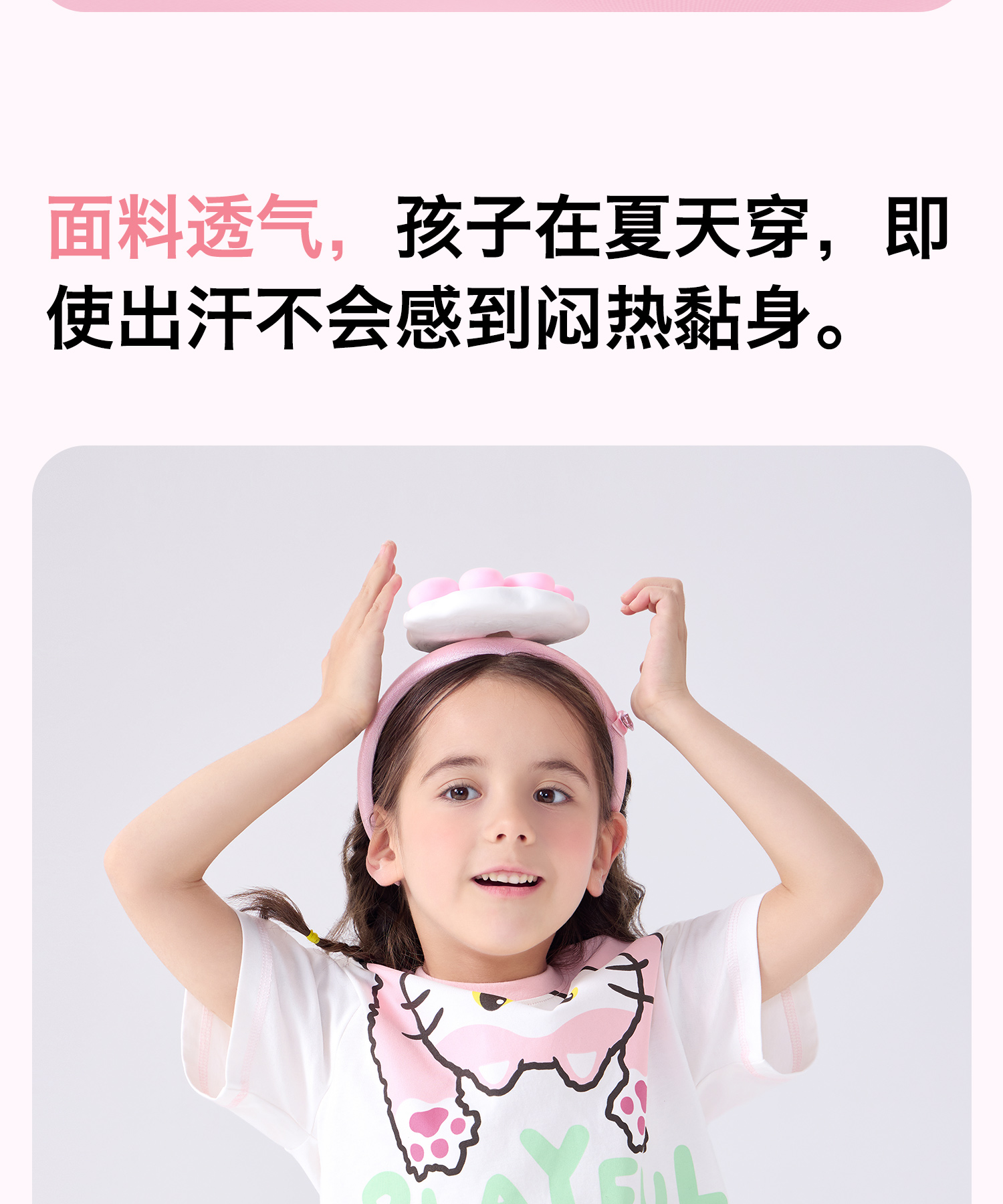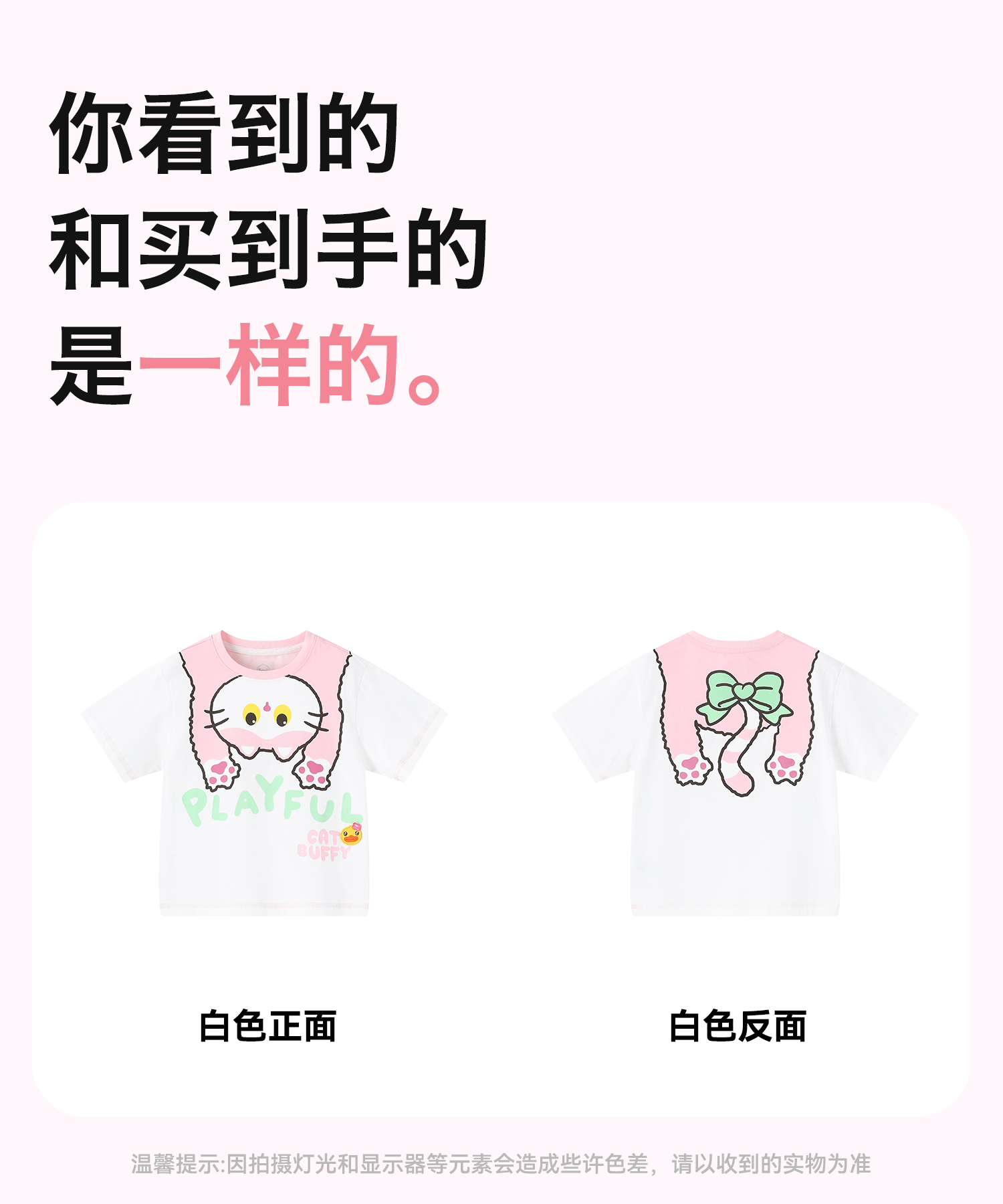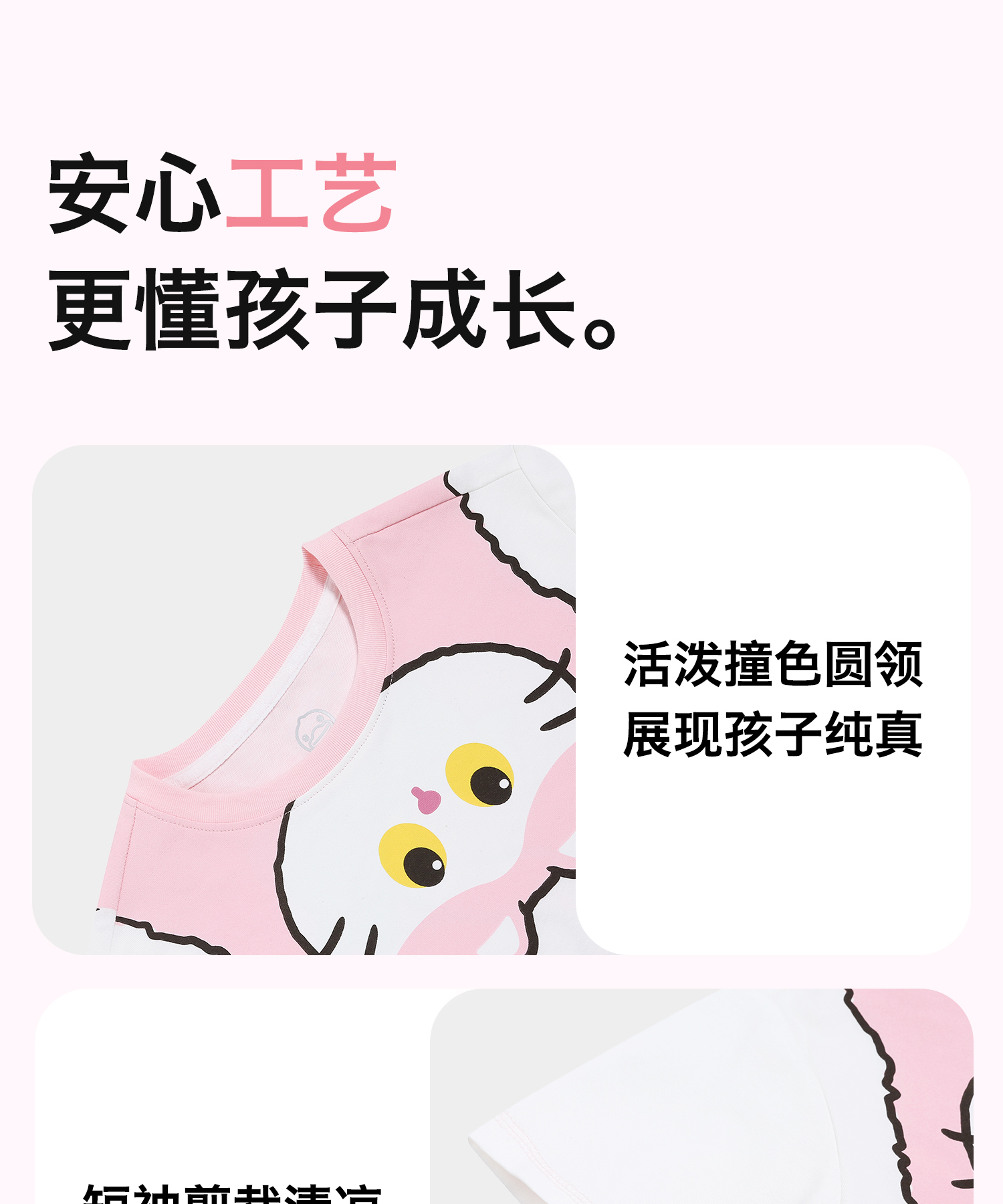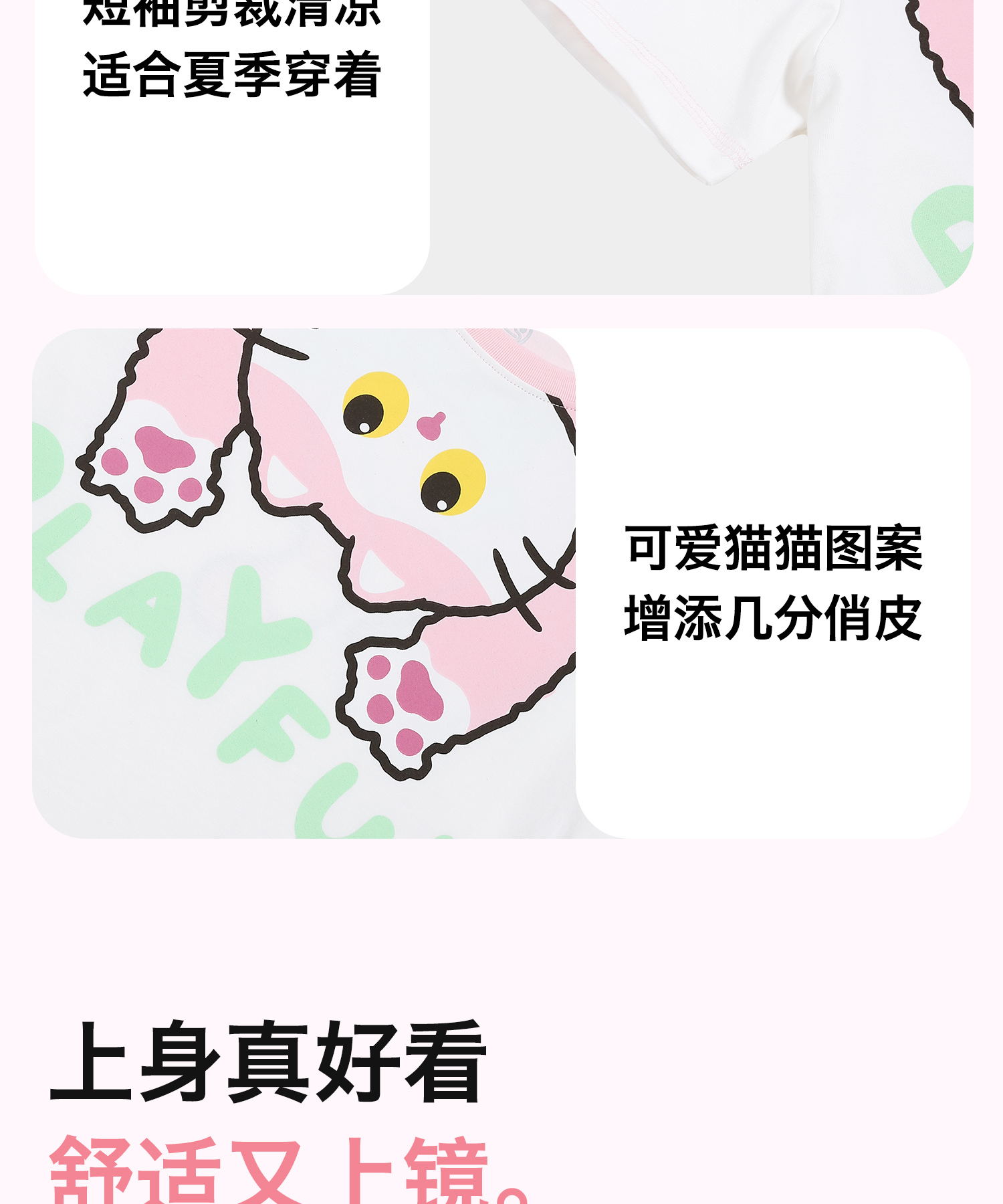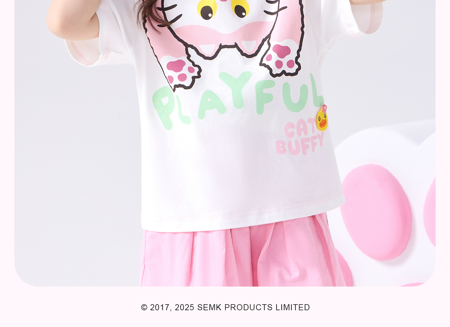 bduck小黄鸭童装夏季童女童T恤短袖夏装纯棉猫咪印花儿童半袖上衣薄款105-150 FF2601013