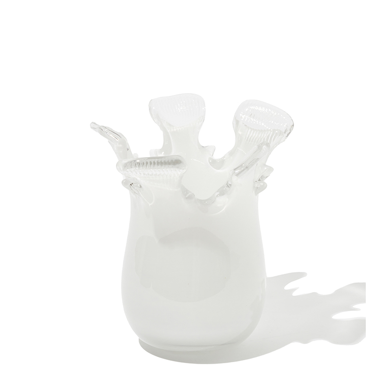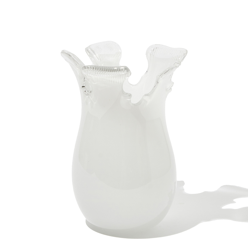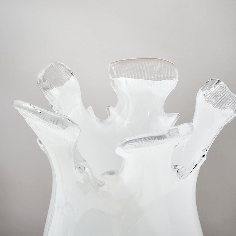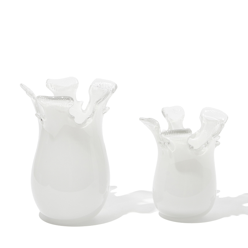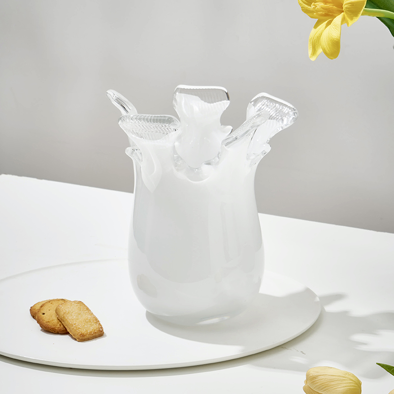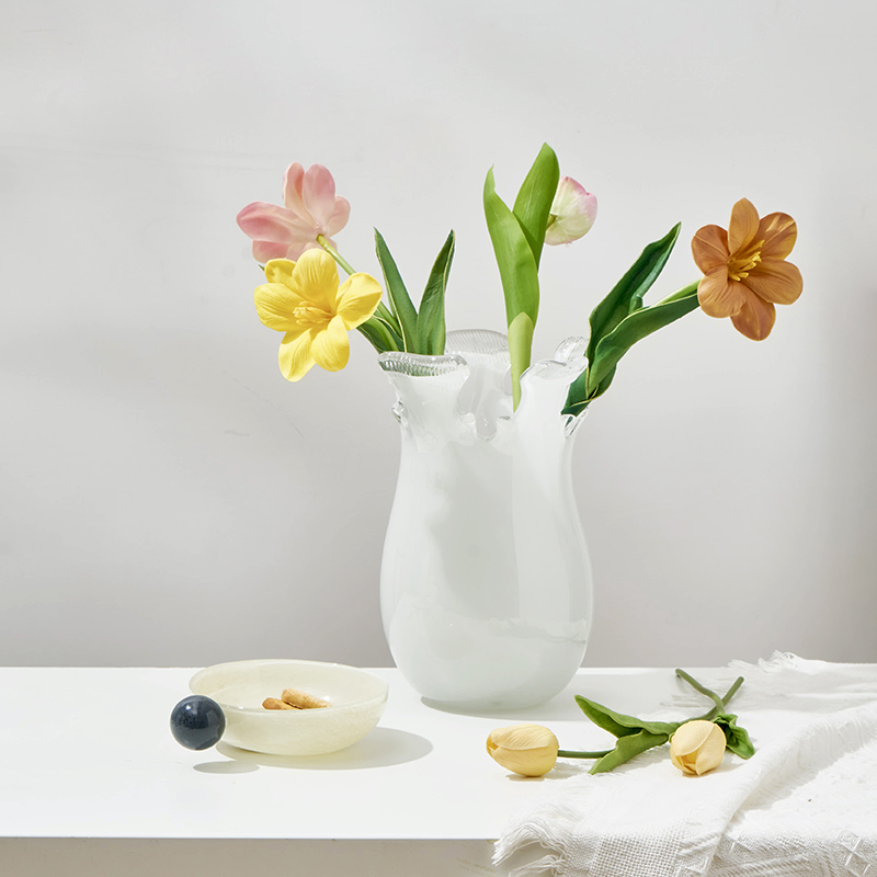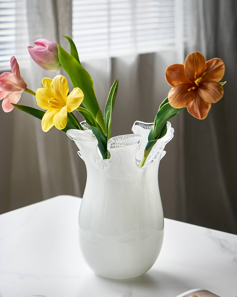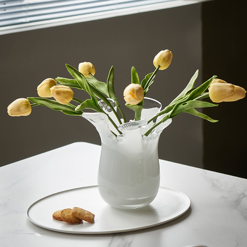 现代中古凤白色花边口玻璃花瓶水培花插花器工艺品摆件