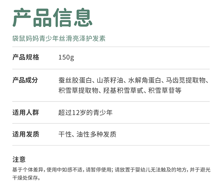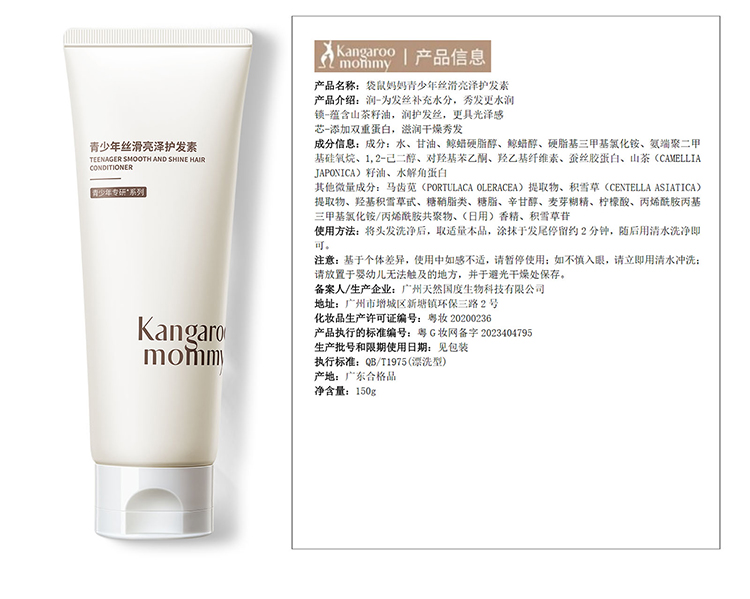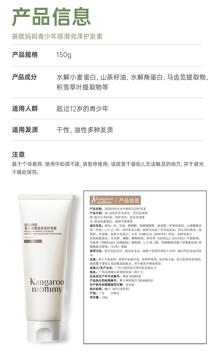 【TOP登陆少年组合同款】青少年专研护发素 护发更养发 袋鼠妈妈青少年顺滑亮泽护发素150g