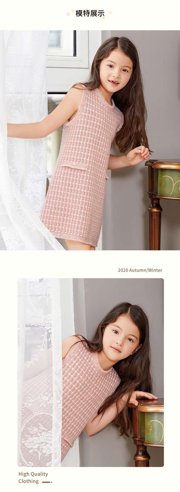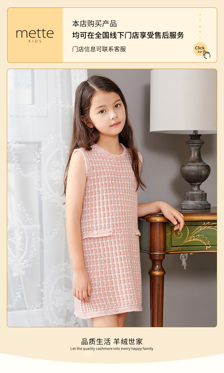METTE羊绒世家童装无袖连衣裙2020秋冬新品中长款针织圆领套头衫
