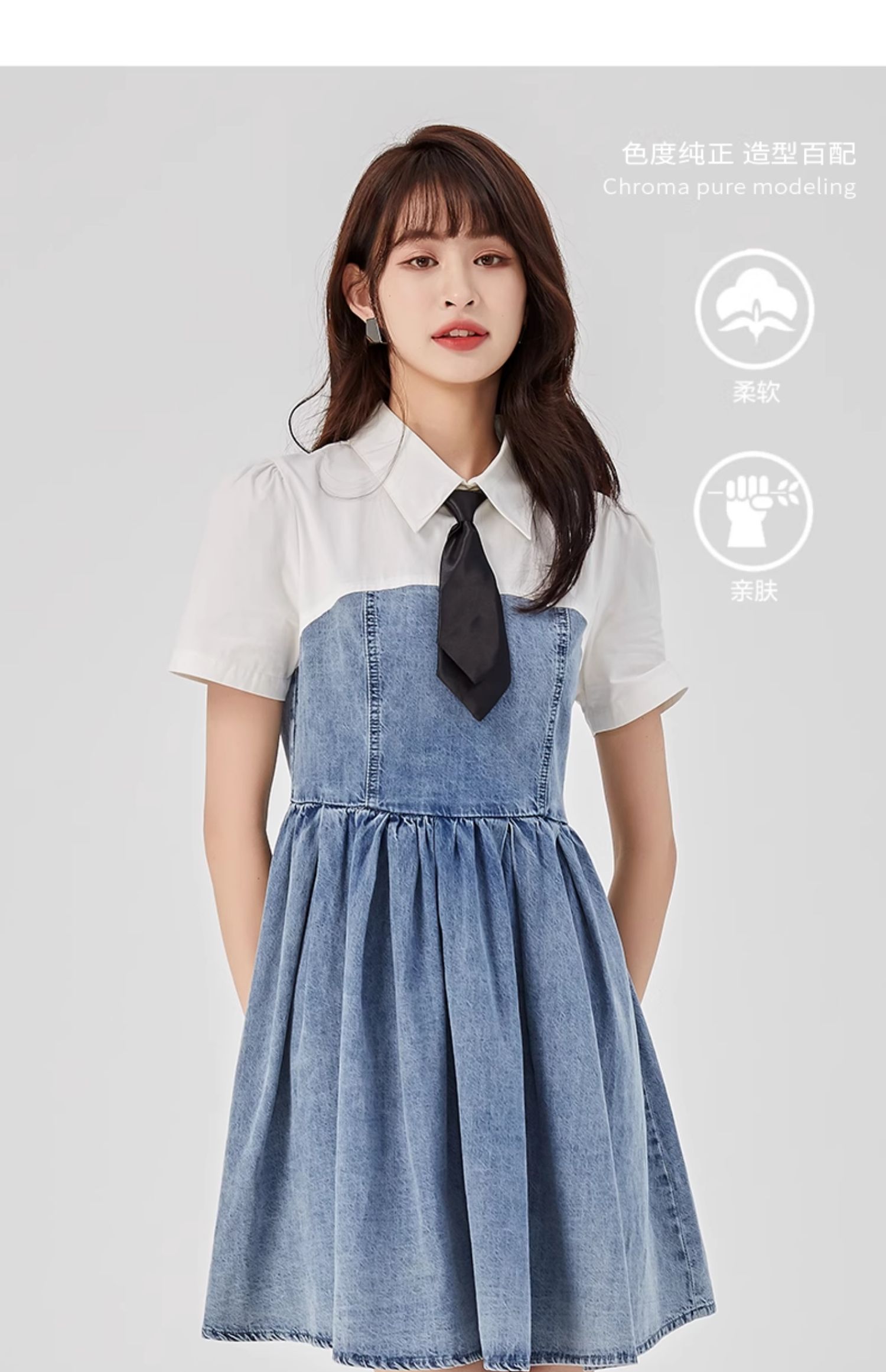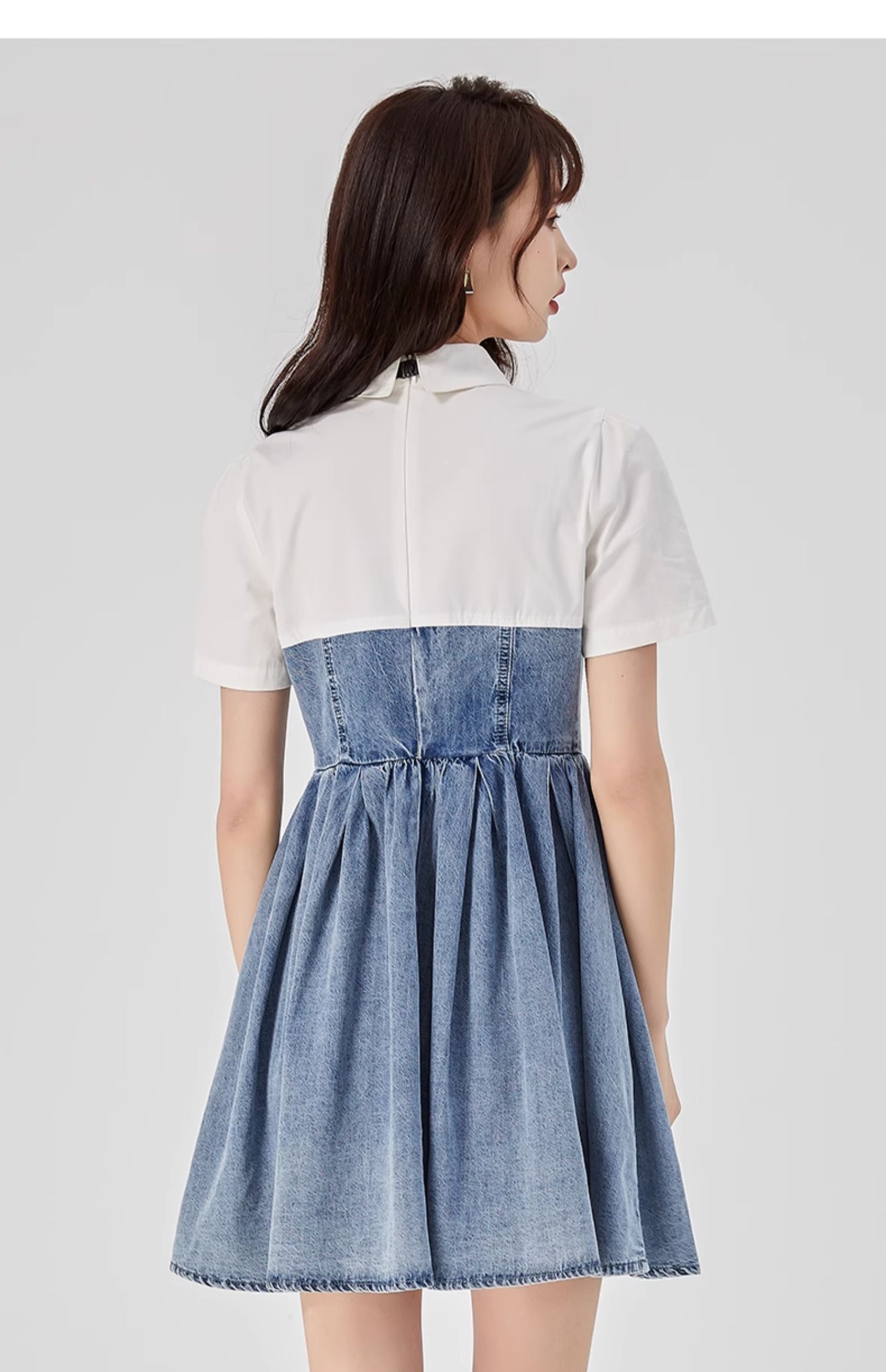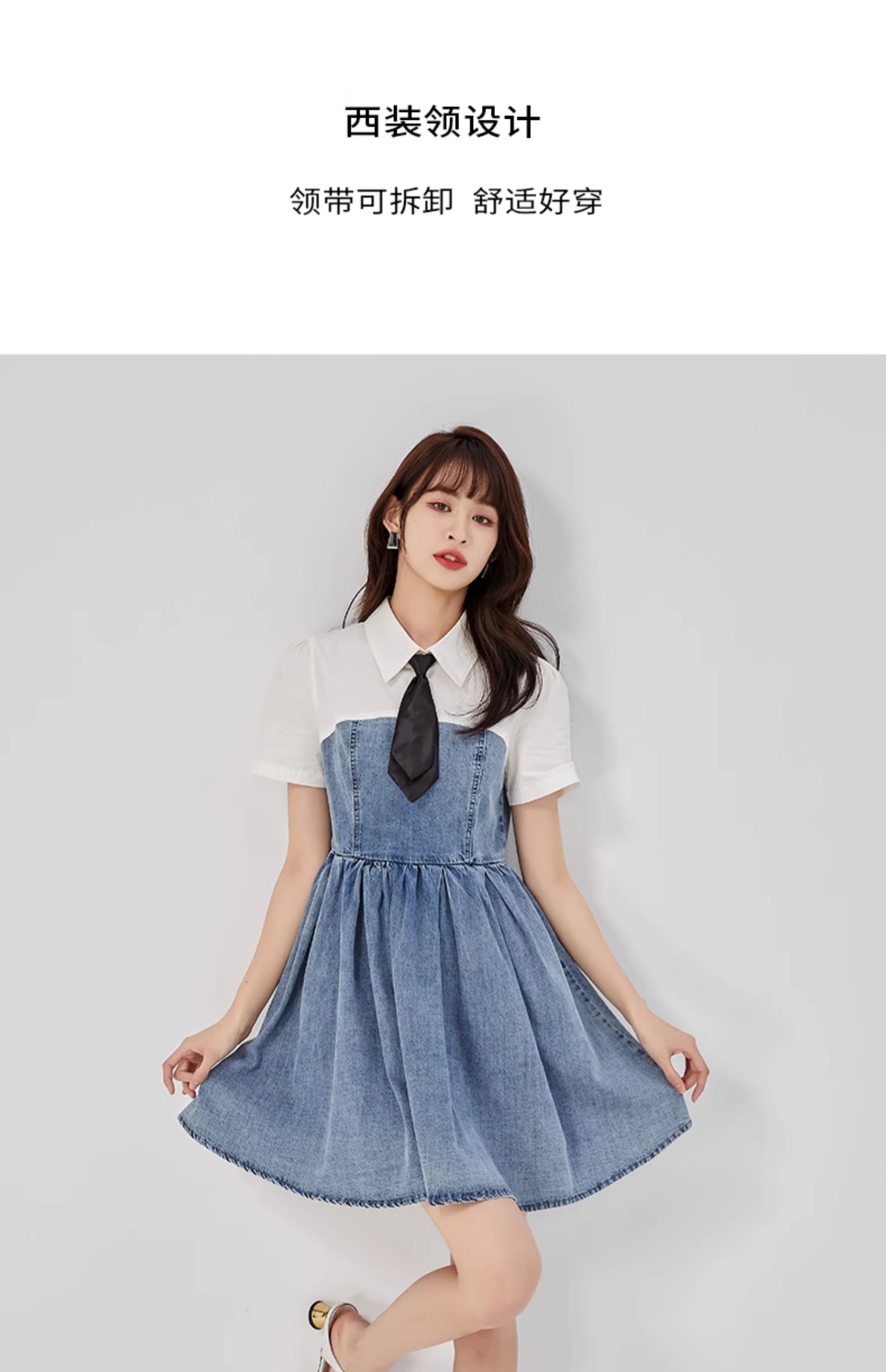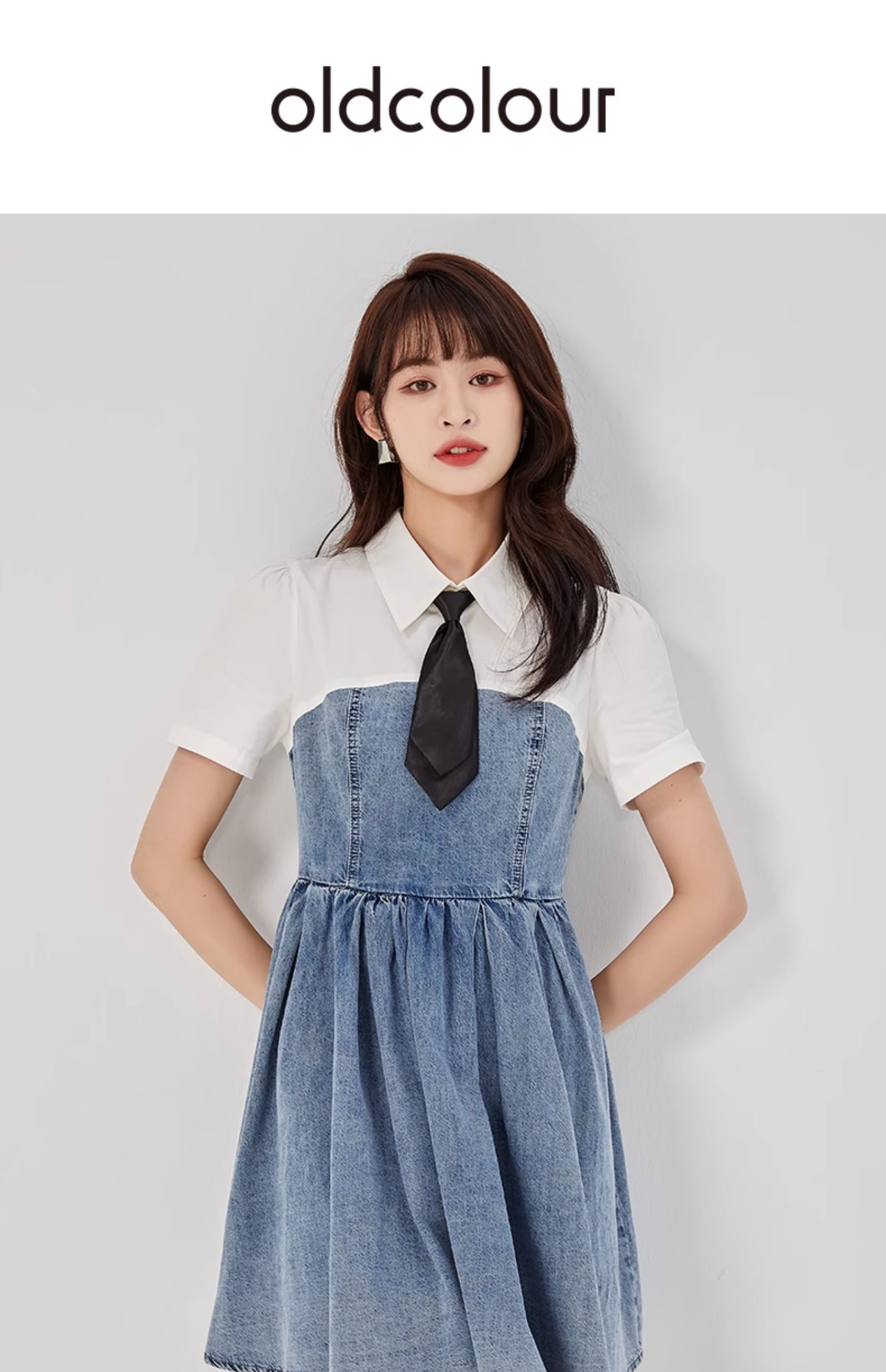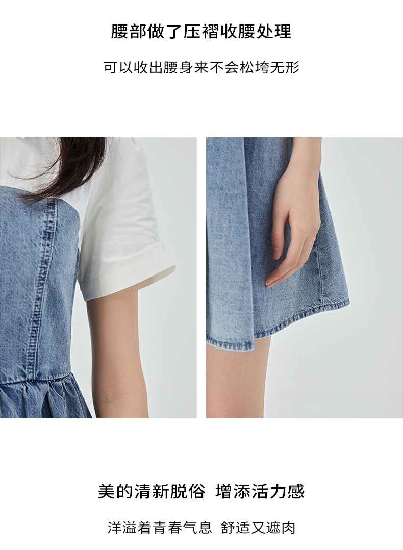 oldcolour2023夏新款纯棉学院风小个子牛仔拼接连衣裙GO21107708