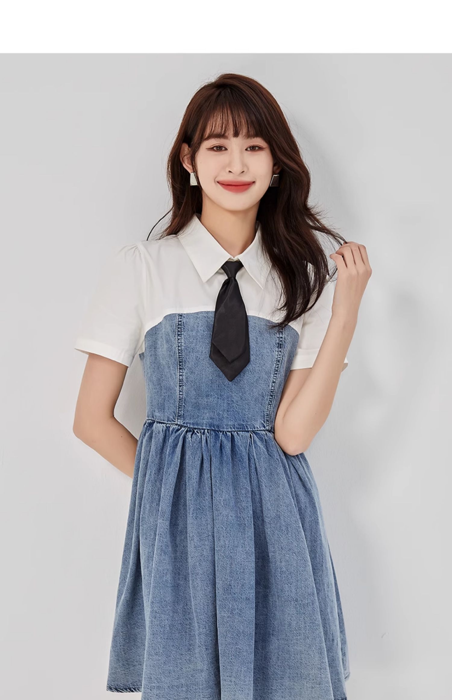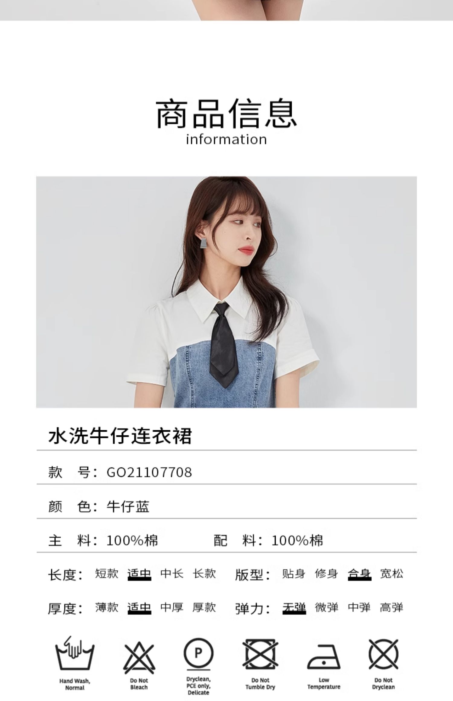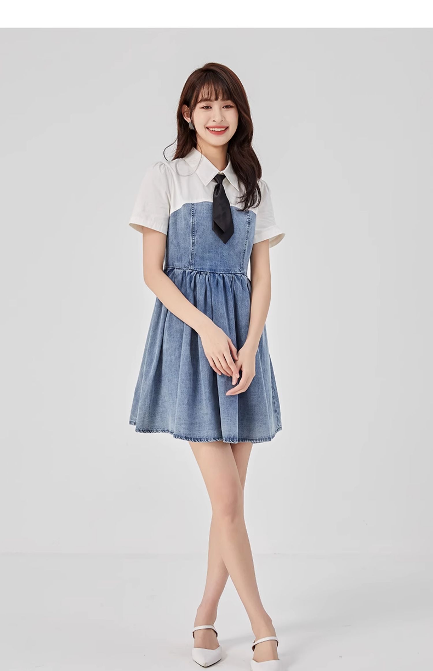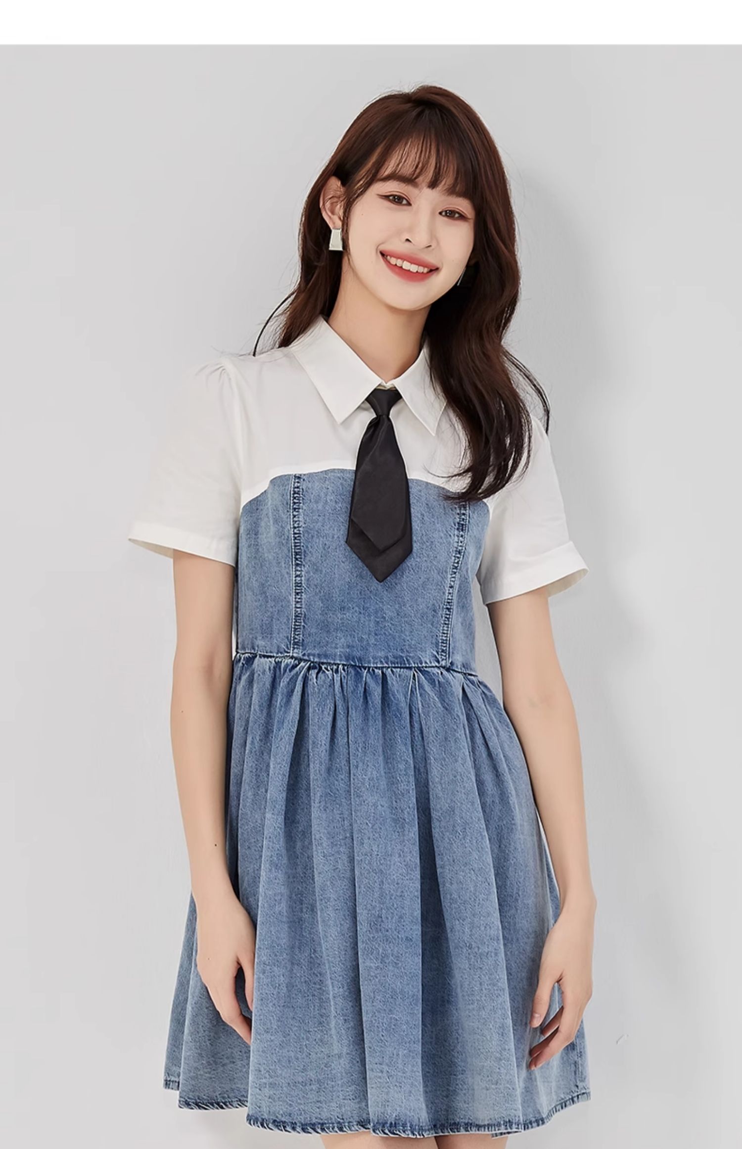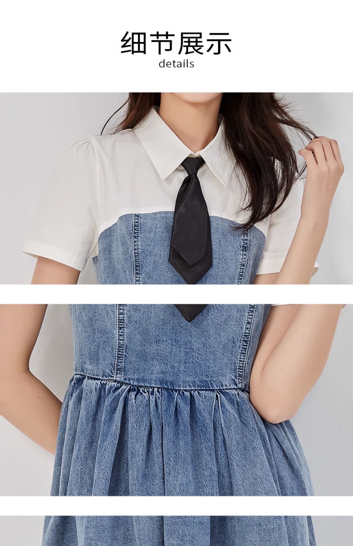 oldcolour2023夏新款纯棉学院风小个子牛仔拼接连衣裙GO21107708