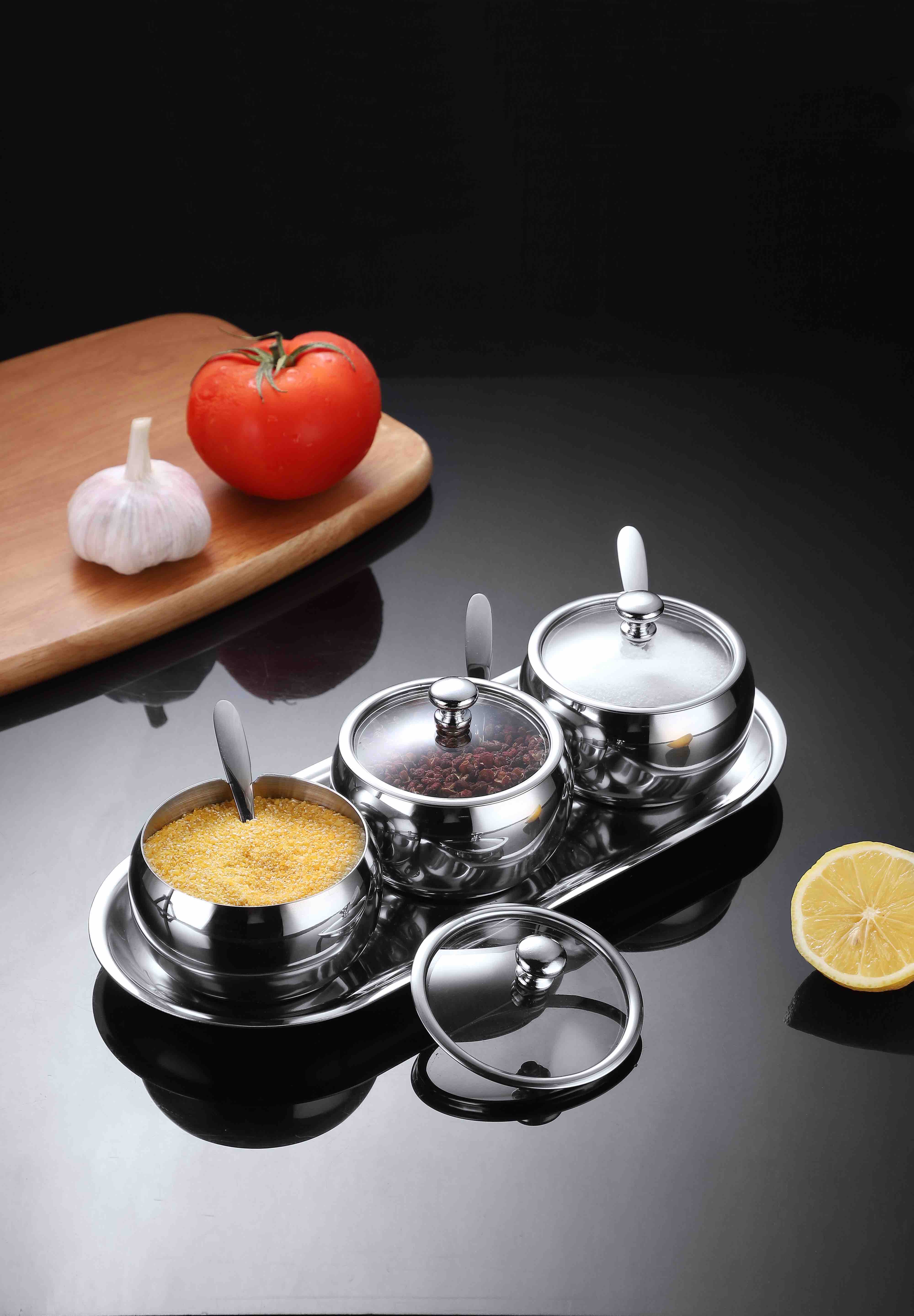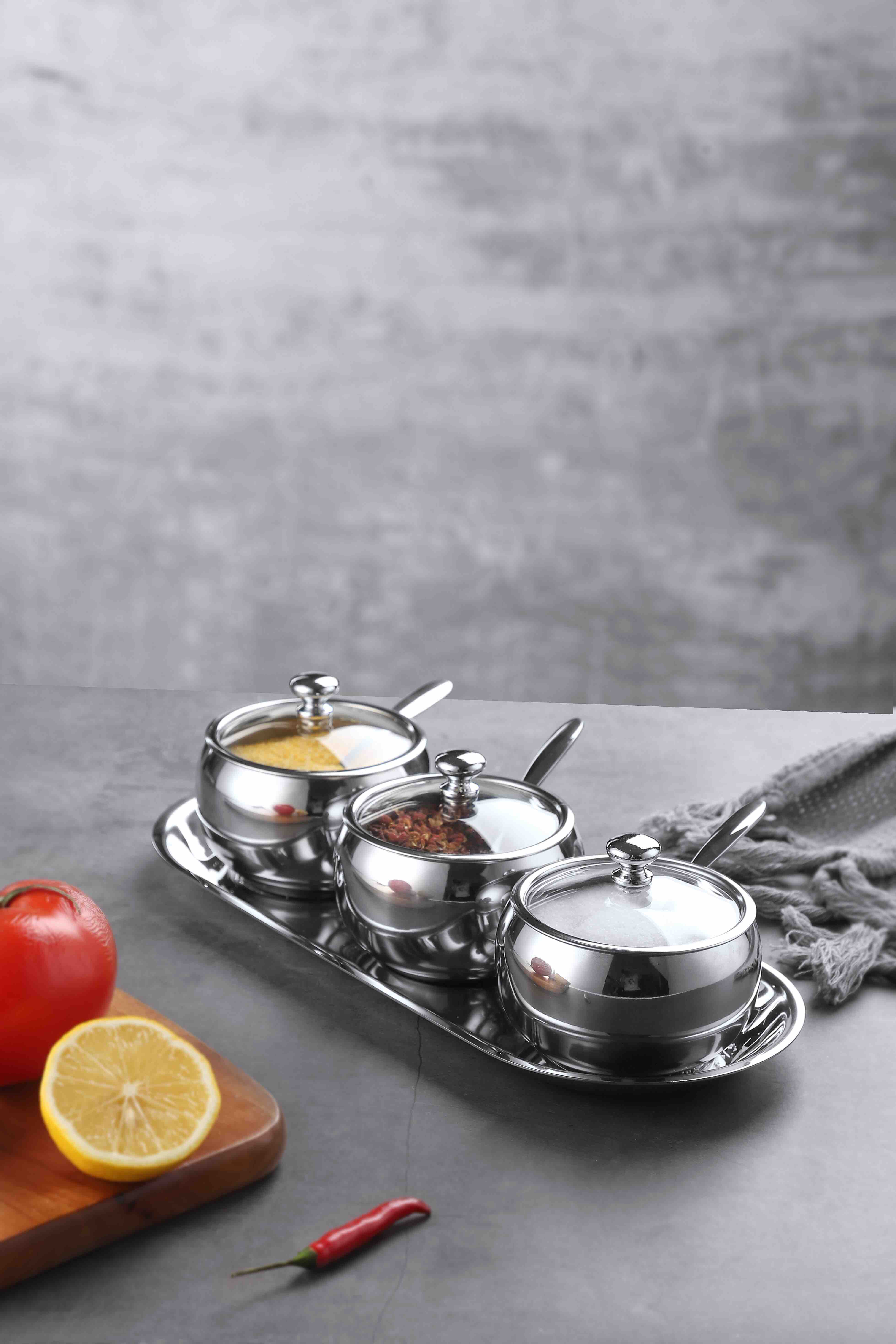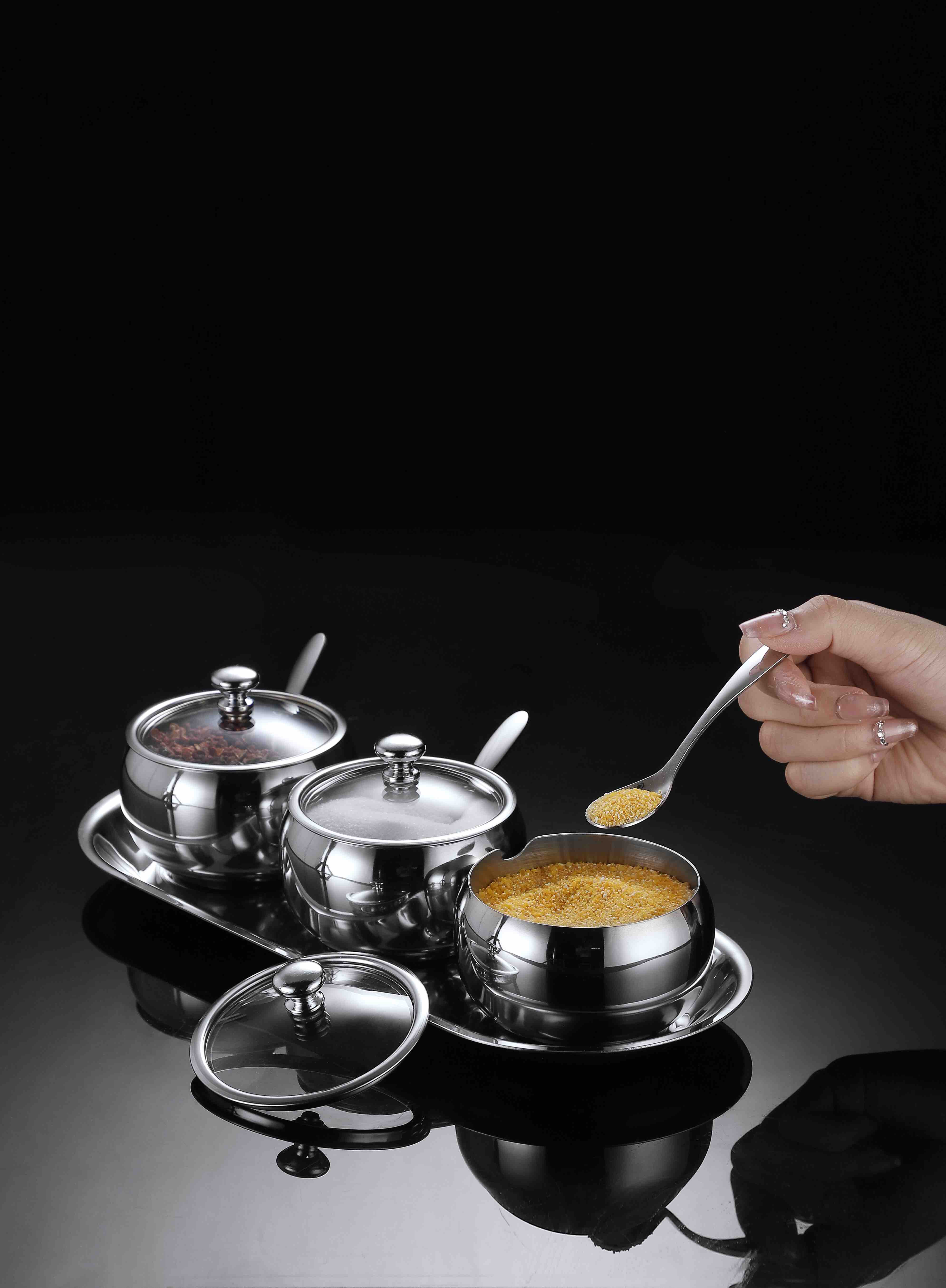 德国戴德不锈钢调味罐套装厨房作料收纳盒三件套
