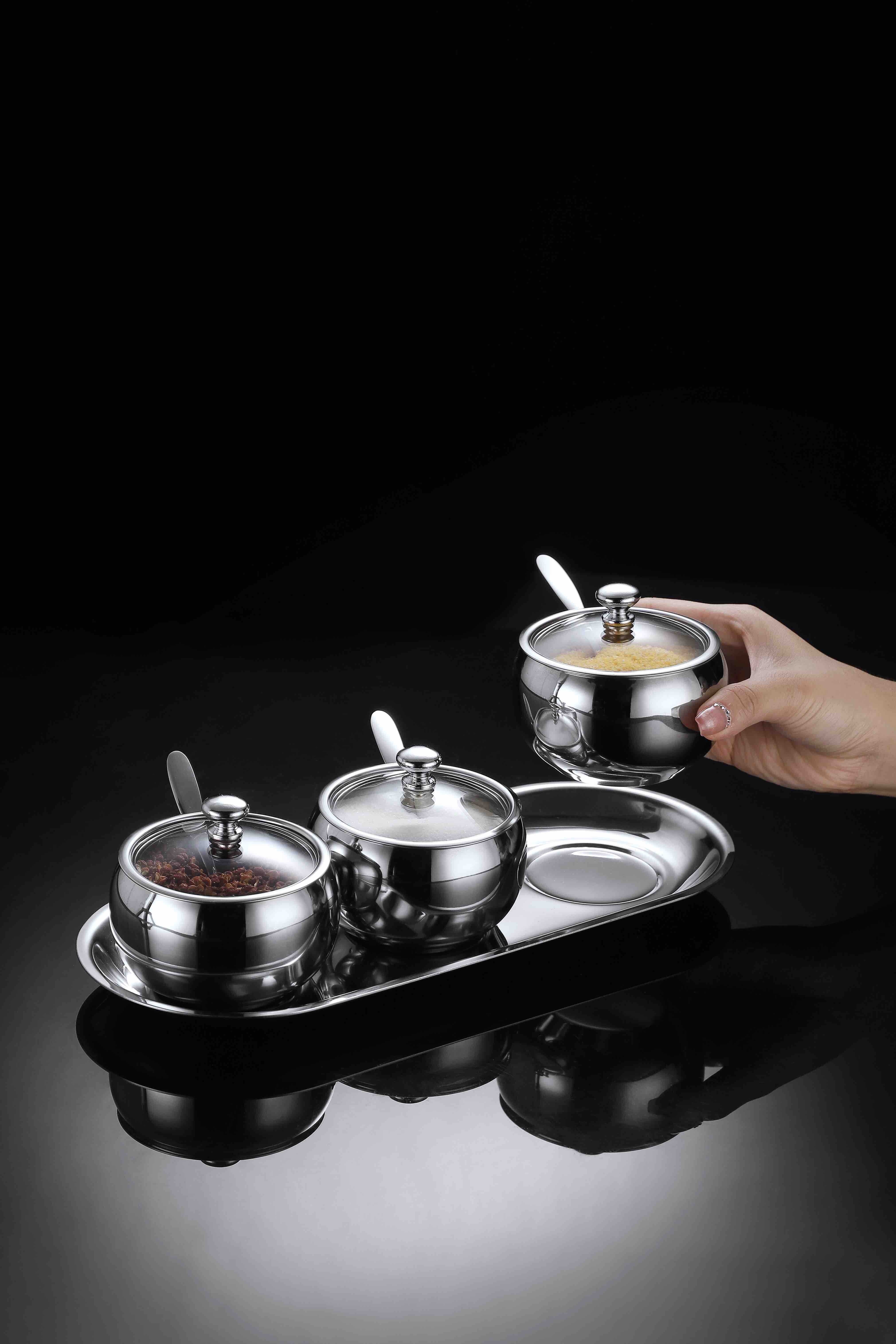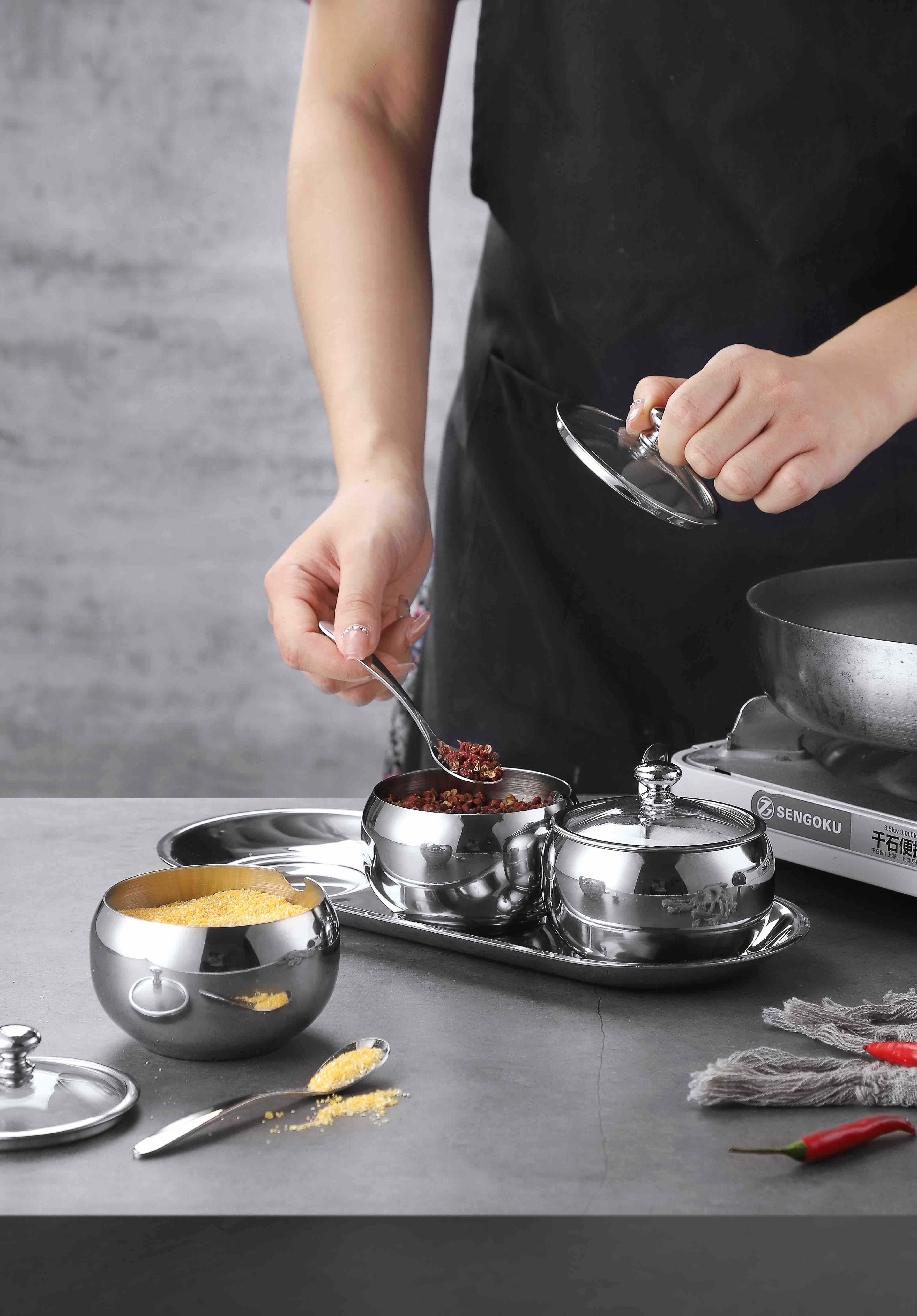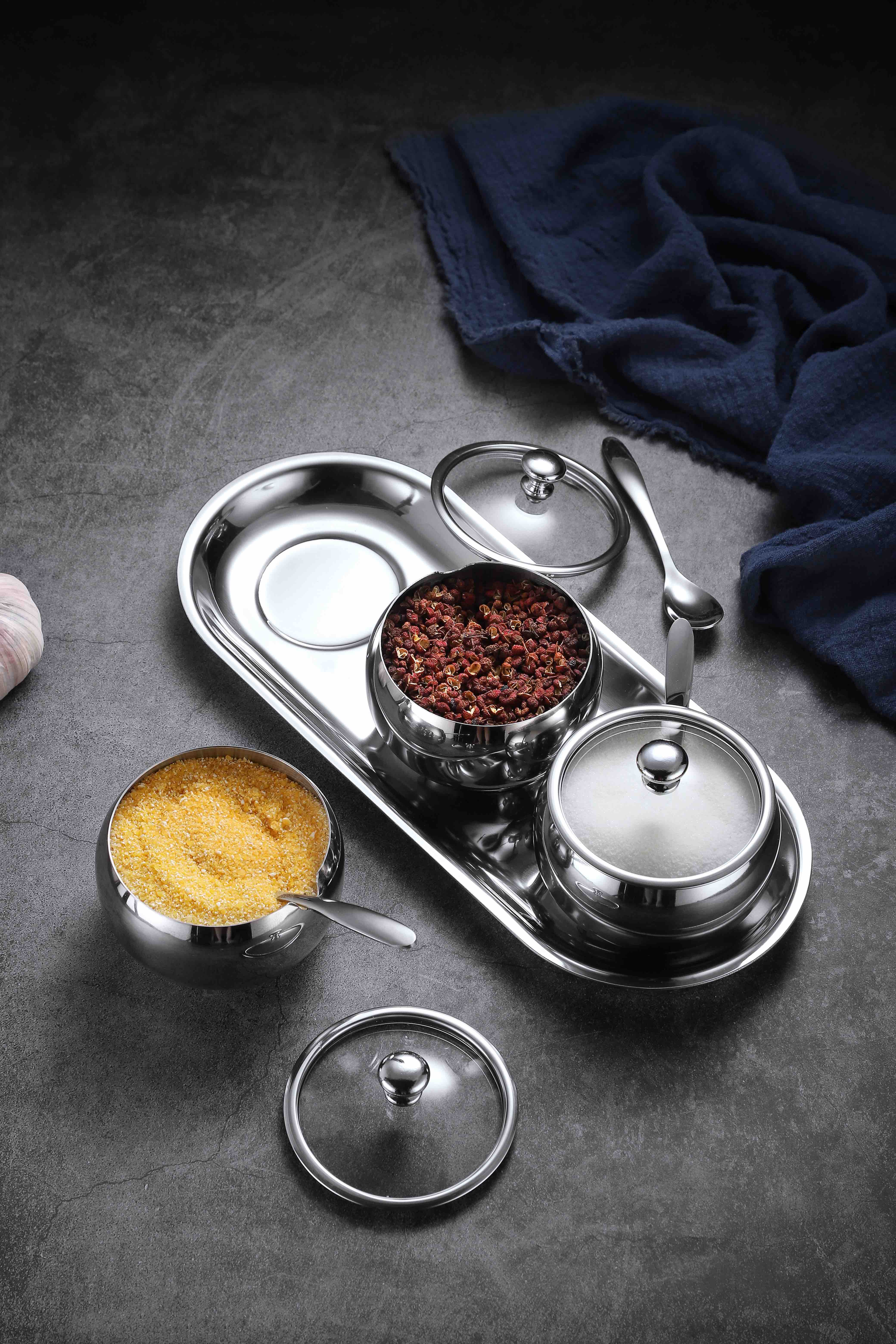 德国戴德不锈钢调味罐套装厨房作料收纳盒三件套