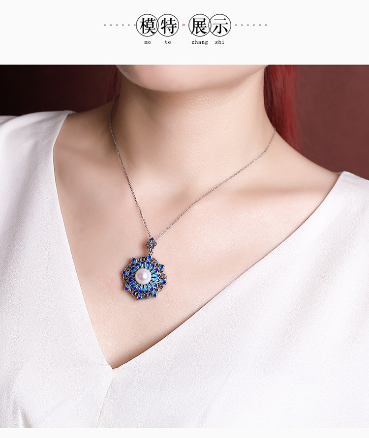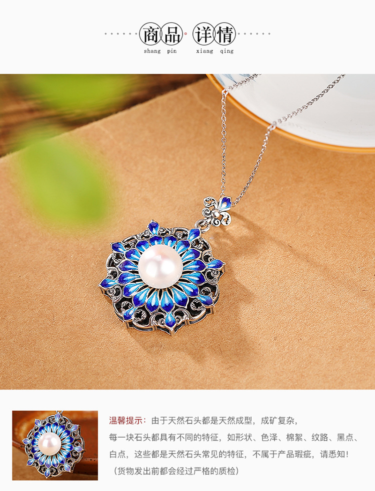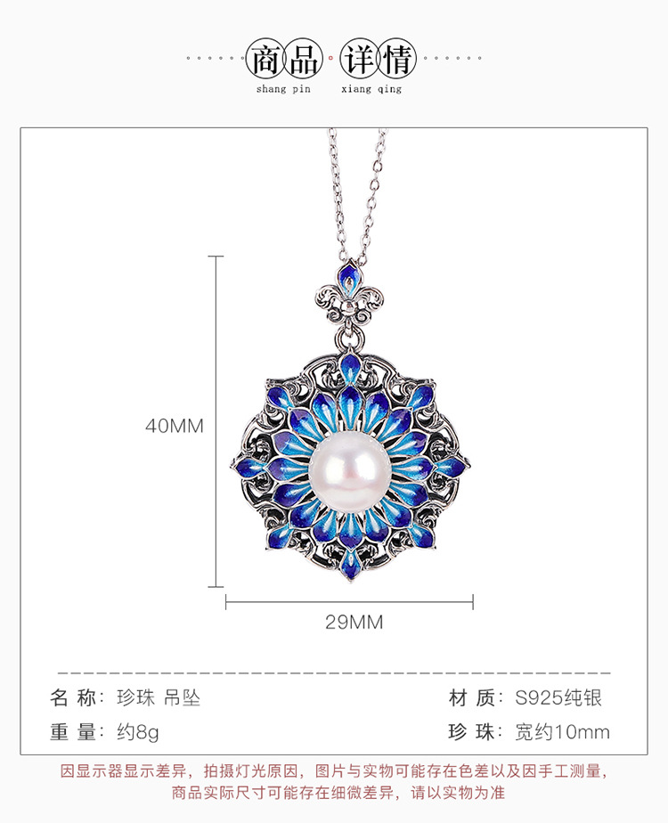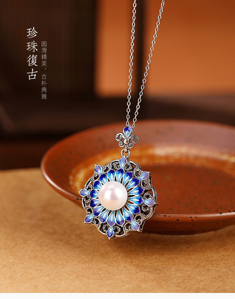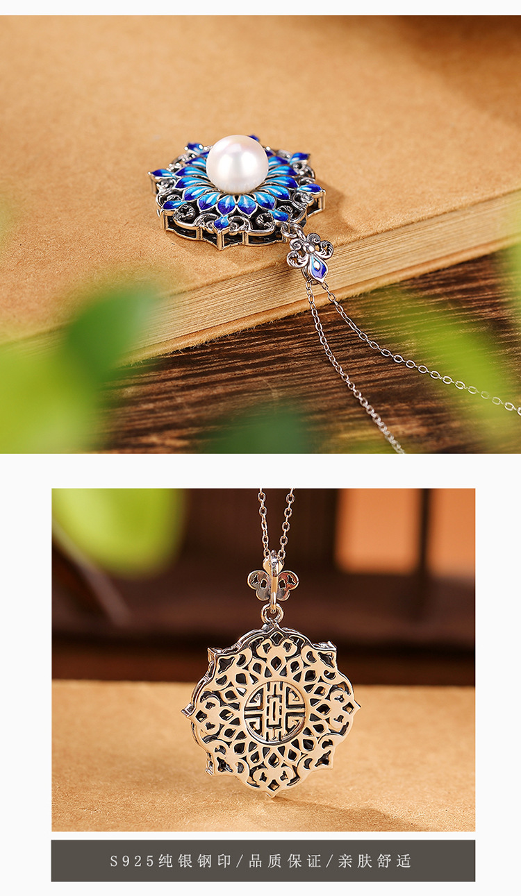【河清海晏】S925银珍珠景泰蓝镂空吊坠【CW-239131】