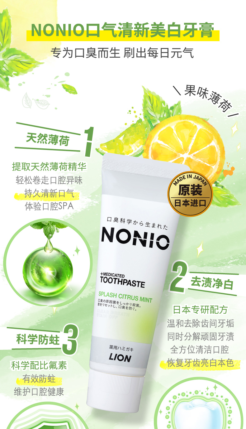 【分仓直发包邮】狮王NONIO口气清新牙膏(柑橘薄荷)130g*2支