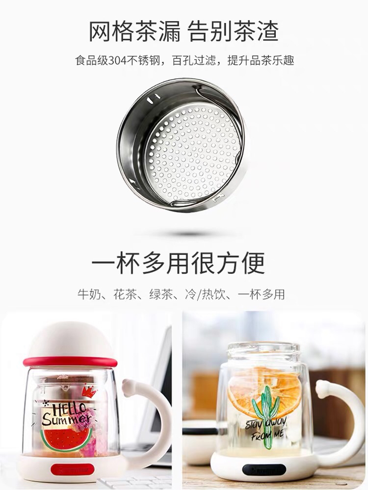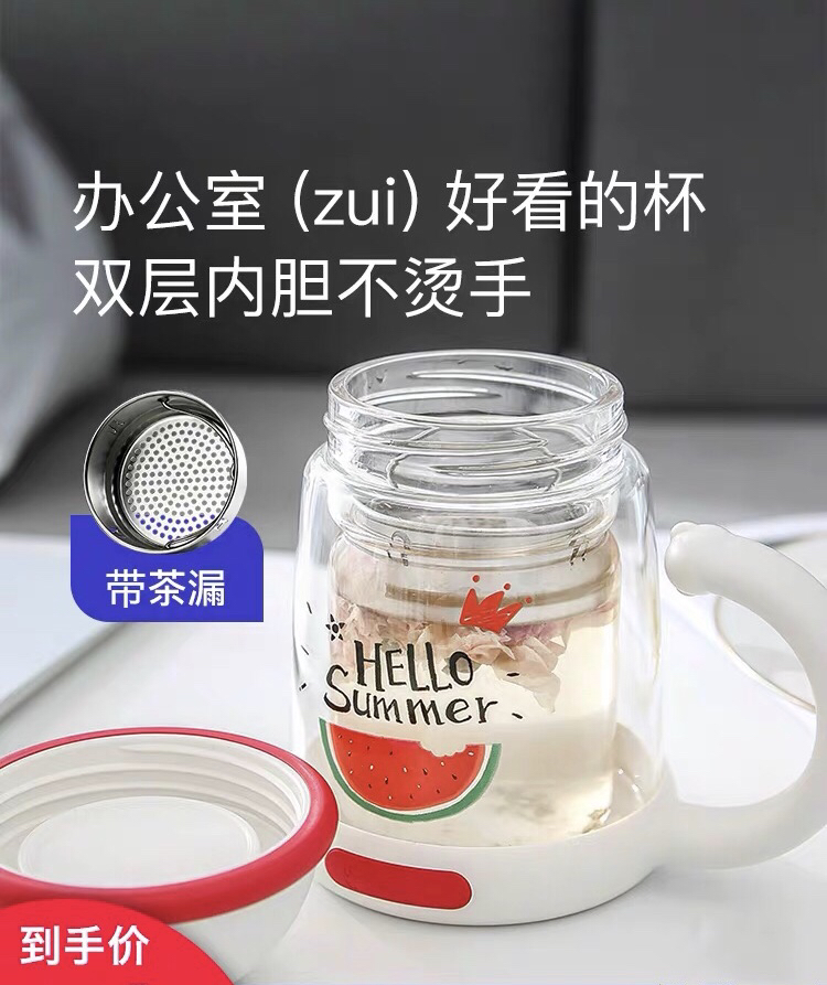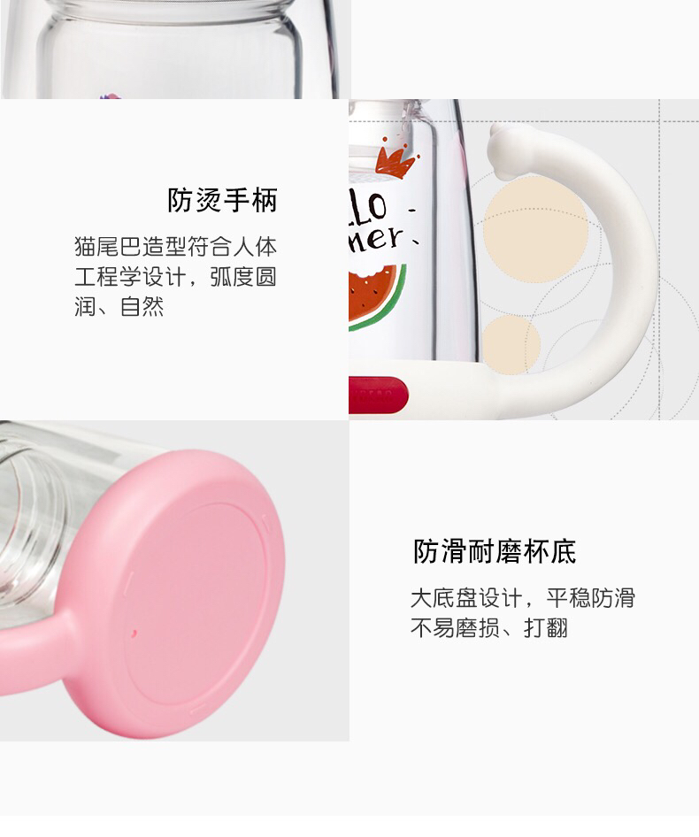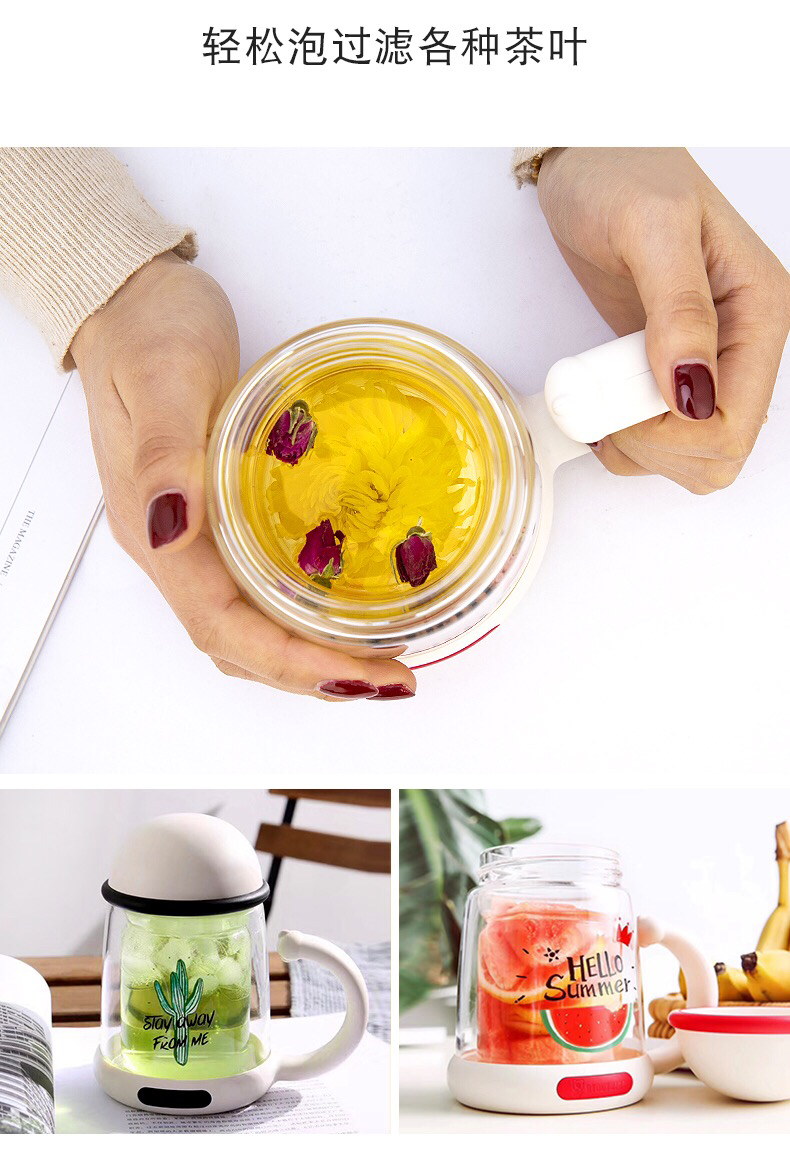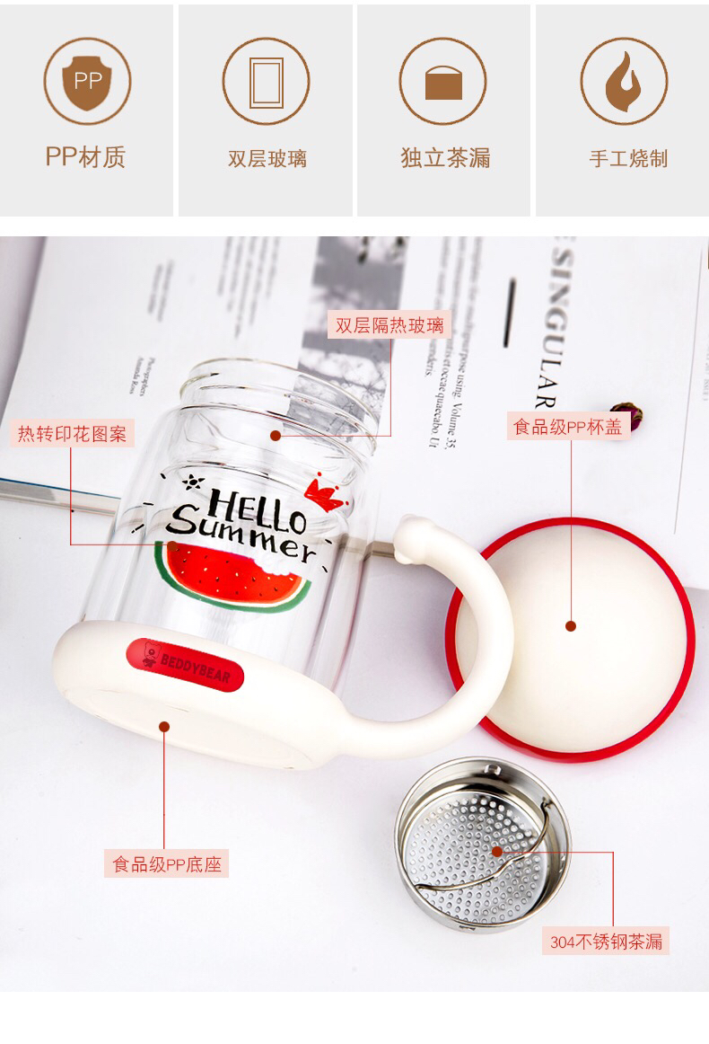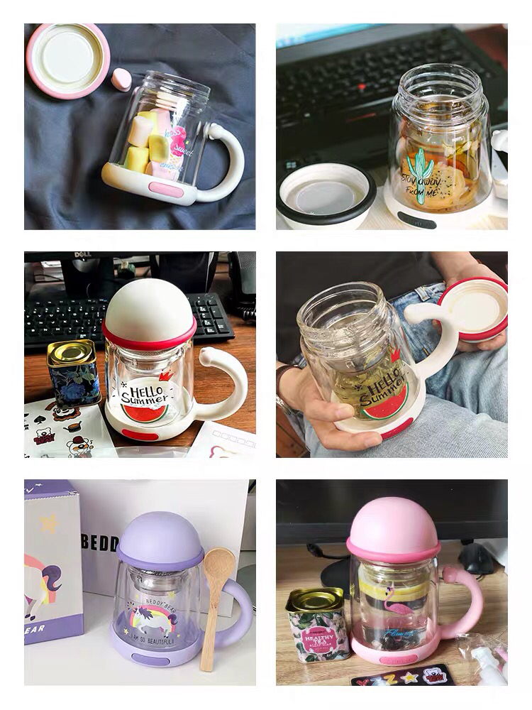 杯具熊双层玻璃杯耐隔热可爱女花茶杯子带把手茶水杯-会员8折-无备注随机发货