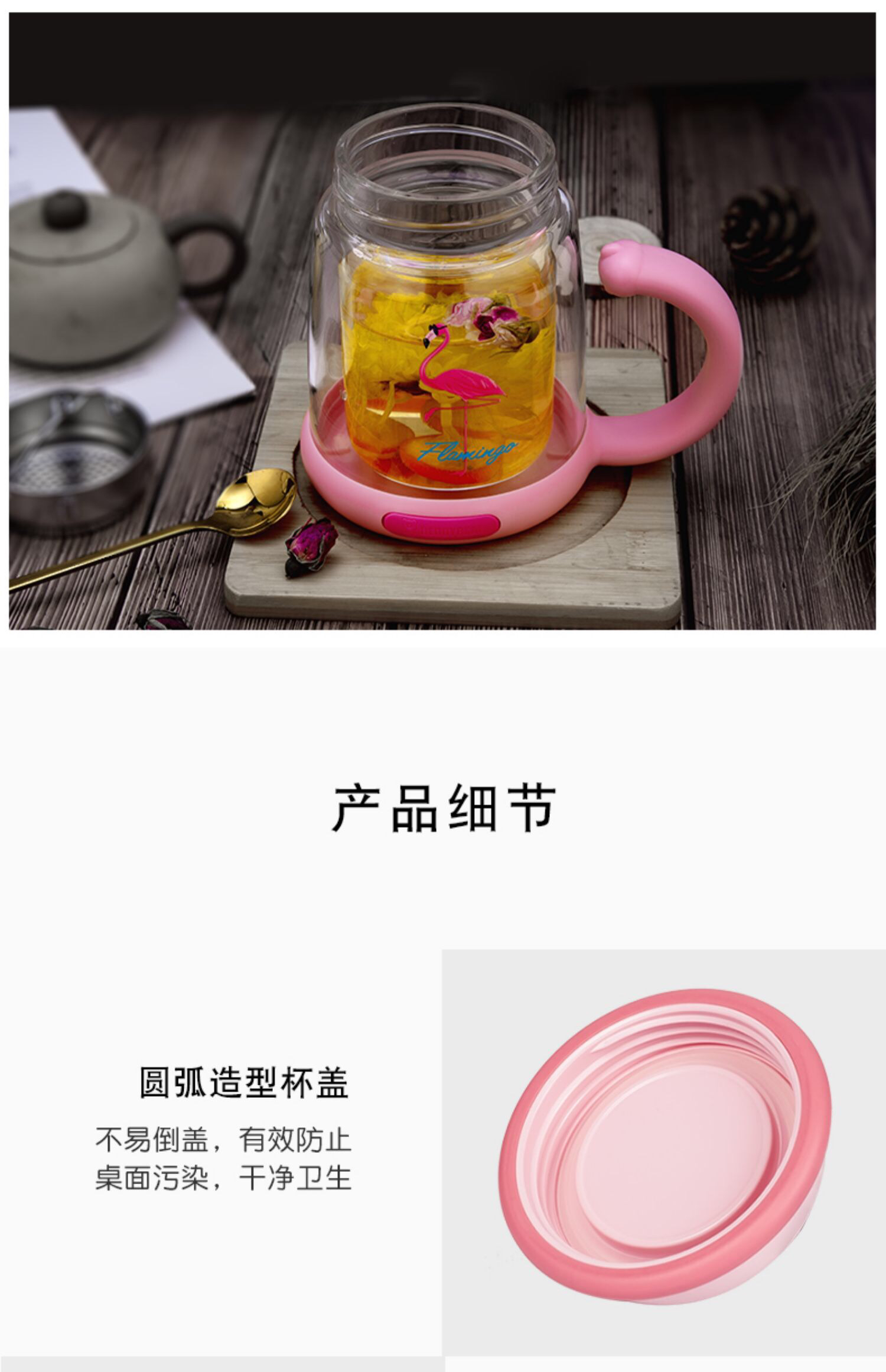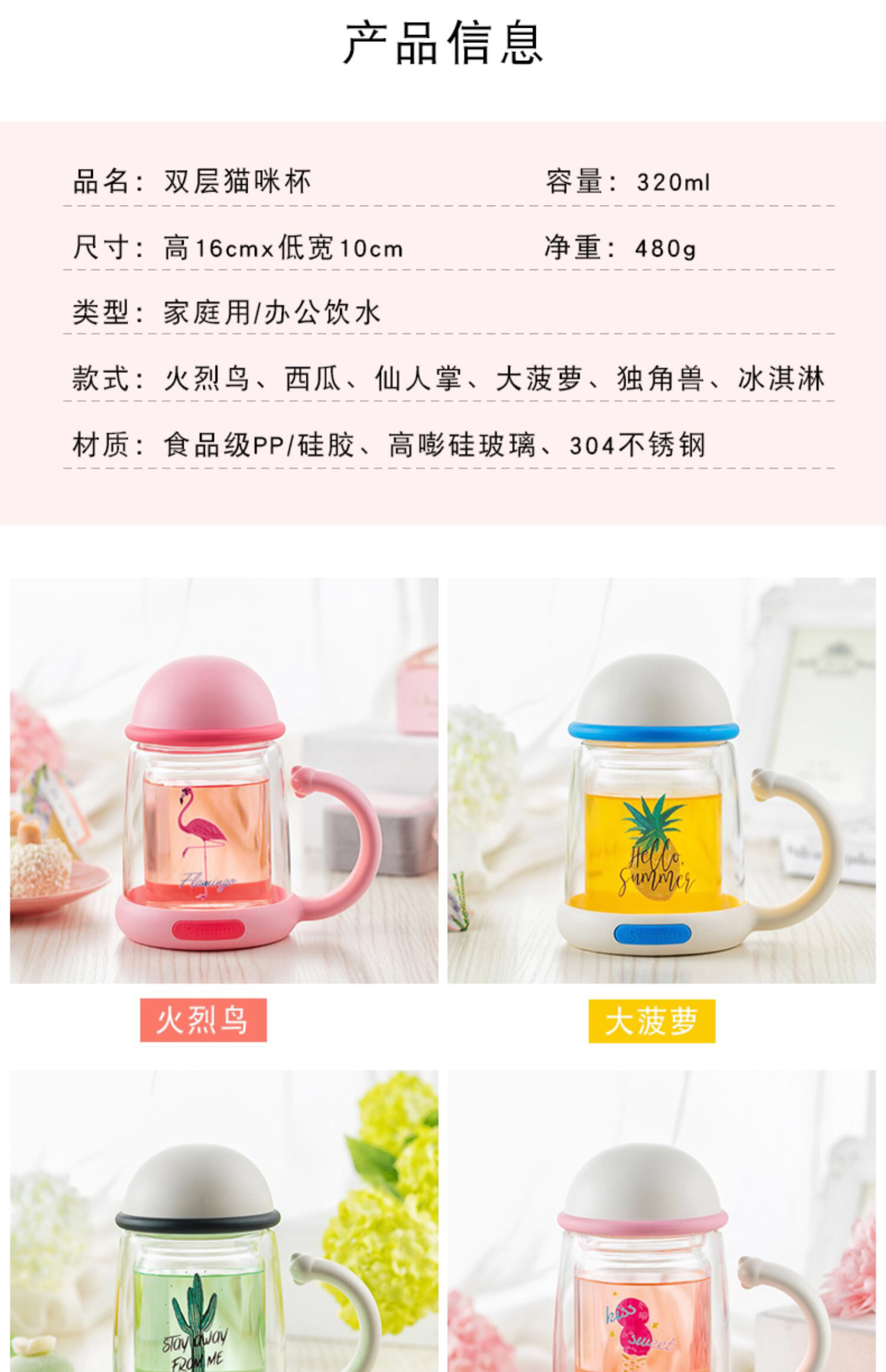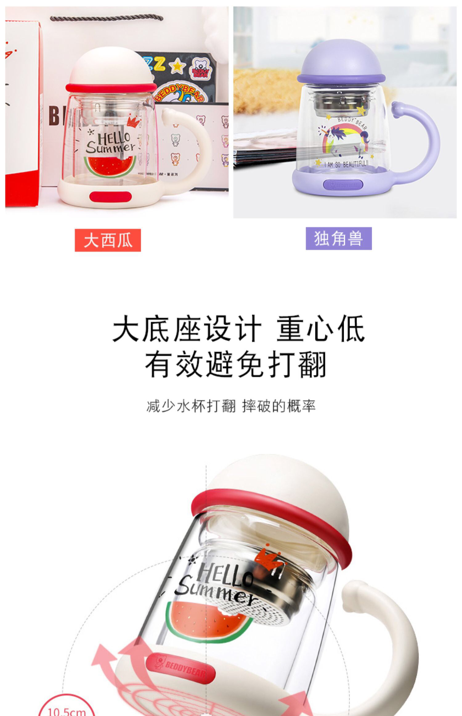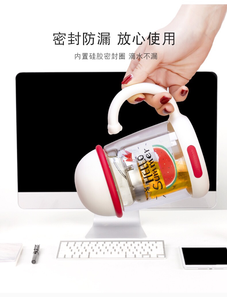 杯具熊双层玻璃杯耐隔热可爱女花茶杯子带把手茶水杯-会员8折-无备注随机发货
