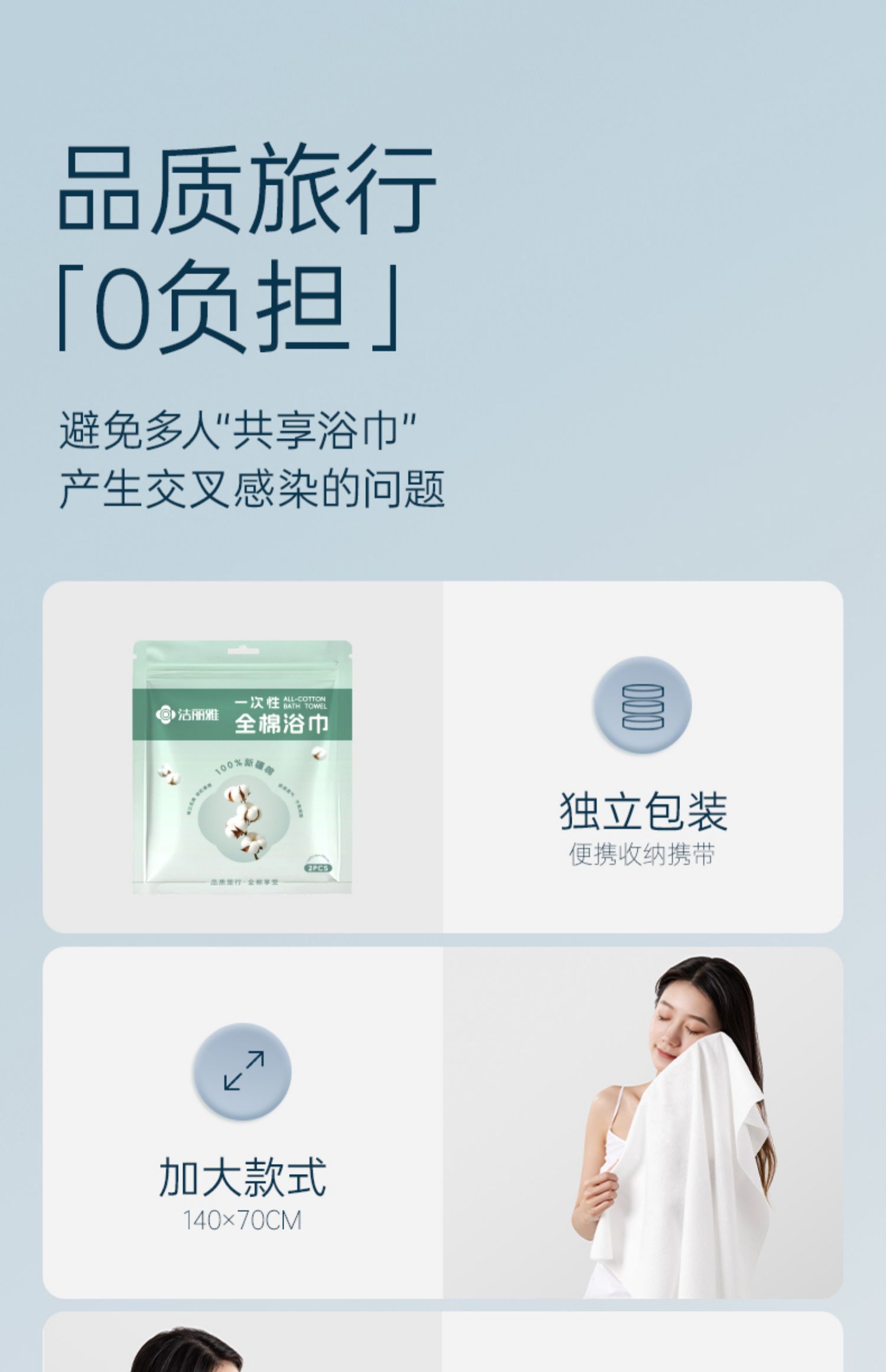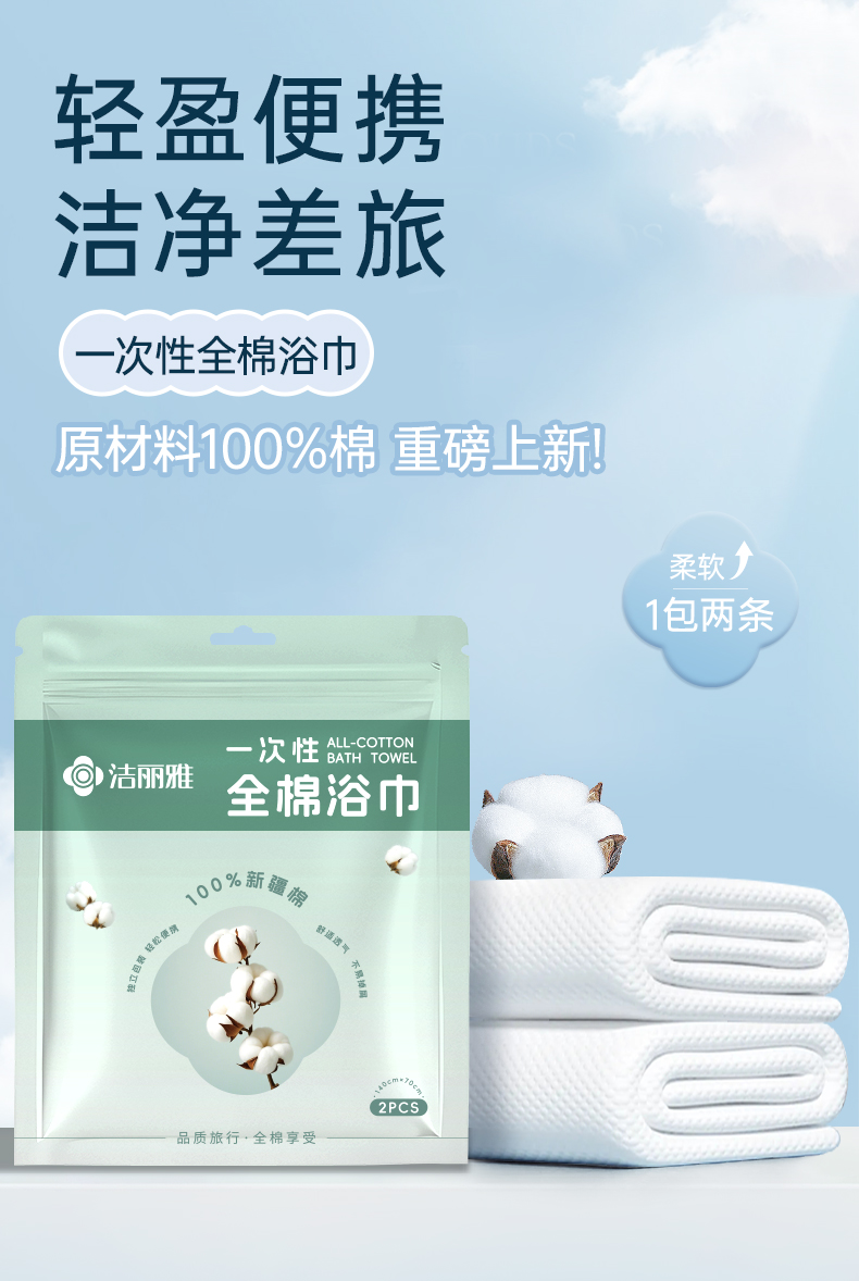洁丽雅纯棉一次性浴巾单独包装旅行压缩毛巾旅游全棉加厚加大新款