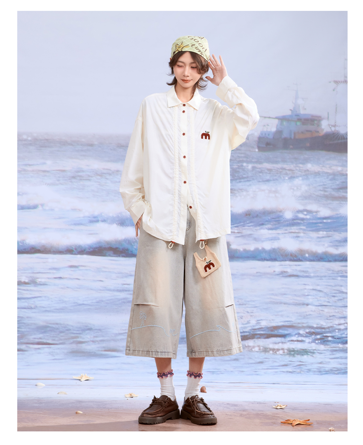 SUPERTOFU(SPTF)/新墨洗水牛仔阔身背带裤