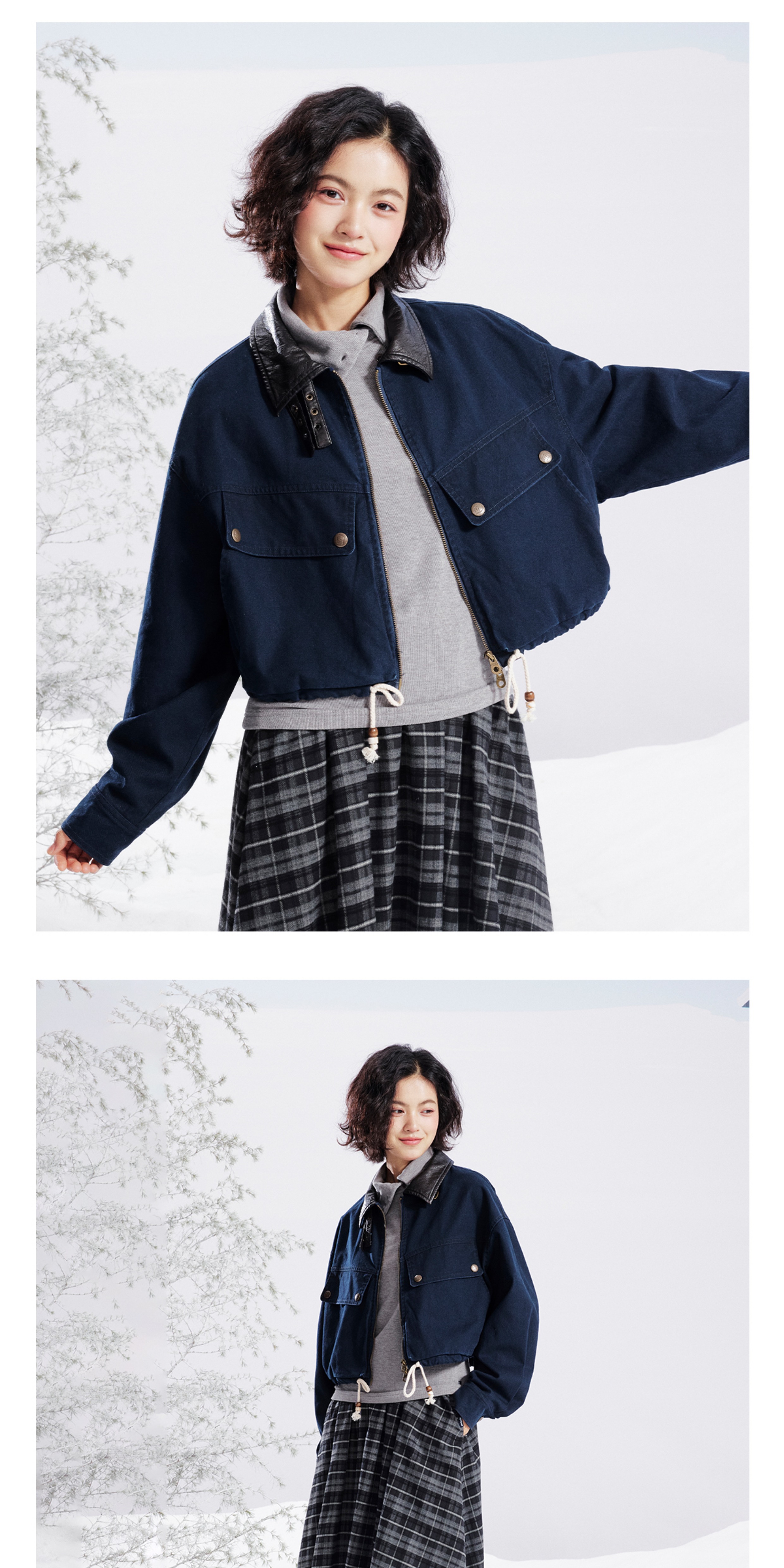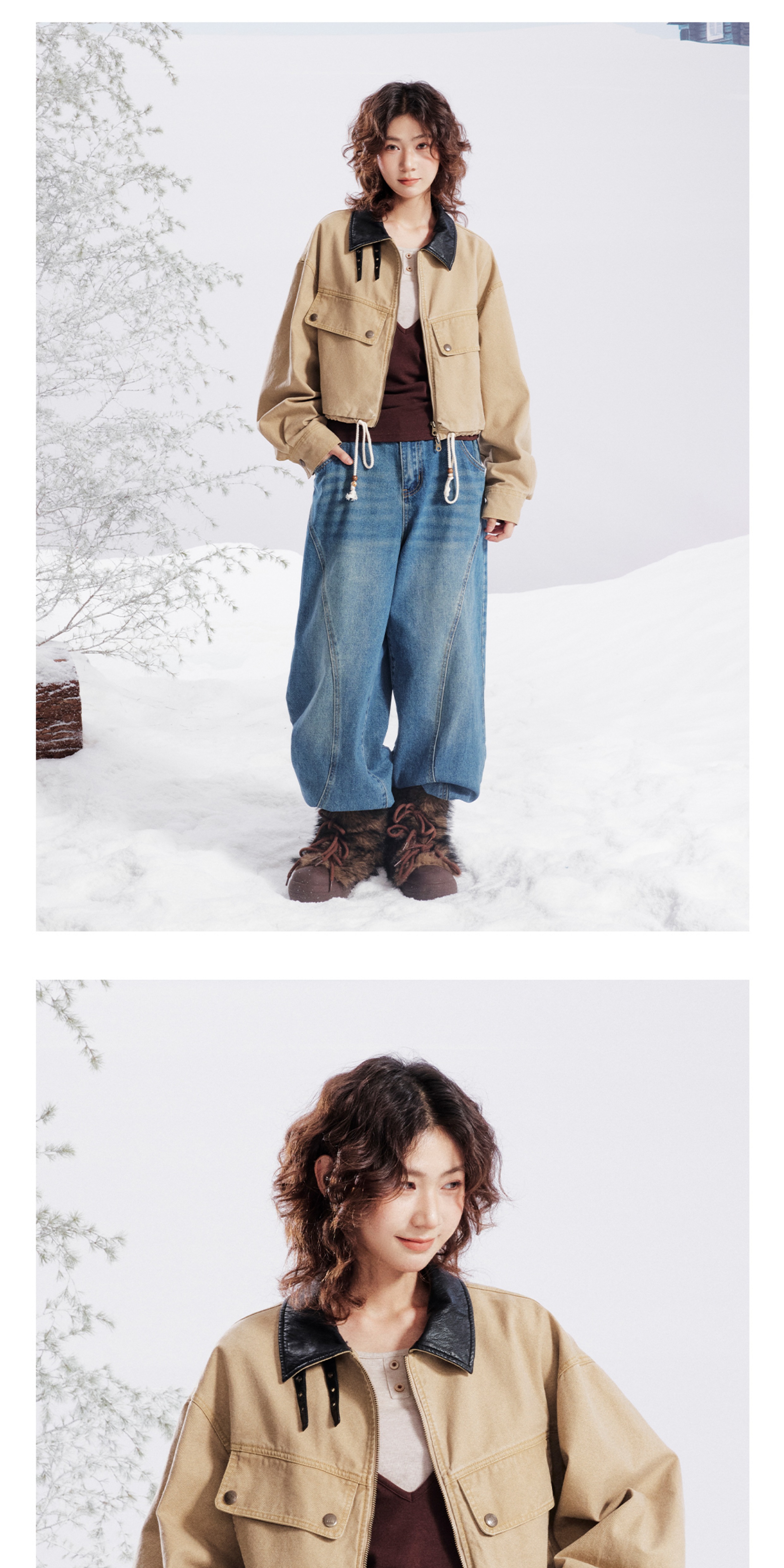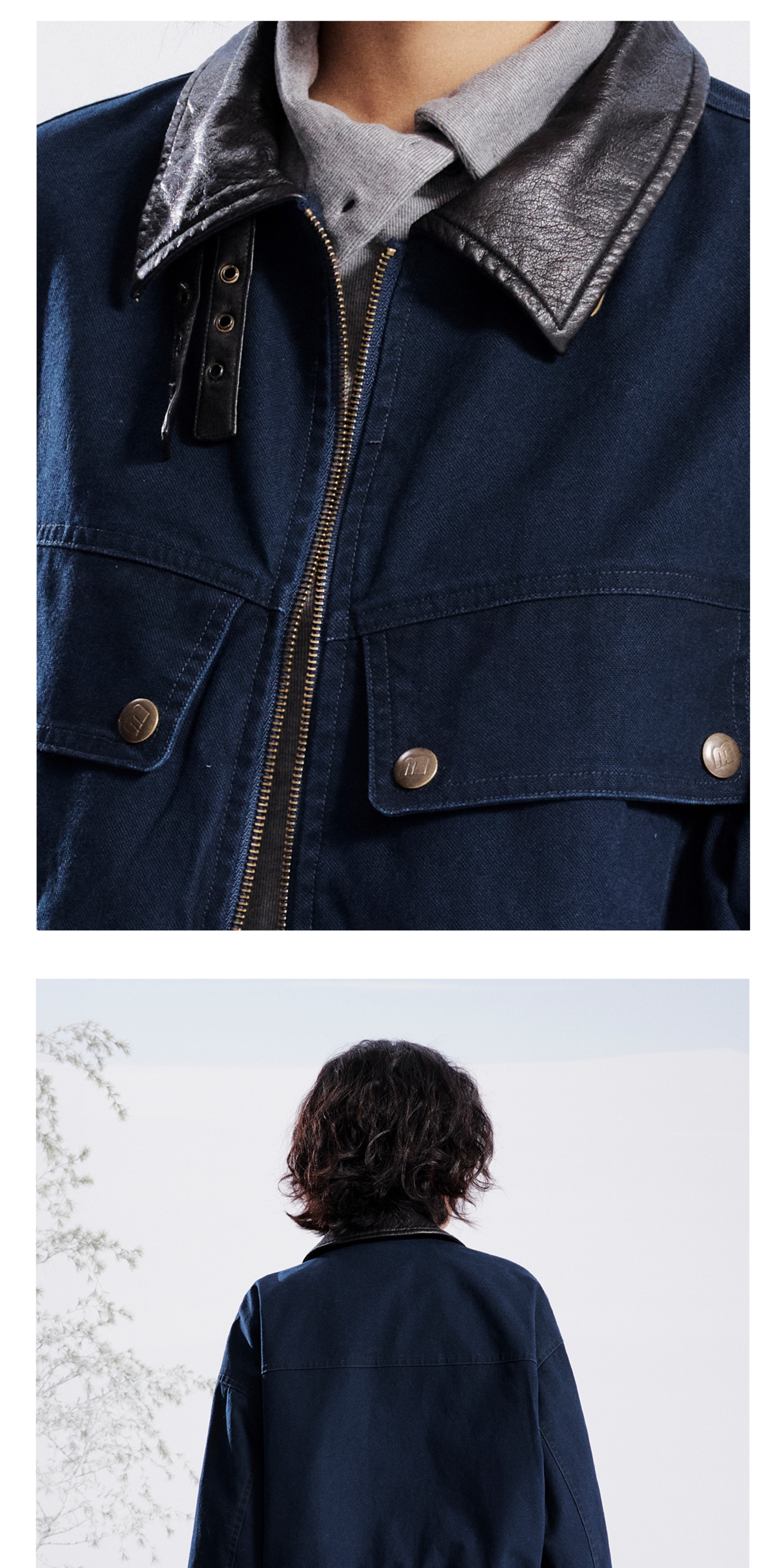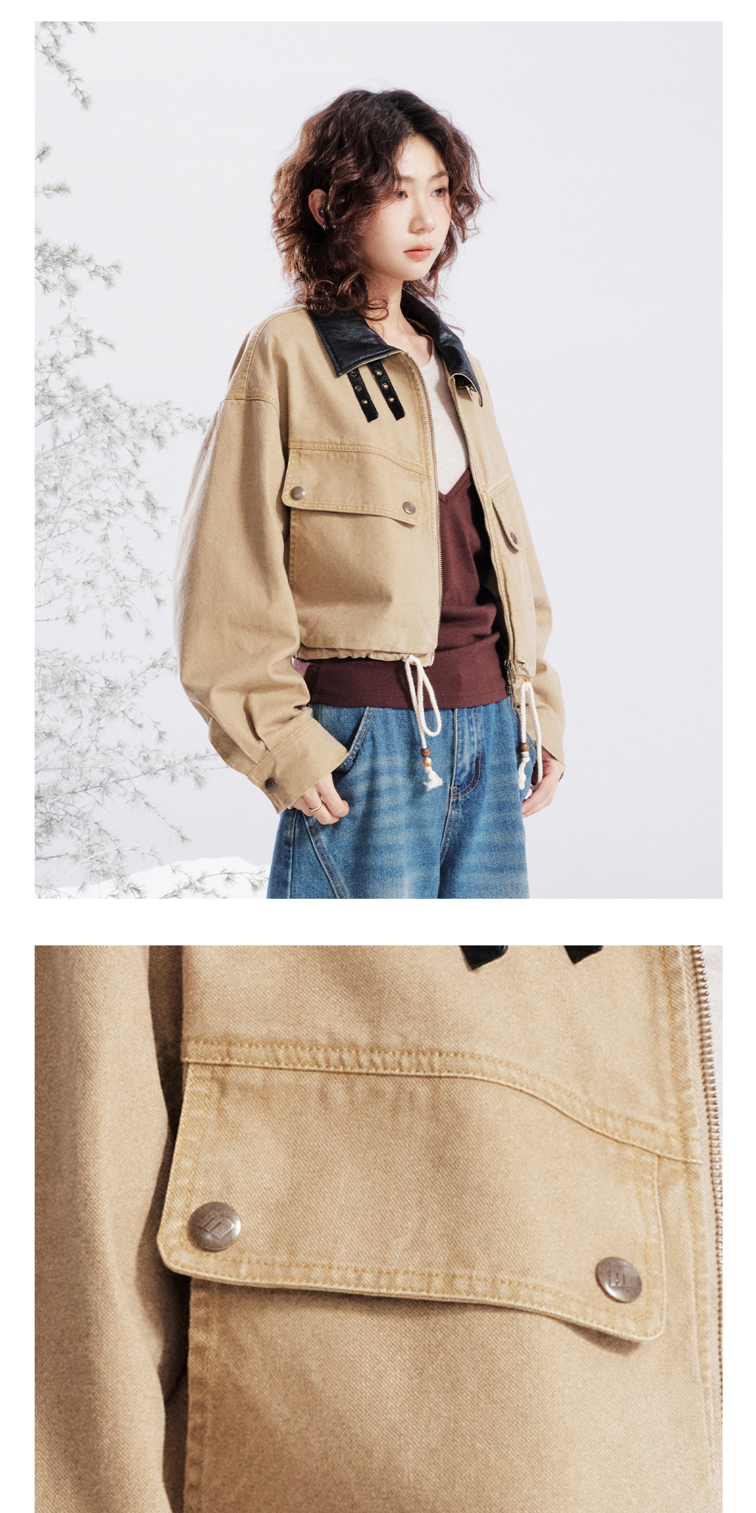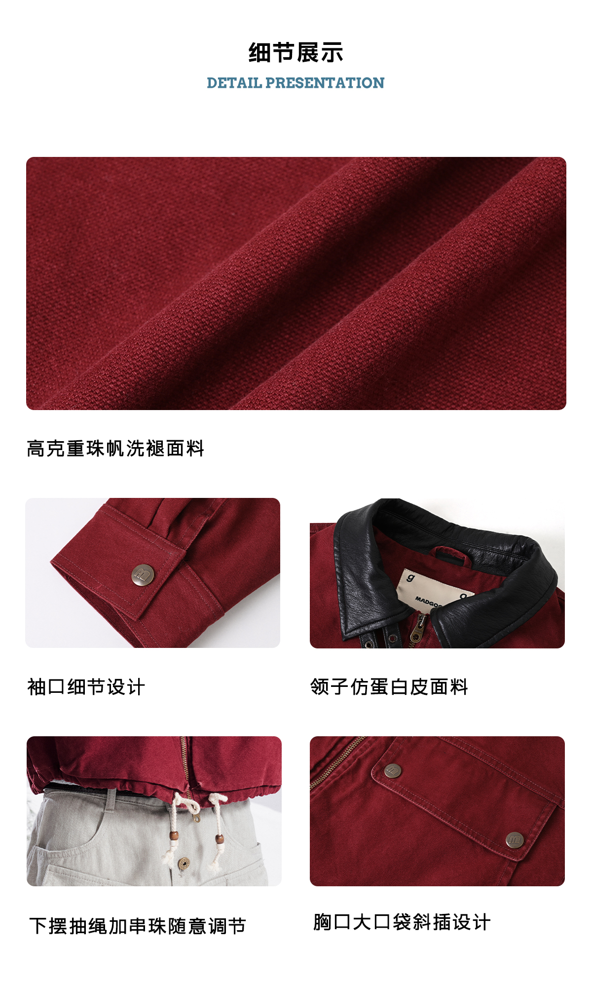 马得工地/MDGDWT131402/巴恩风皮领拼接珠帆水洗夹克