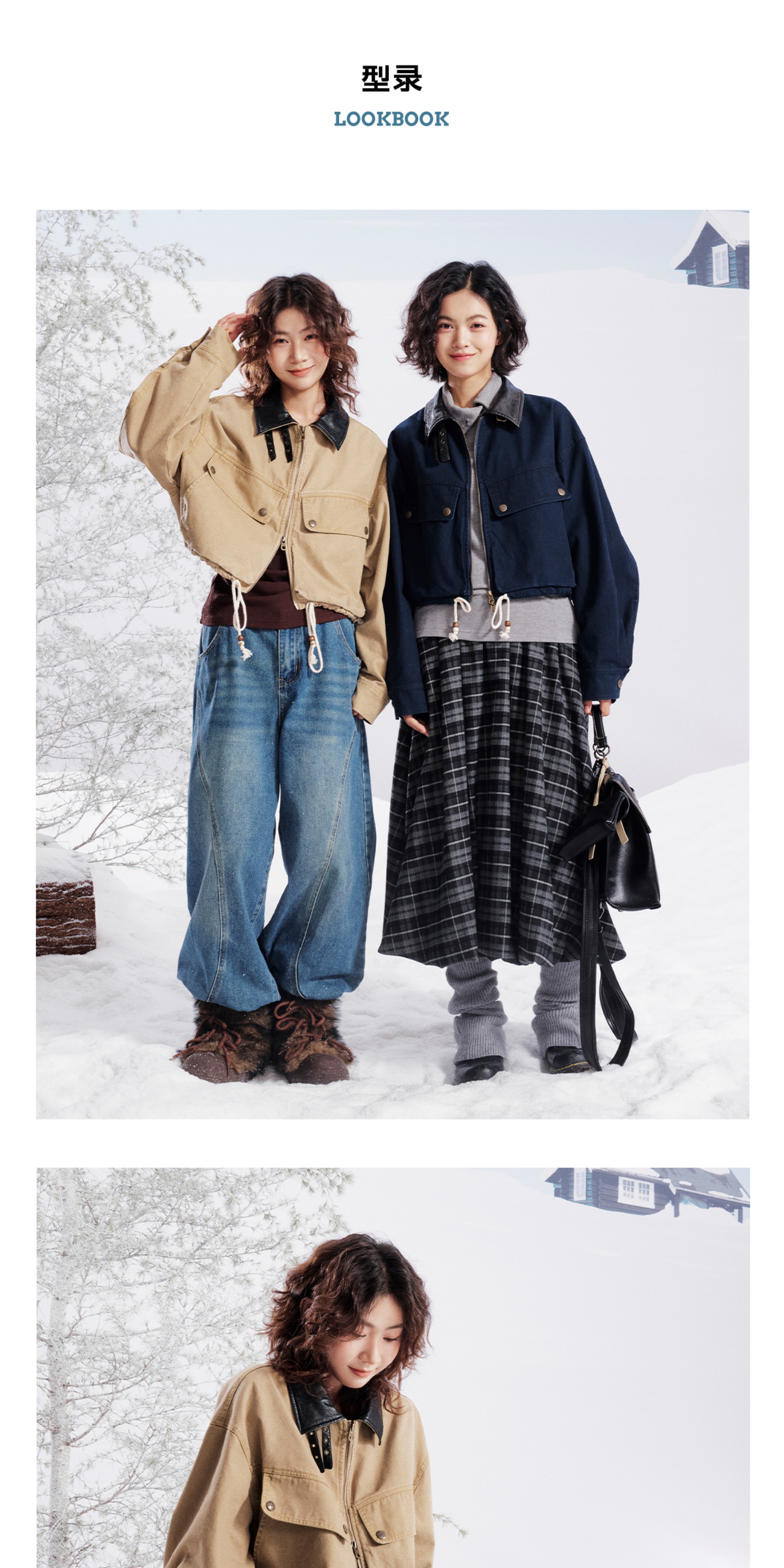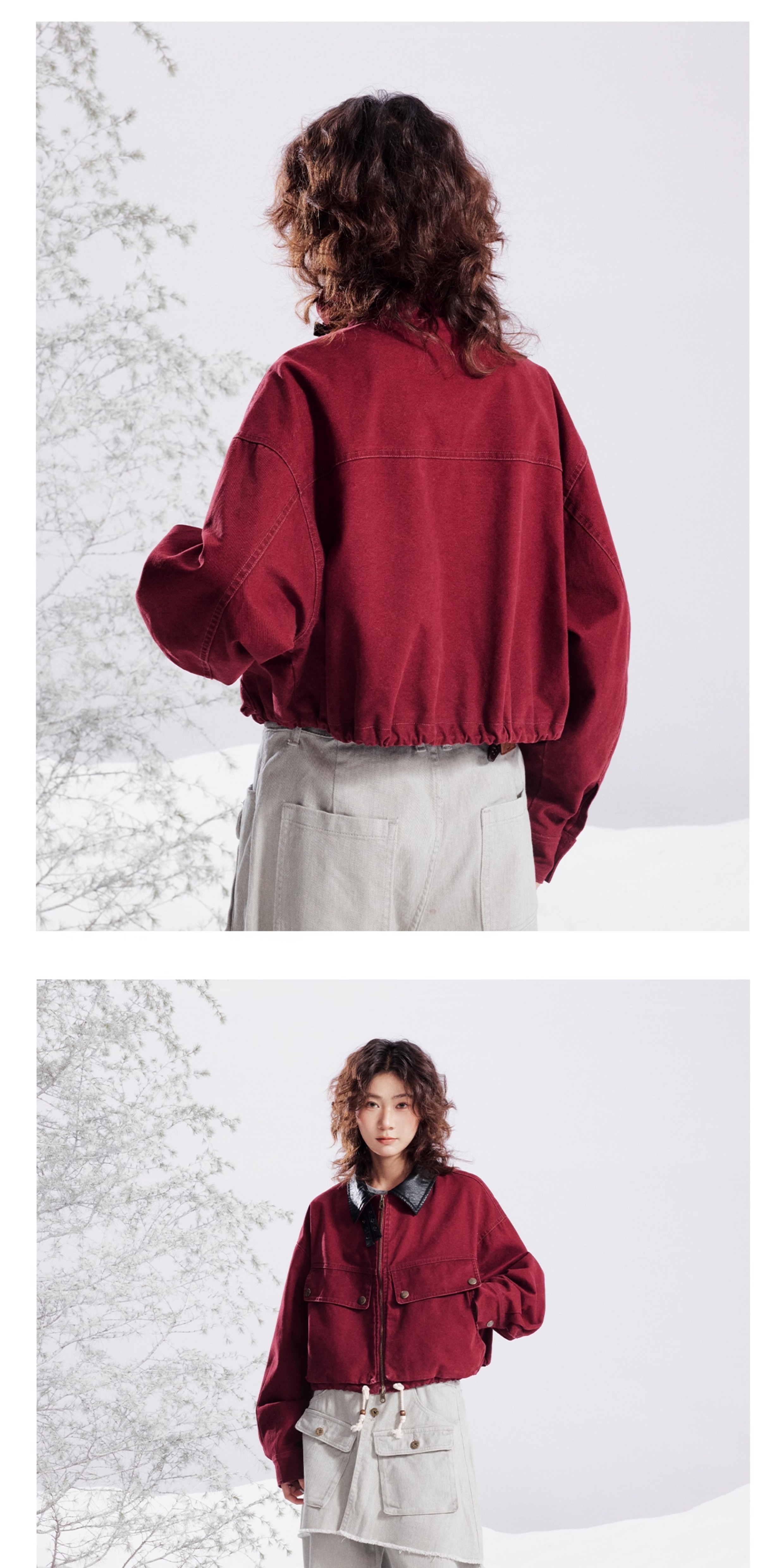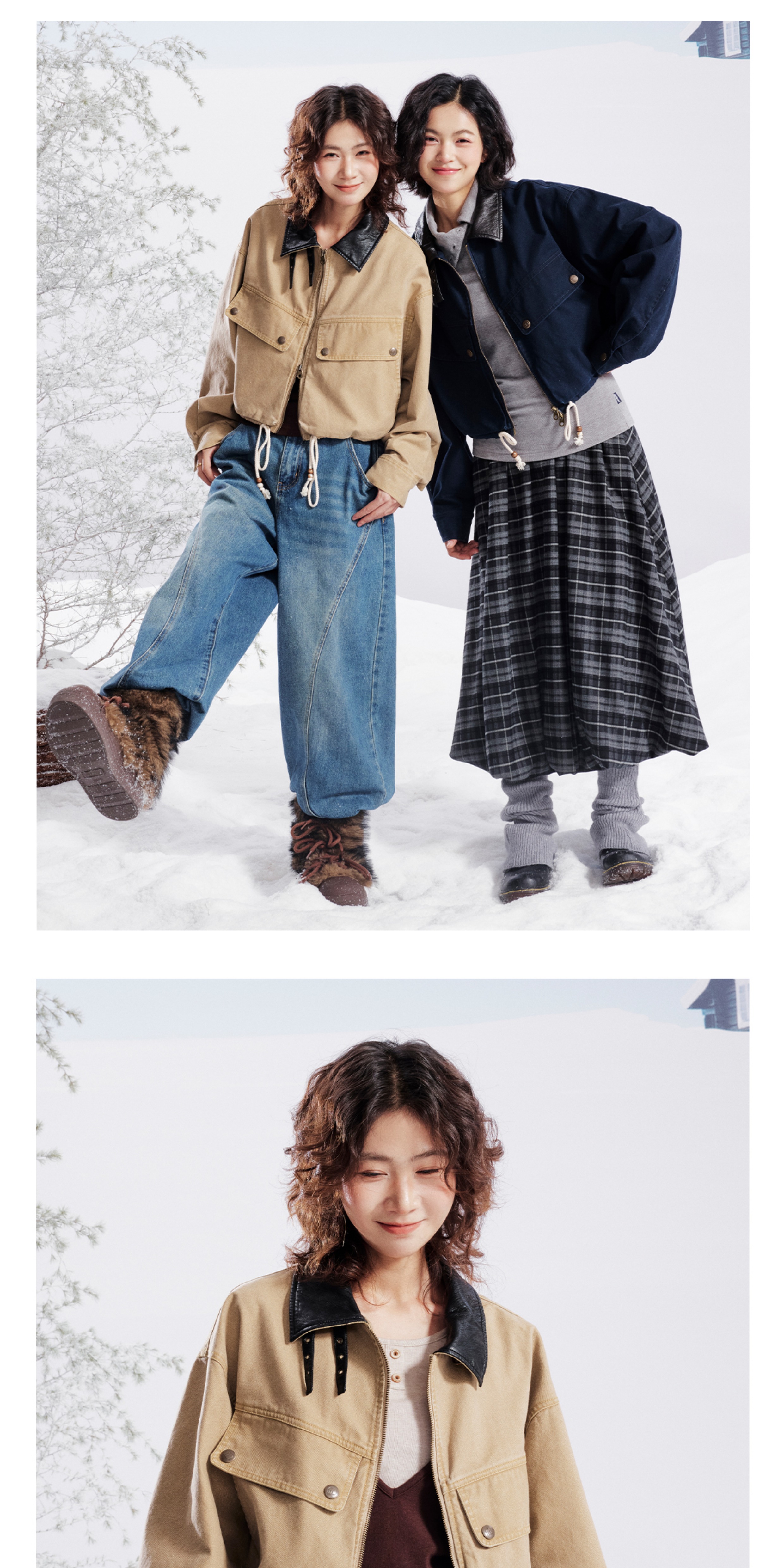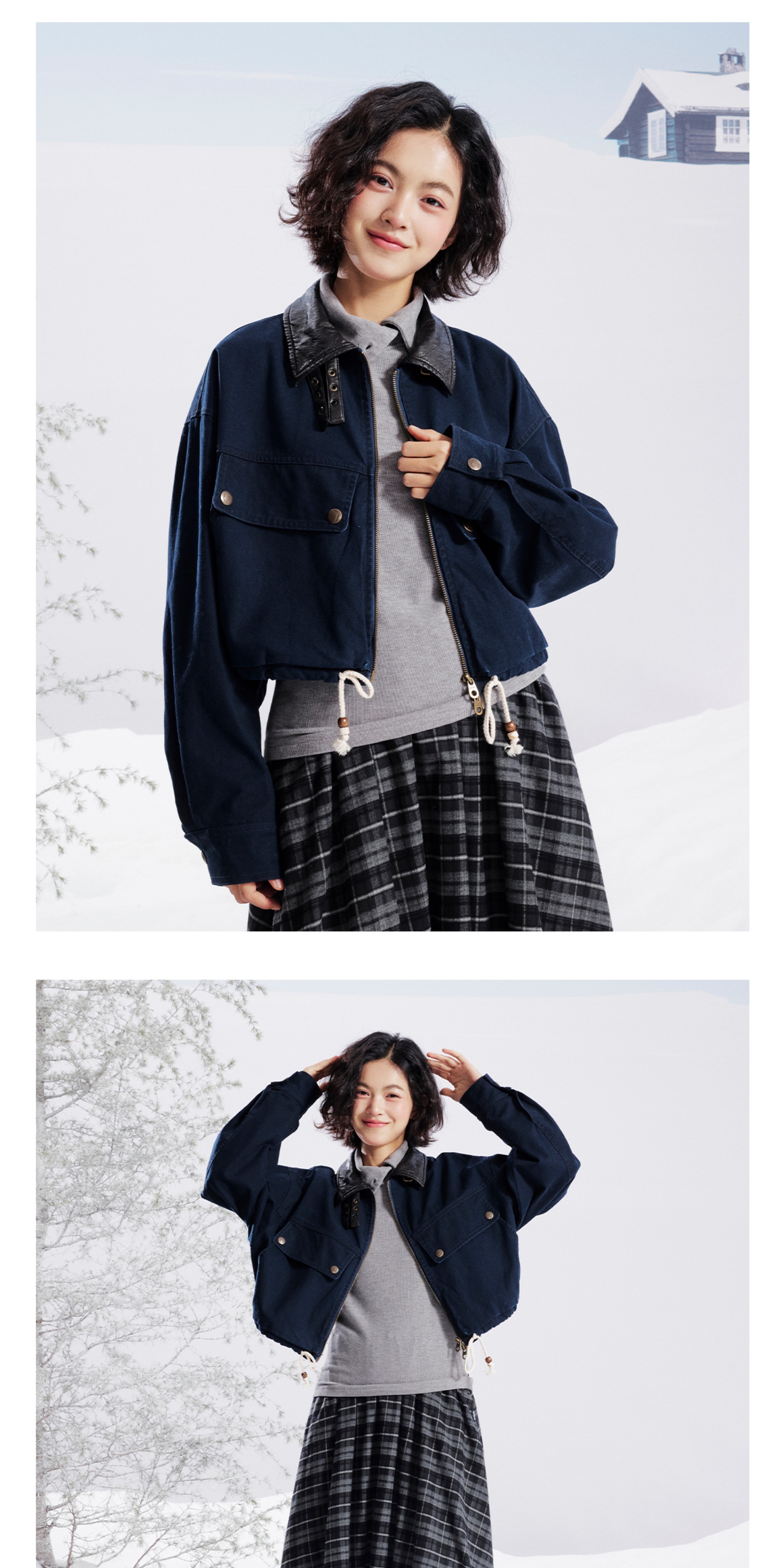 马得工地/MDGDWT131402/巴恩风皮领拼接珠帆水洗夹克