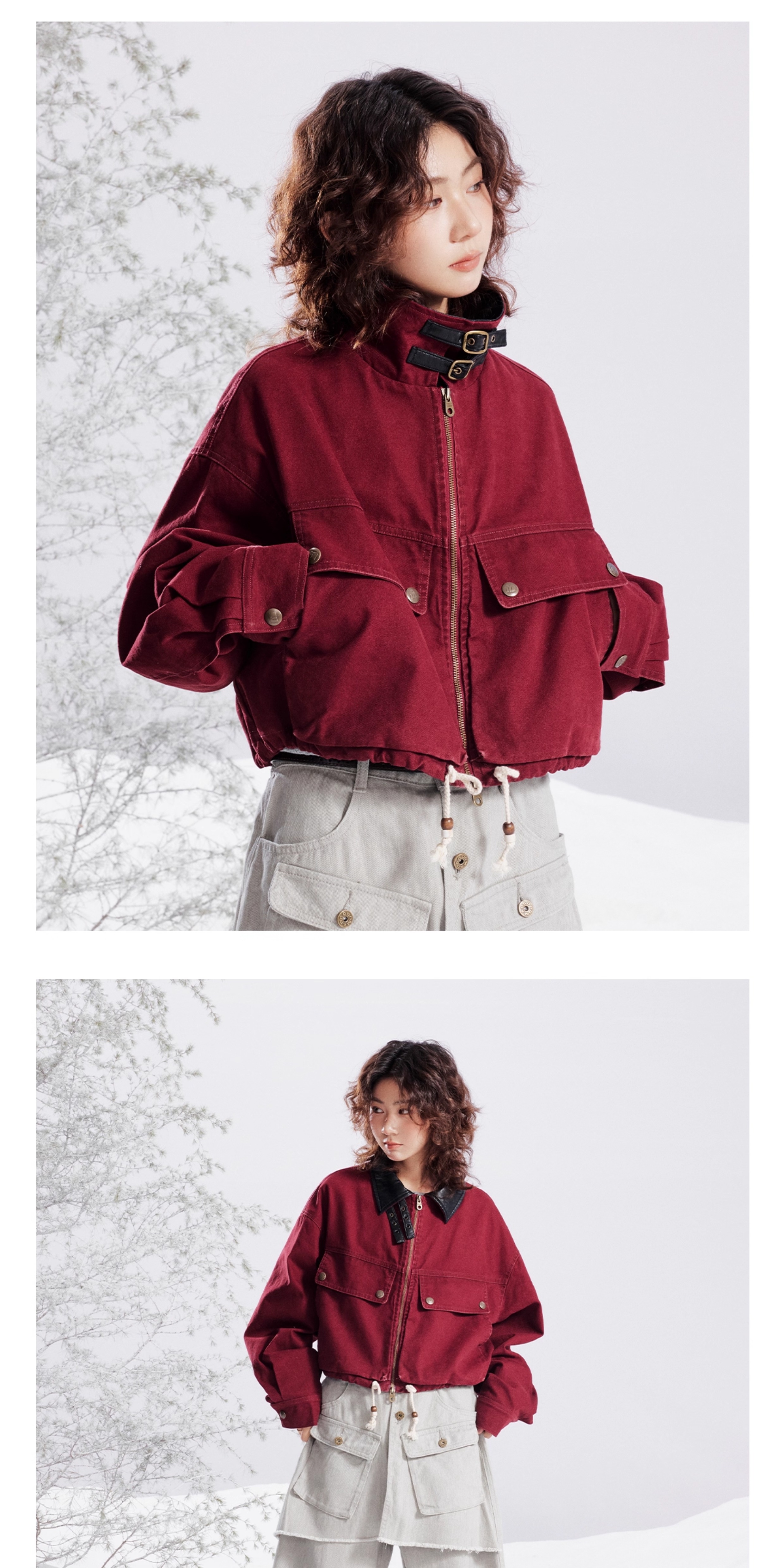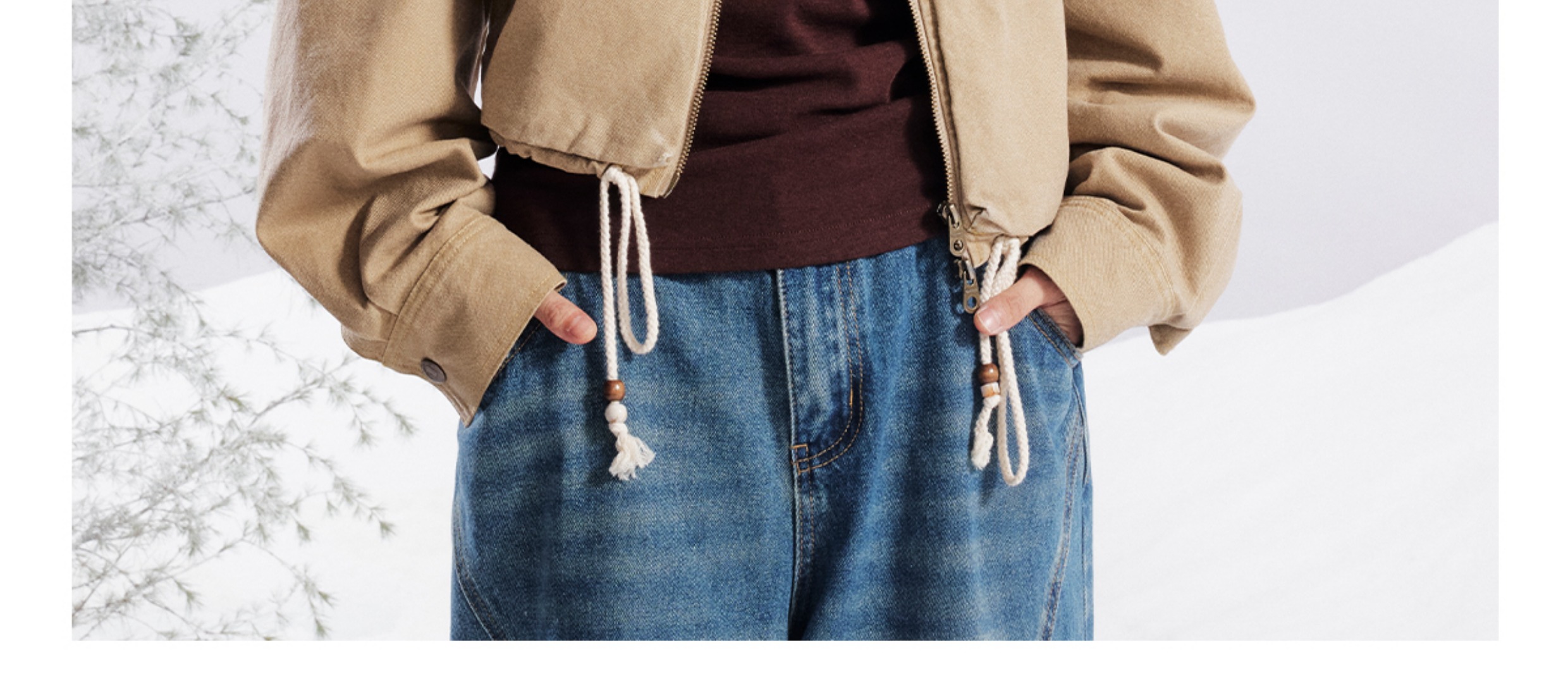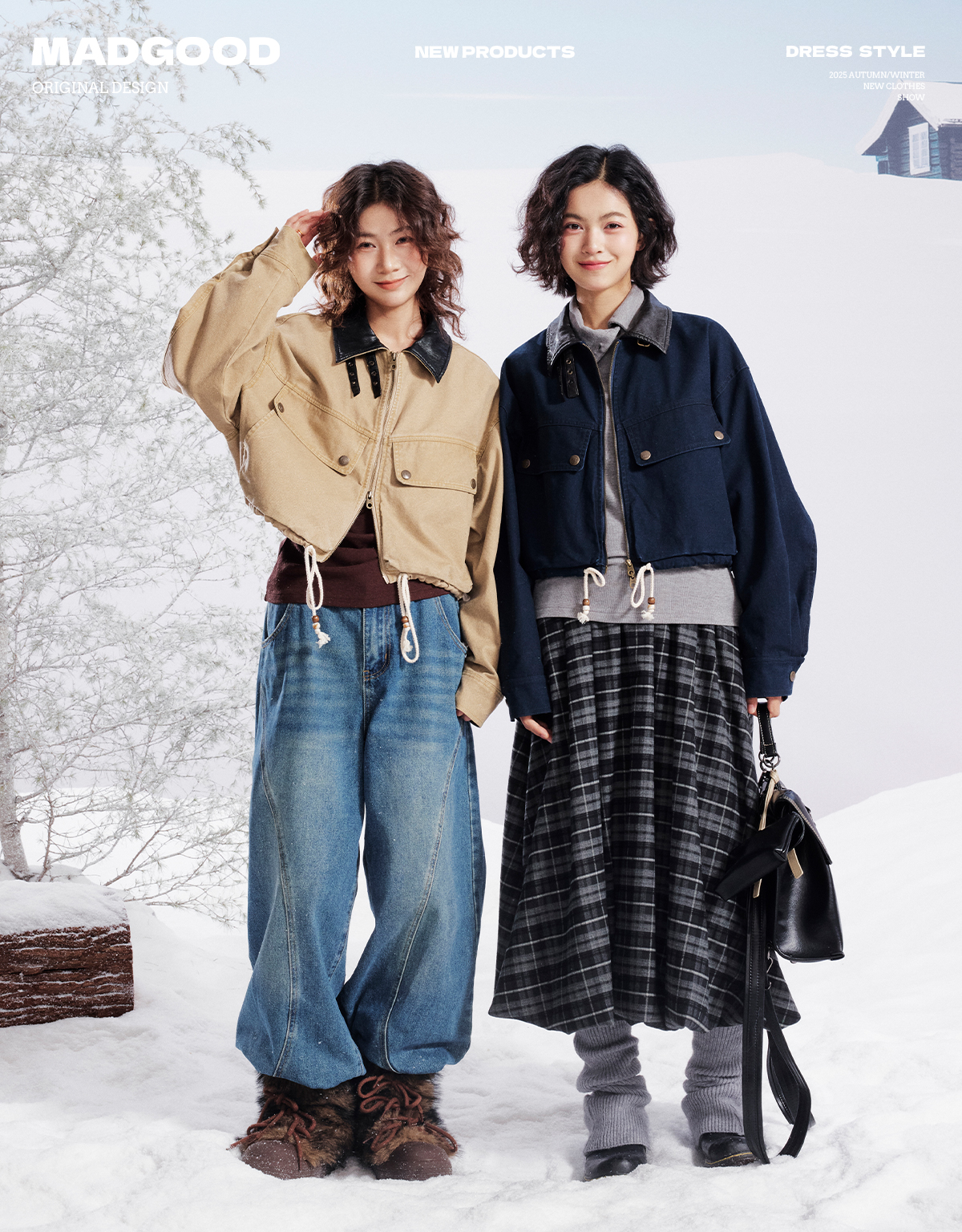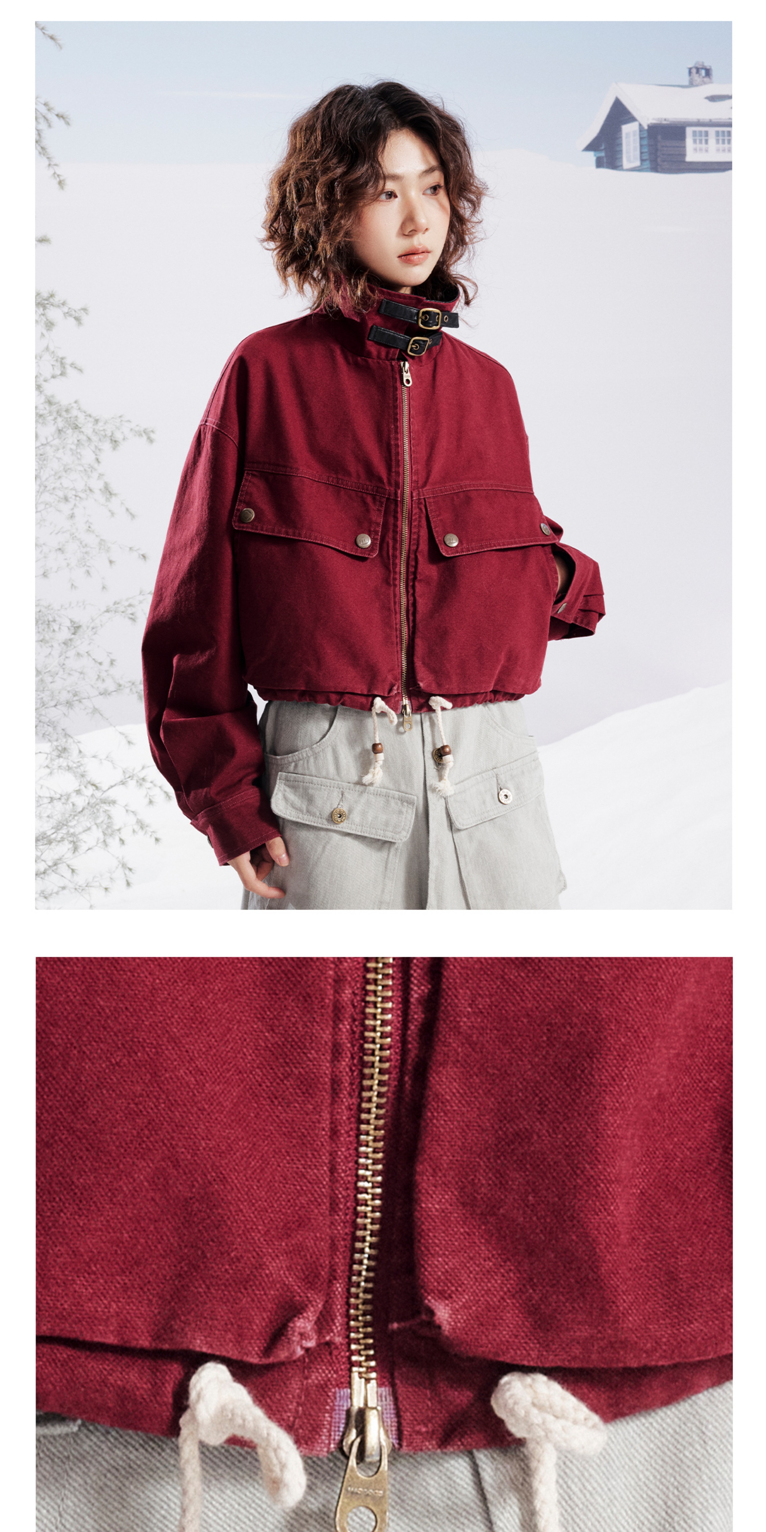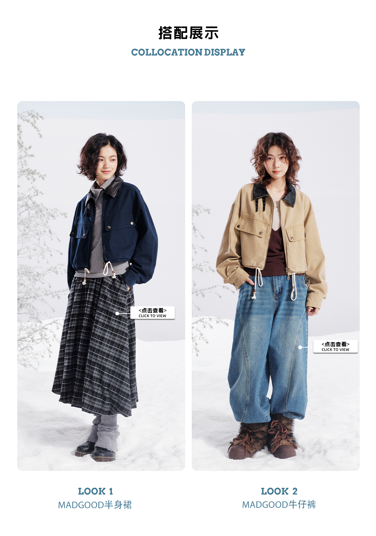 马得工地/MDGDWT131402/巴恩风皮领拼接珠帆水洗夹克