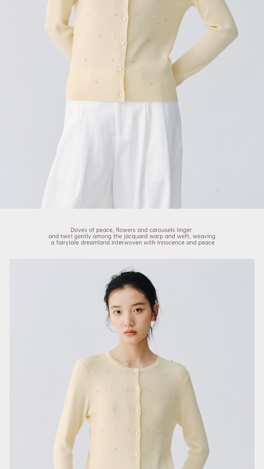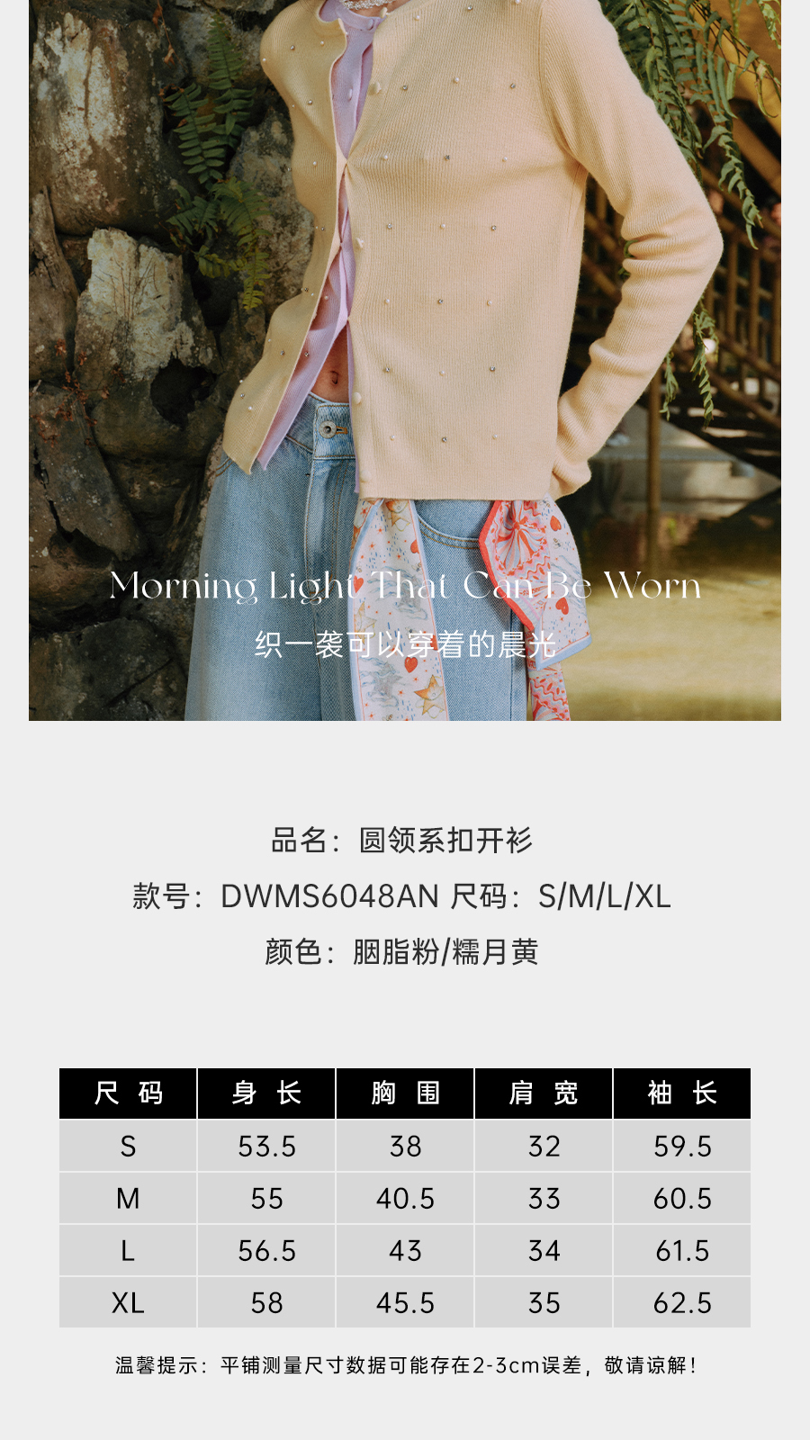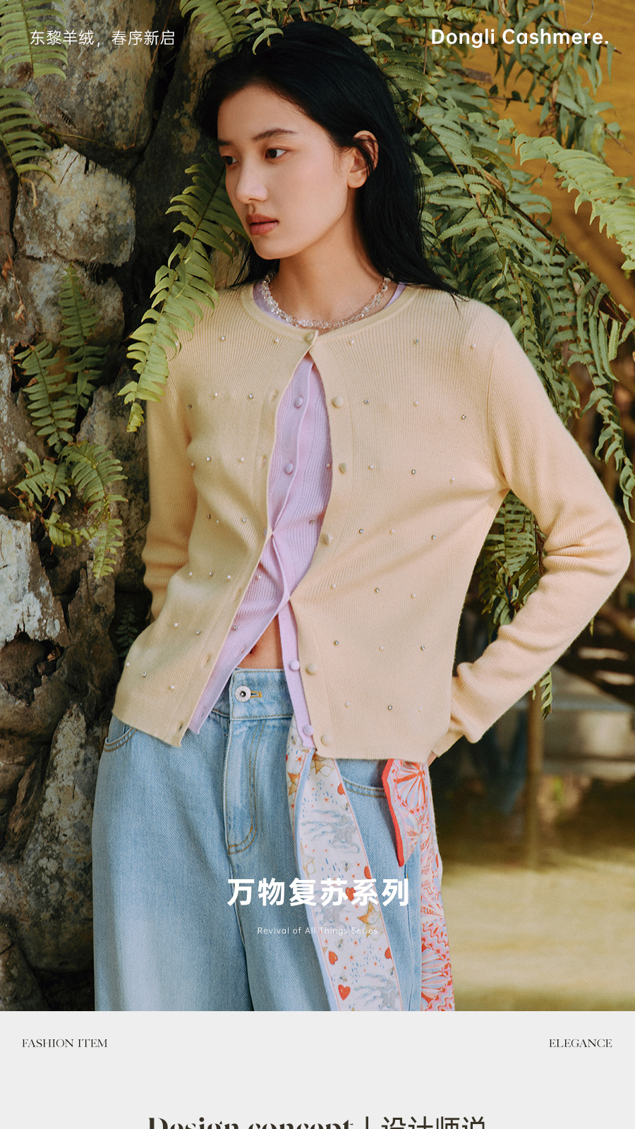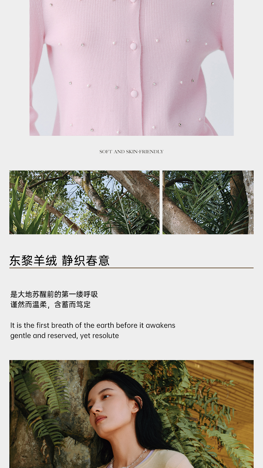 东黎 • 万物复苏 凝露 山羊绒桑蚕丝 女士春季圆领系扣开衫 6048