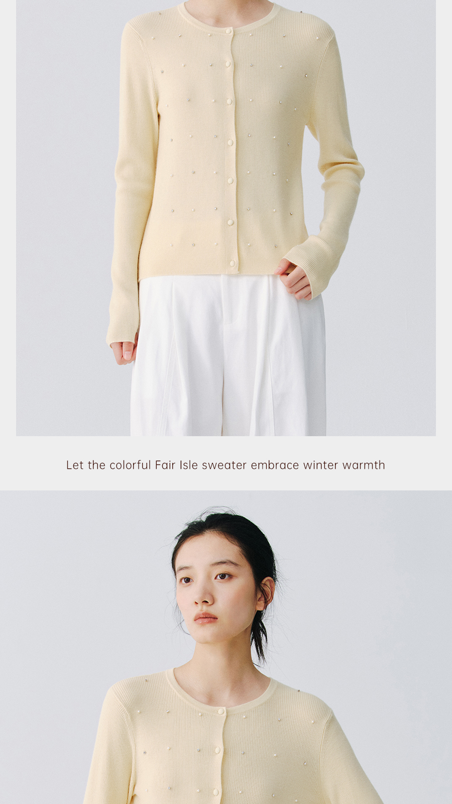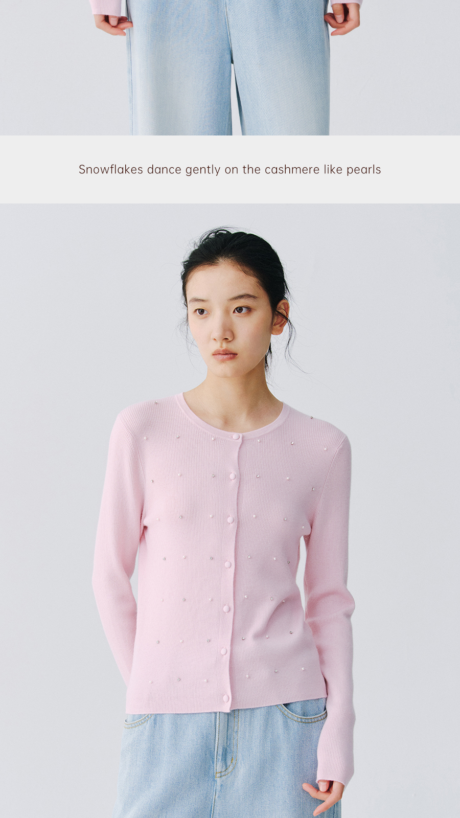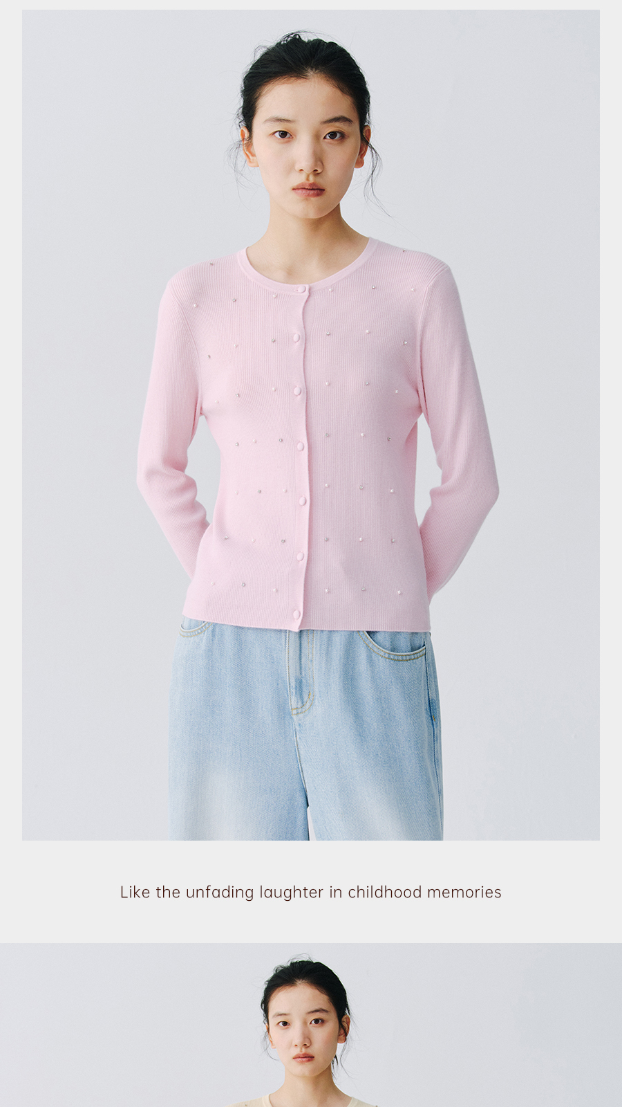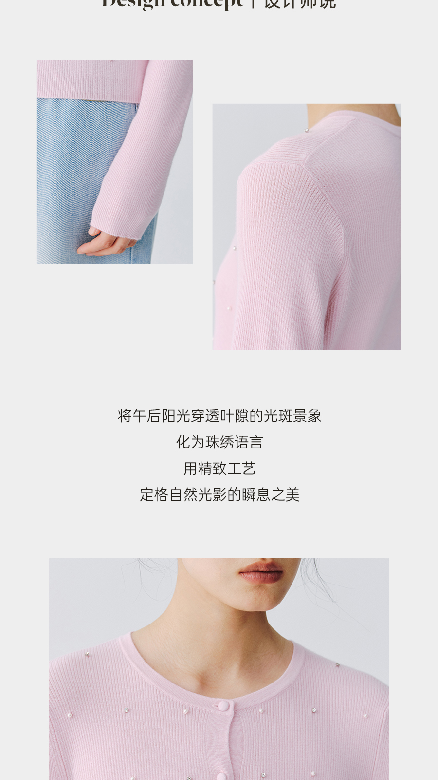 东黎 • 万物复苏 凝露 山羊绒桑蚕丝 女士春季圆领系扣开衫 6048