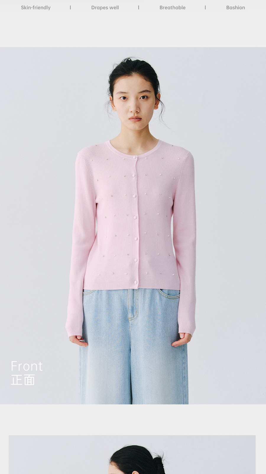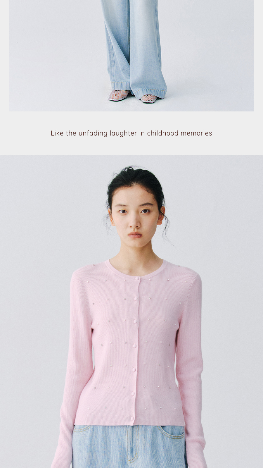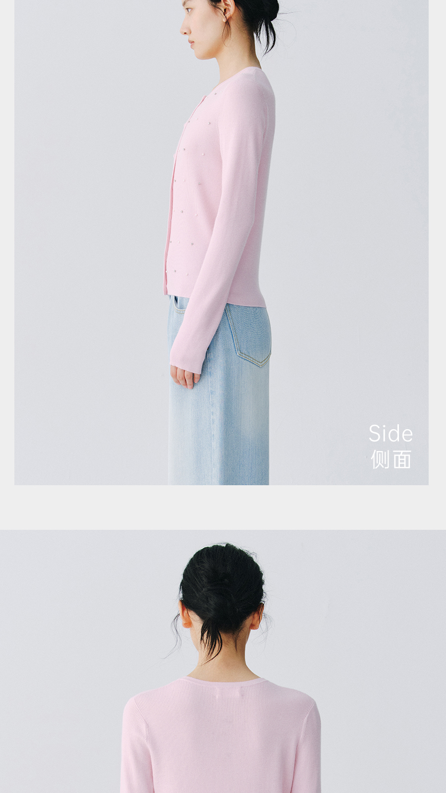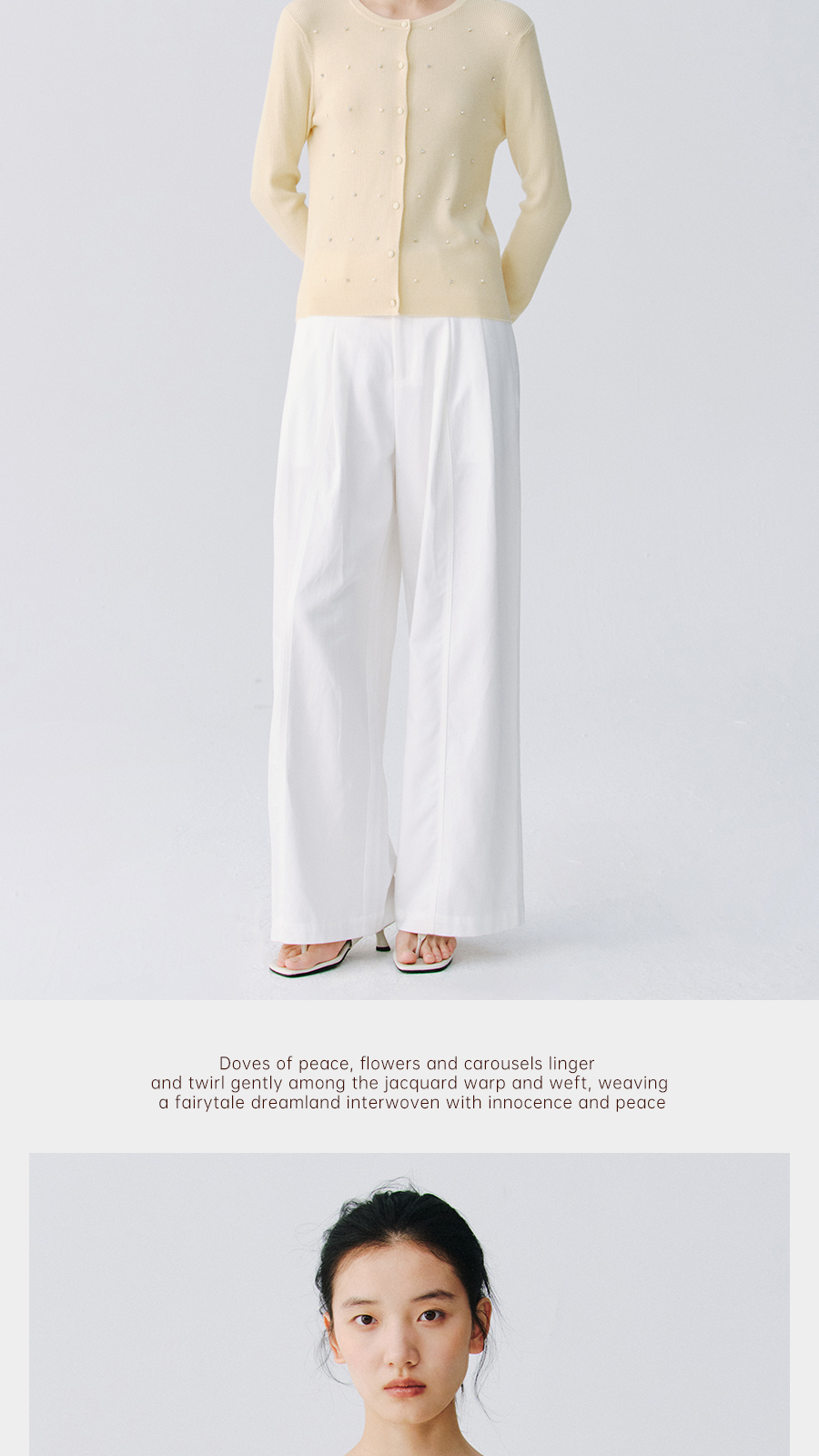 东黎 • 万物复苏 凝露 山羊绒桑蚕丝 女士春季圆领系扣开衫 6048