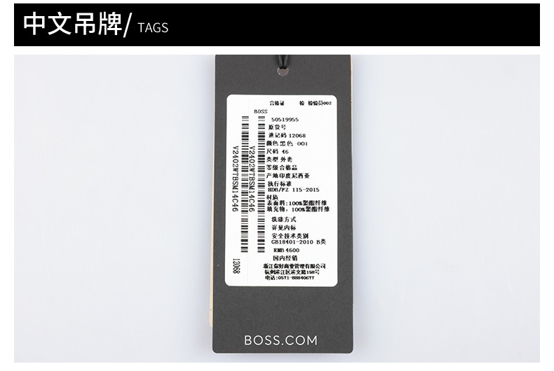 BOSS 男士棉服拉链夹克外套 12068