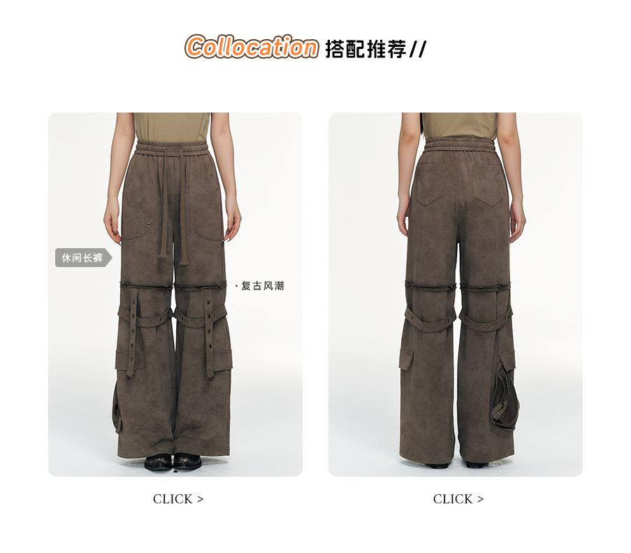 P&X设计师女装冬季外穿修身开叉微喇叭休闲长裤 824409208 黑色
