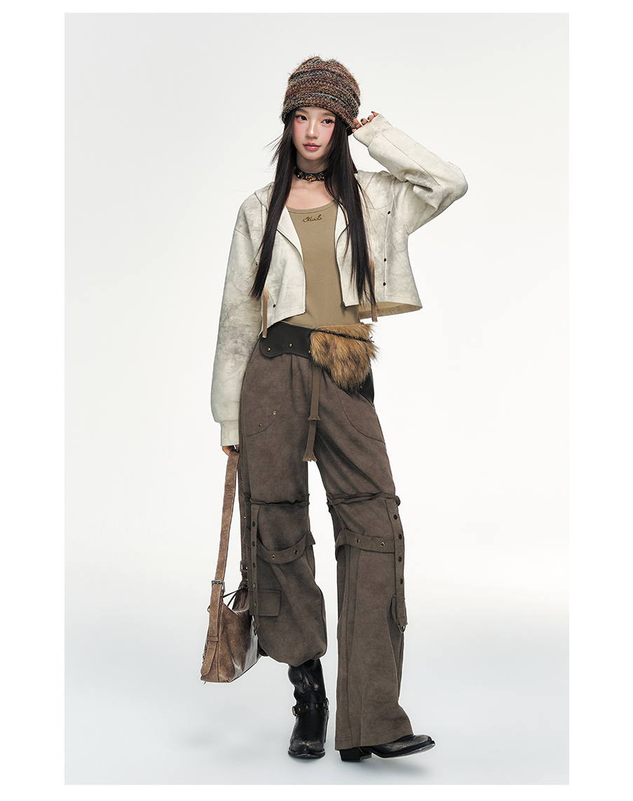 P&X设计师女装新款复古风两件套短款上衣宽松外套825115102 杏/绿