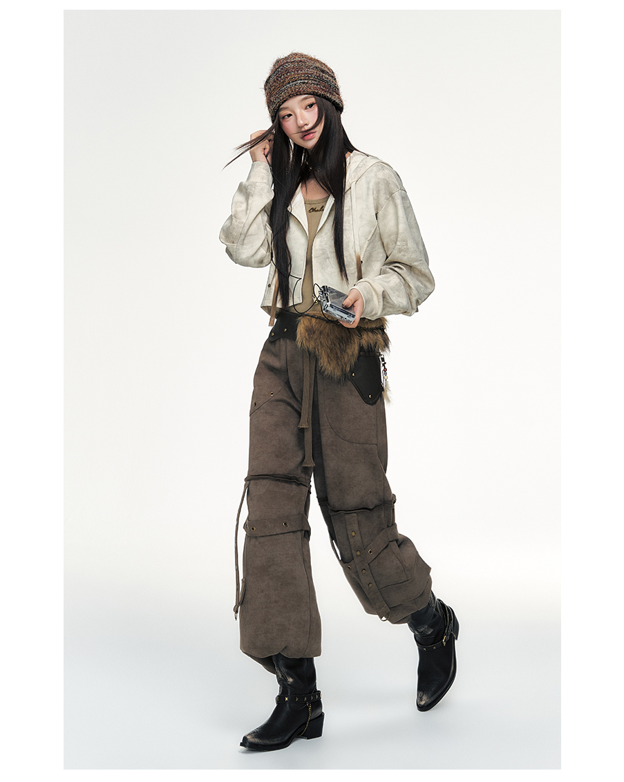 P&X设计师女装2025冬季格子格纹百搭呢料休闲长裤 825409165 咖色