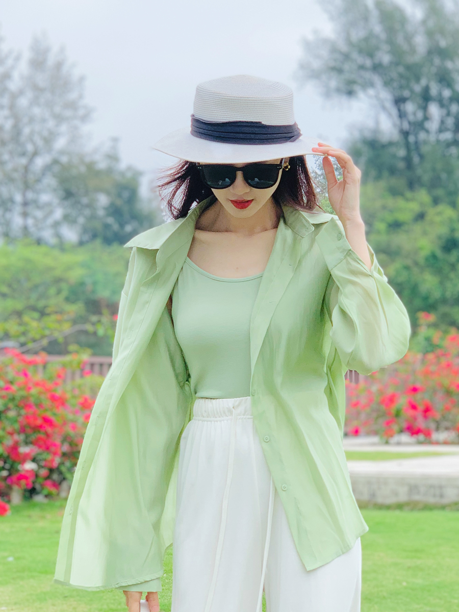面料:衬衫,85%天丝,15%涤纶;背心,97%人棉,7%氨纶