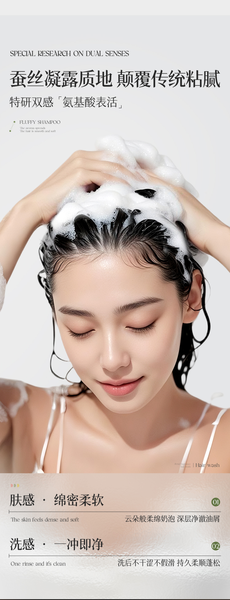 蚕丝洗发水柔顺改善毛躁干枯滋养头发修复烫染护发露去屑控油官方