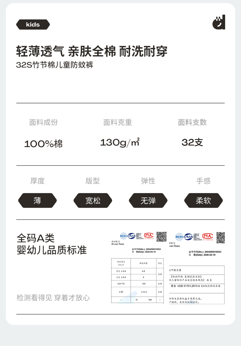 朵熙儿夏季儿童防蚊裤男女童纯棉长裤秋冬薄款中大童休闲宝宝灯笼裤