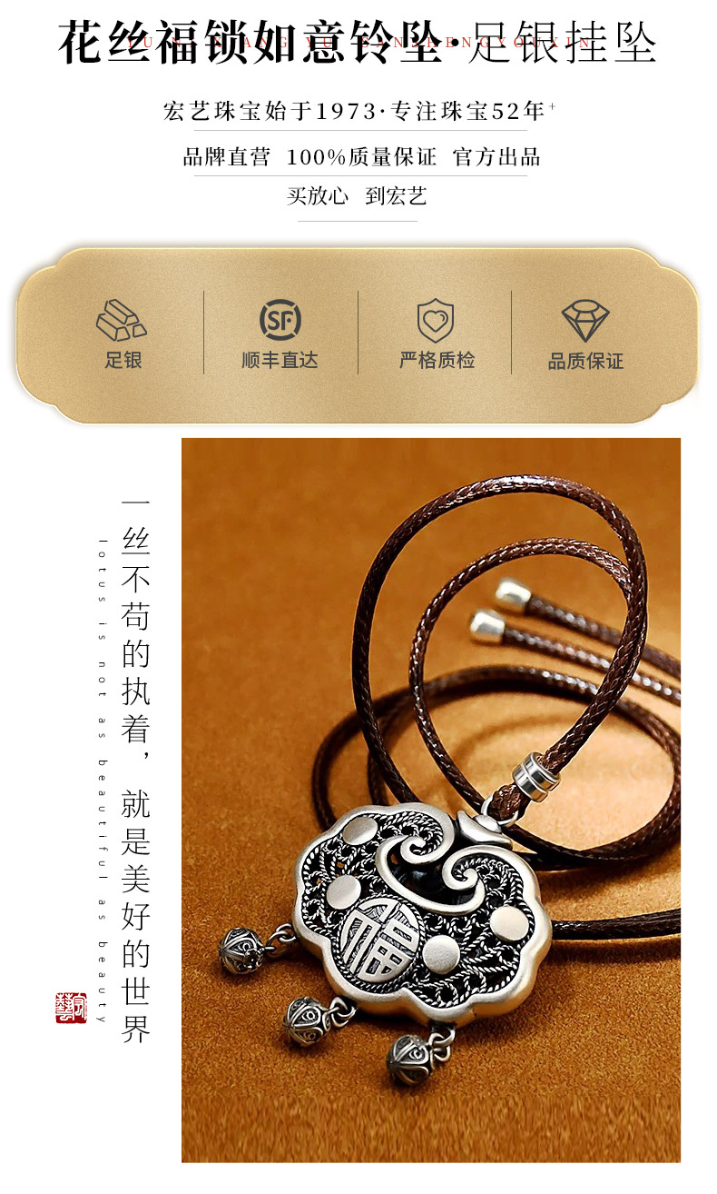 【宏艺珠宝】花丝福锁如意铃坠·足银挂坠