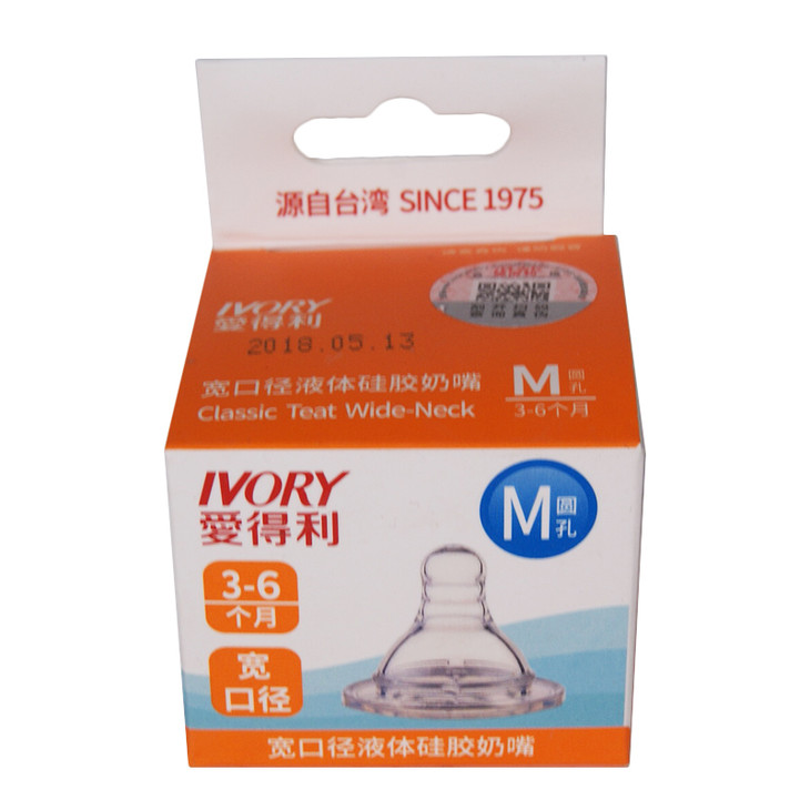 商品名称:爱得利(IVORY)爱得利宽口径液体硅胶奶嘴 M
