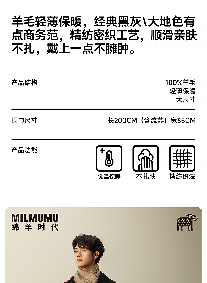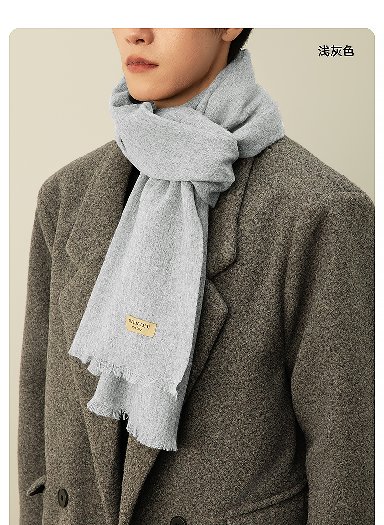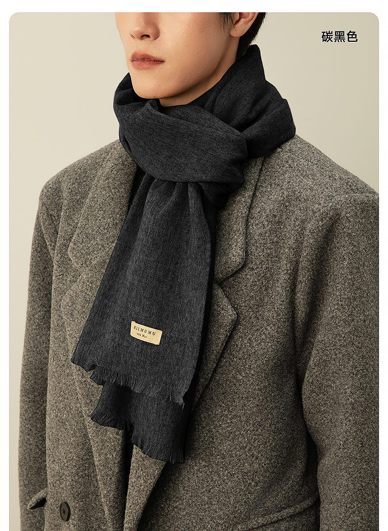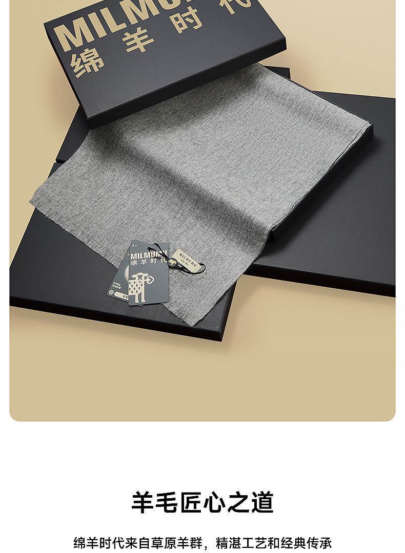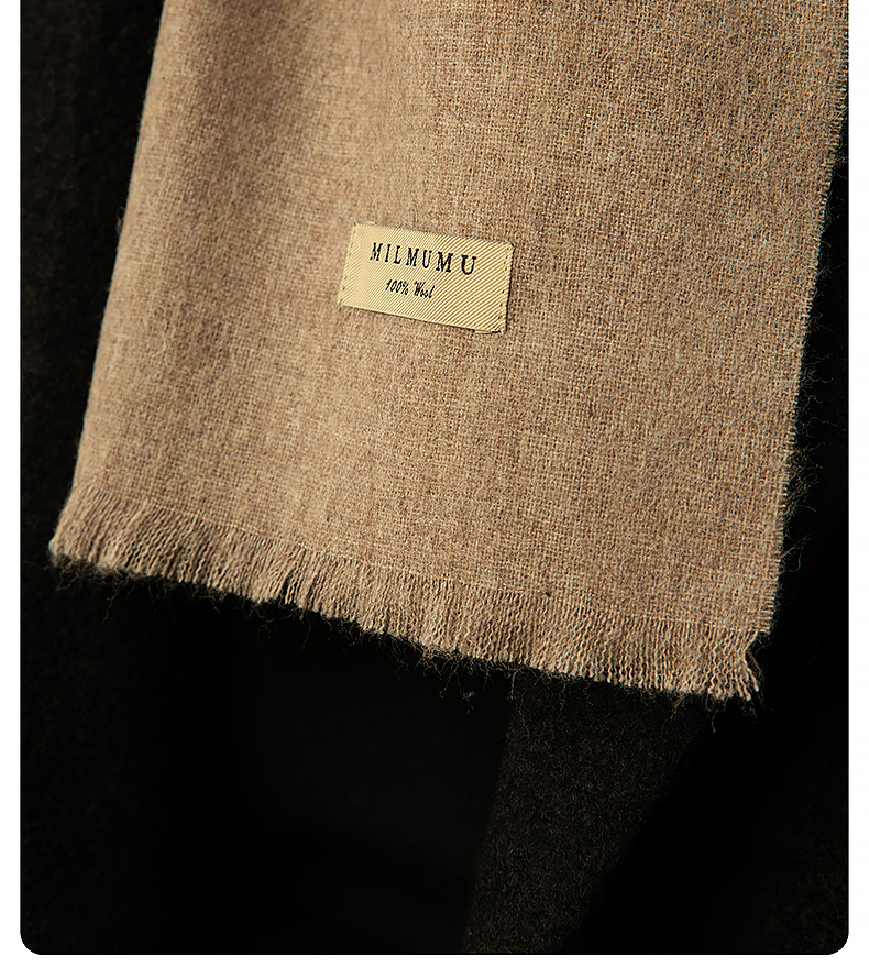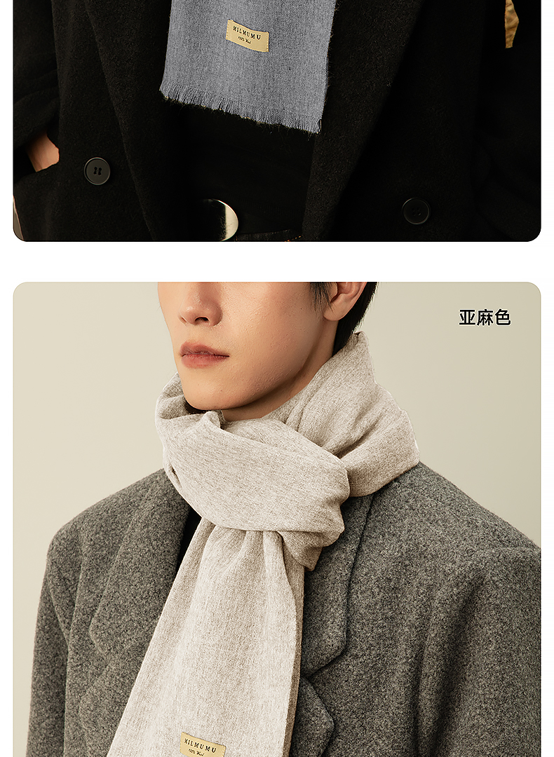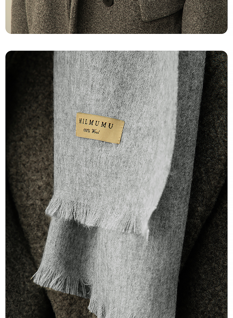 MILMUMU 商务精纺百分百羊毛短须围巾 男女同款礼盒装 200*35CM 精纺密织工艺,轻薄保暖
