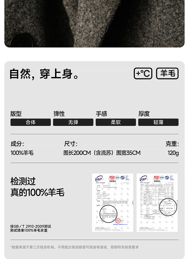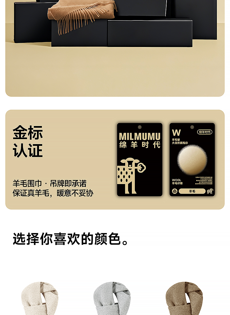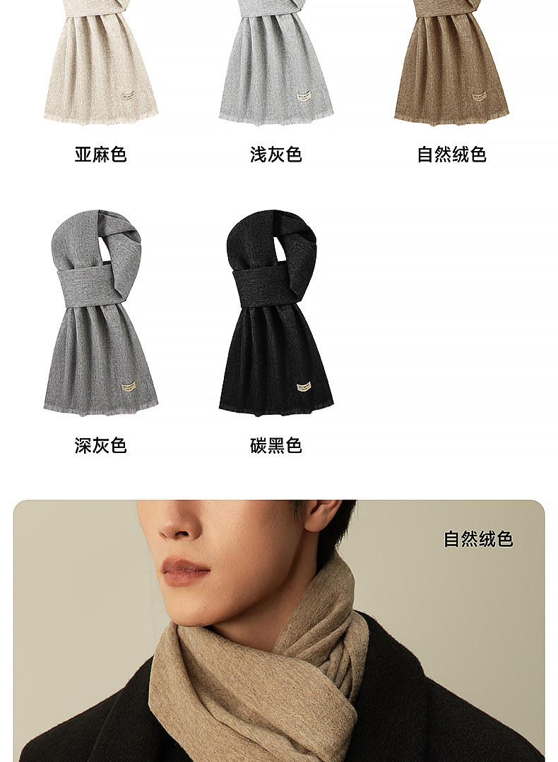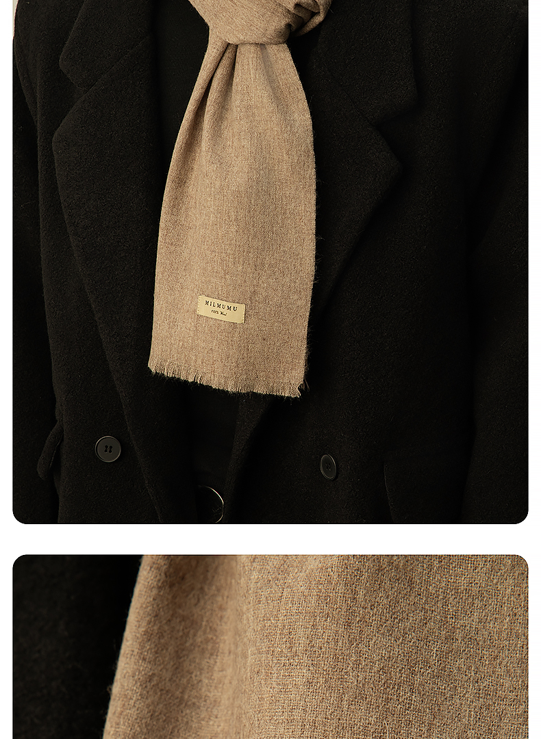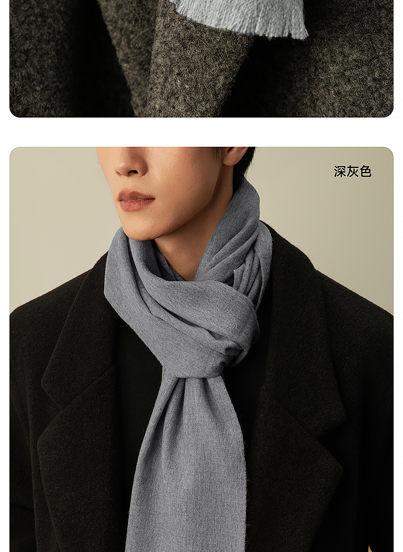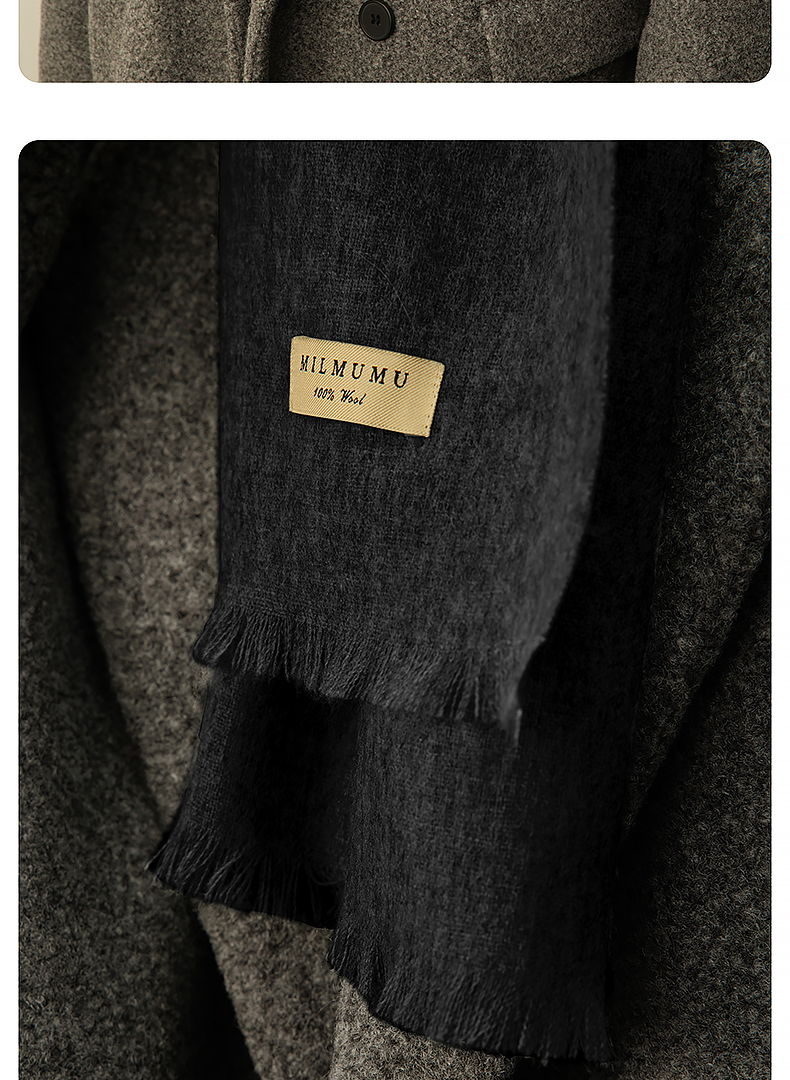 MILMUMU 商务精纺百分百羊毛短须围巾 男女同款礼盒装 200*35CM 精纺密织工艺,轻薄保暖