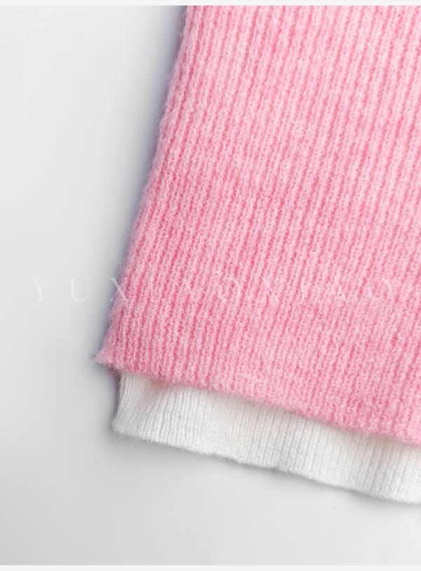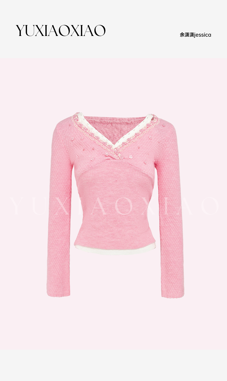 余潇潇【桃气可可】时尚超细羊毛混纺拼接水晶珠显瘦v领针织两件套