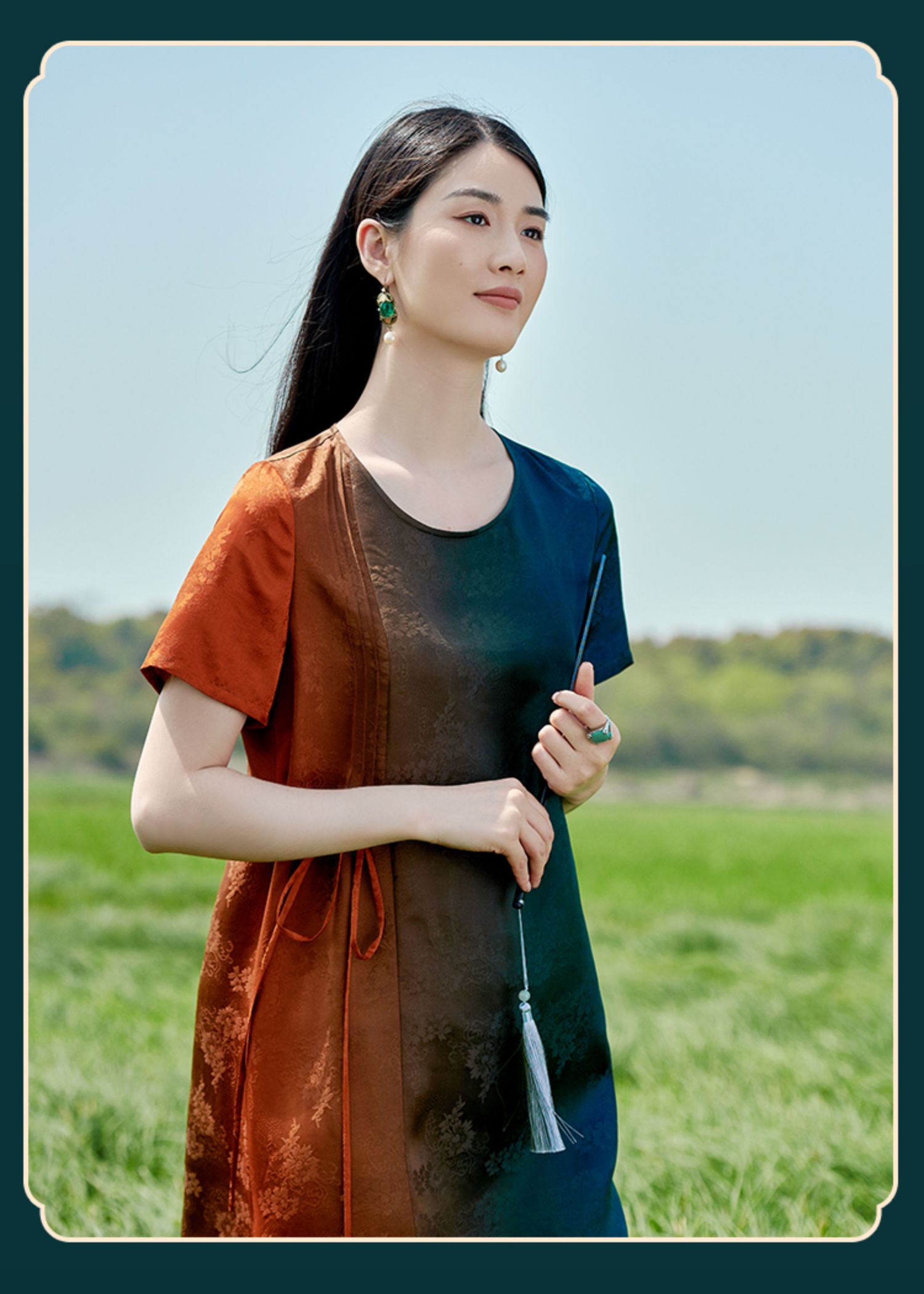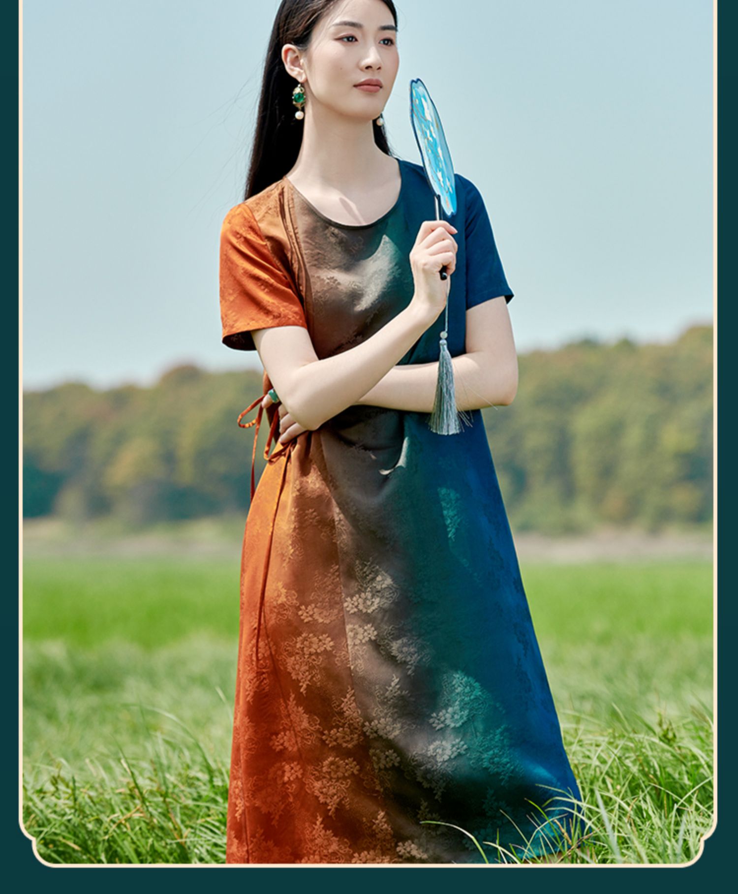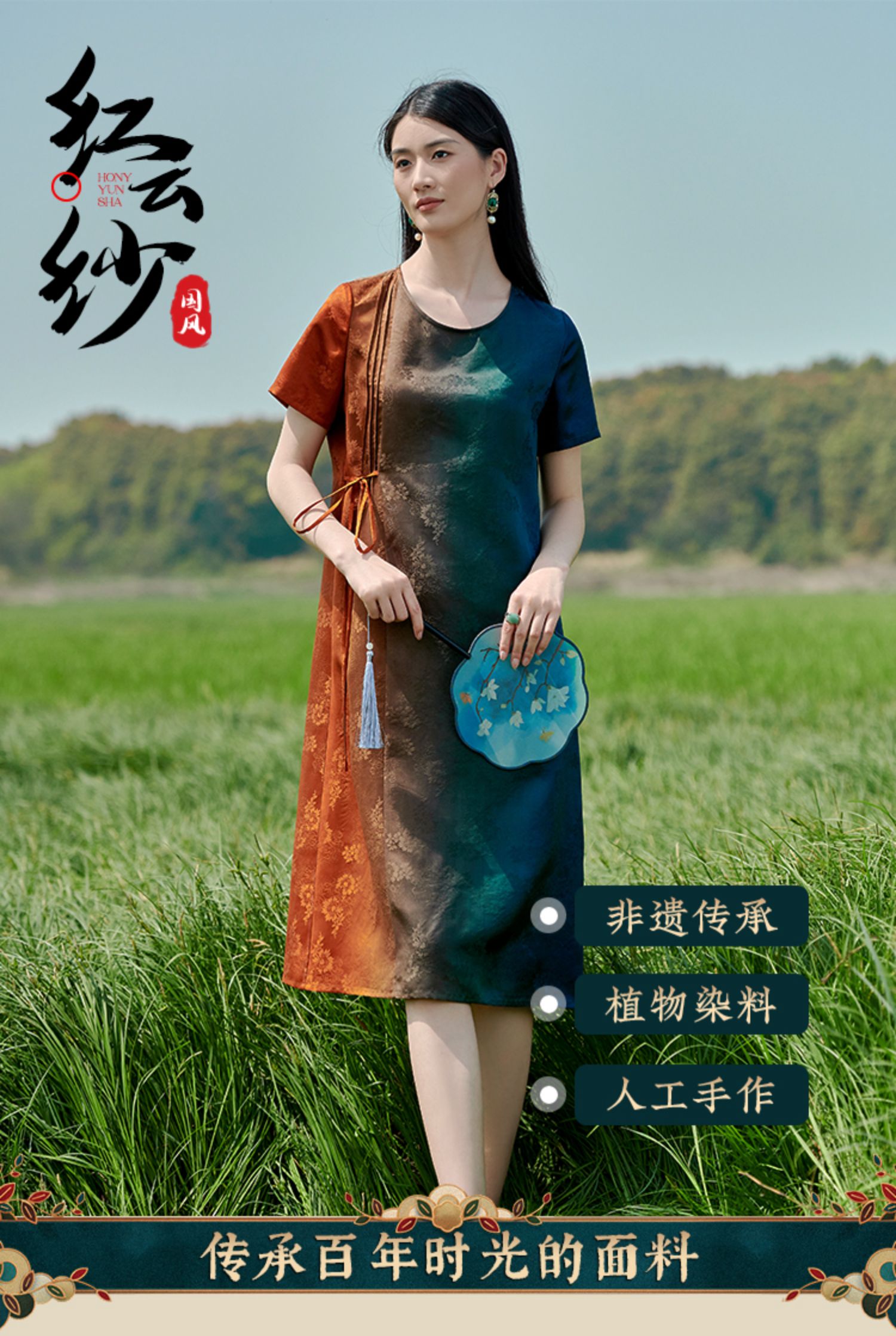 佐尔美2022夏季新款 红云纱香云纱桑蚕丝提花渐变连衣裙女E22LS76