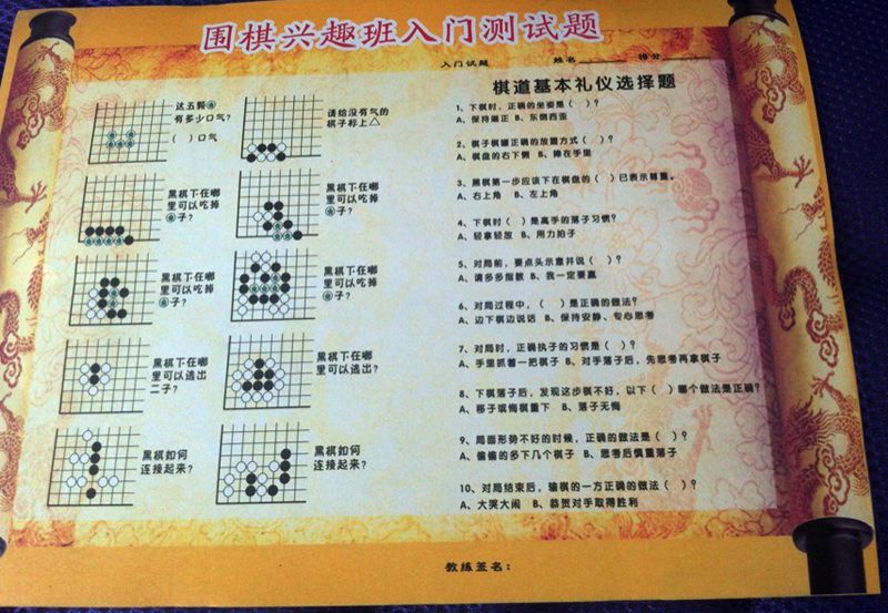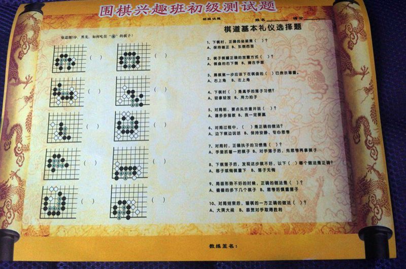 或者开学时候搞围棋招生活动用,让孩子开开心心地考试,然后获得奖励。