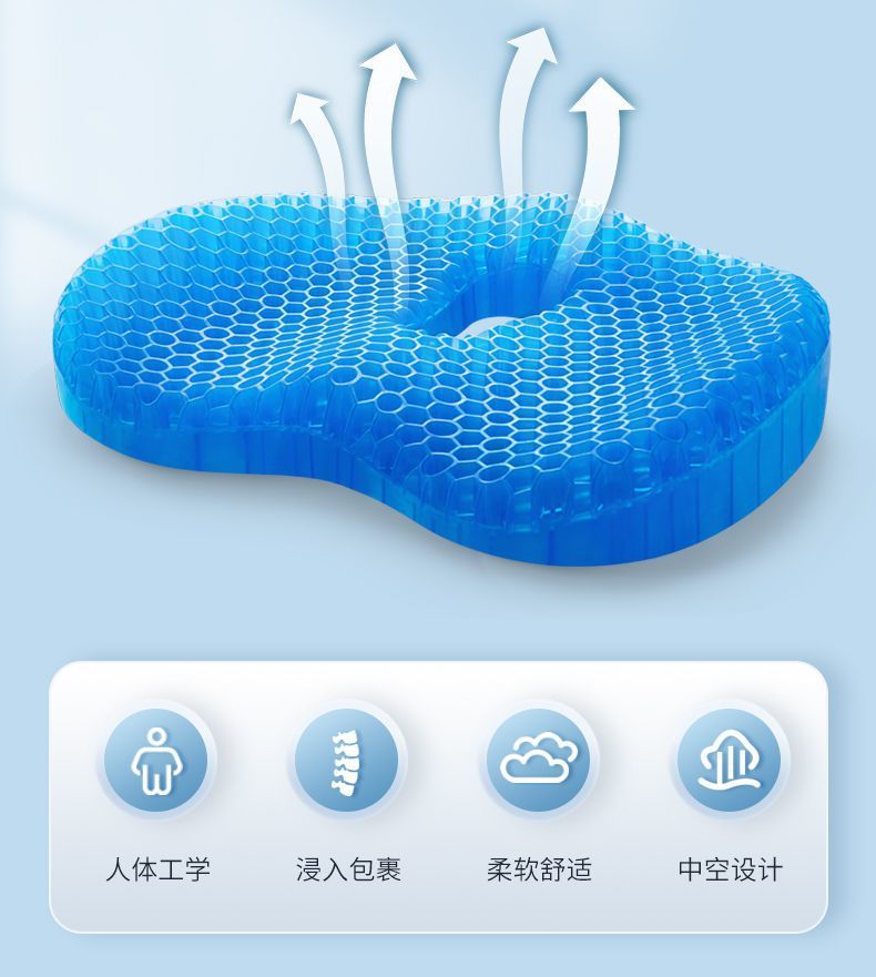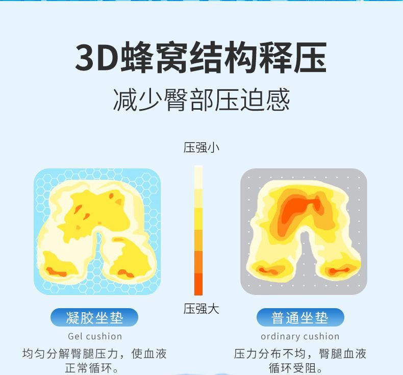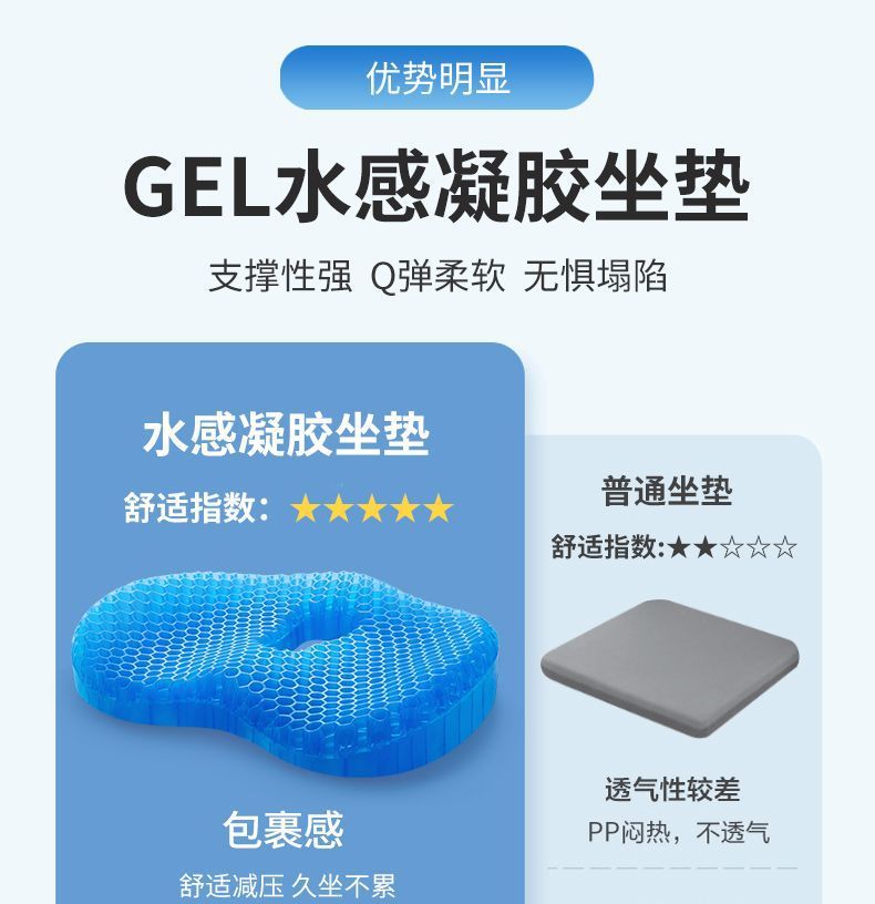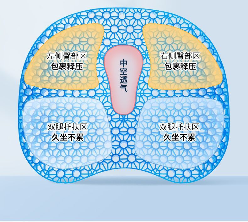 【物理降温❗久坐不累】果冻蜂窝凝胶坐垫硅胶冰垫椅子垫办公室久坐座垫夏季汽车凉垫屁垫。rh