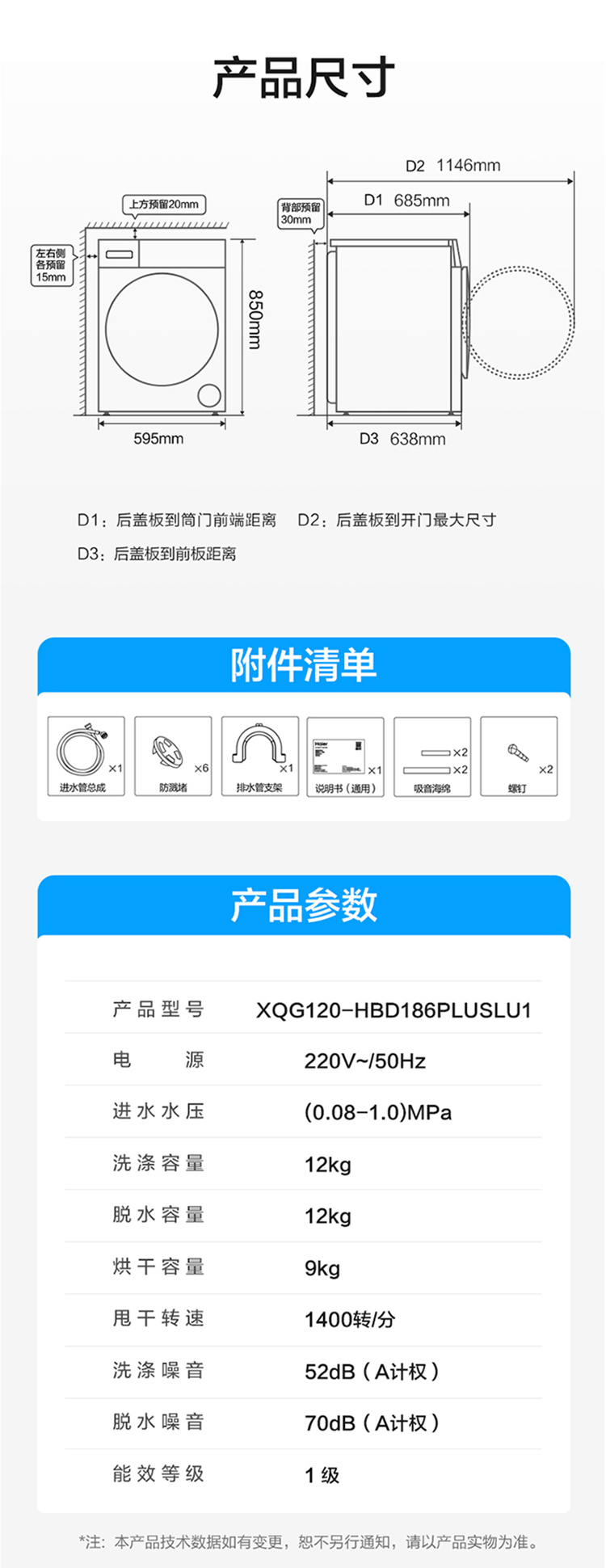 海尔(Haier)洗衣机 XQG120-HBD186PLUSLU1