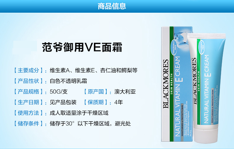 【YZ】BLACKMORES天然维生素E润肤霜(冰冰霜)50g 原价110元