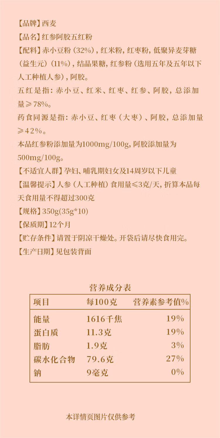 西麦红参阿胶五红粉350g