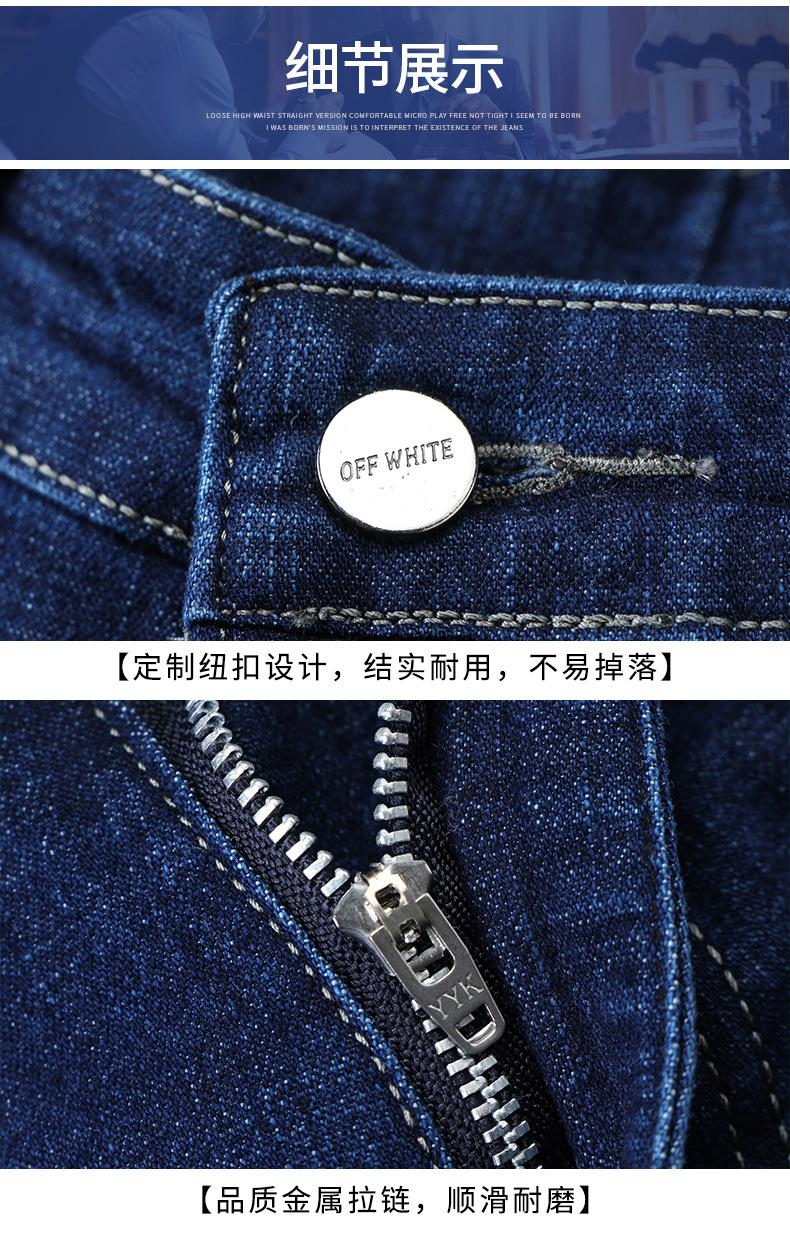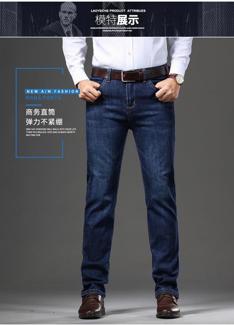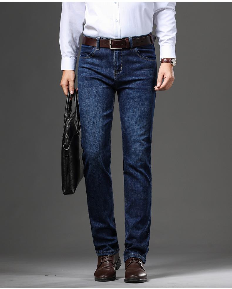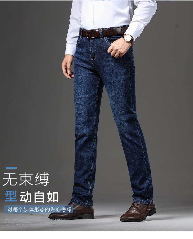 秋冬季男士休闲牛仔裤中年中腰棉质蓝色爸爸男装长裤