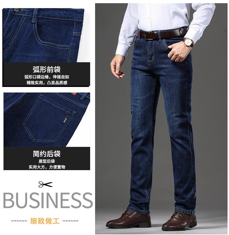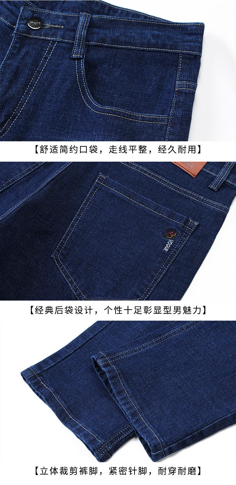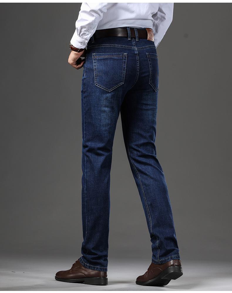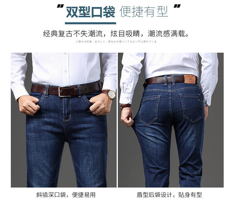 秋冬季男士休闲牛仔裤中年中腰棉质蓝色爸爸男装长裤