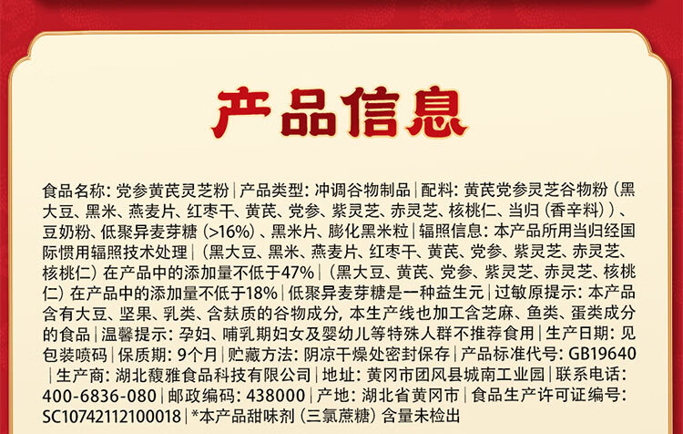 五谷磨房党参黄芪灵芝粉 1.176kg/盒