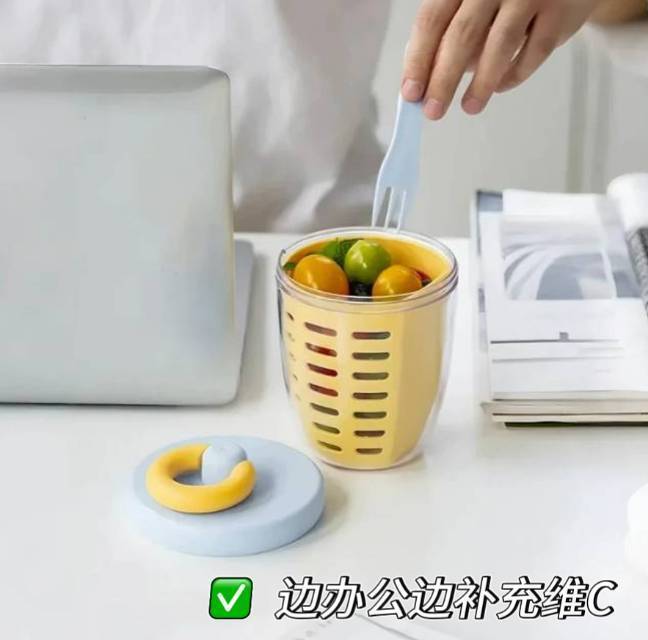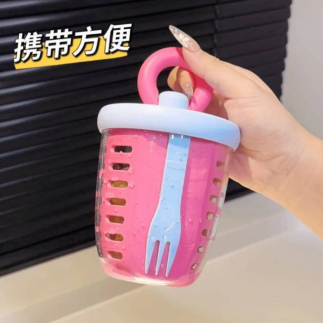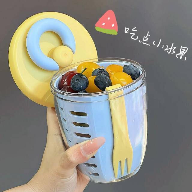 而且水果杯还自带便捷水果叉,不用再额外找叉子啦 随时随地,想叉起一块水果吃就吃,主打一个“贴心又方便”,细节控真的狠狠爱住