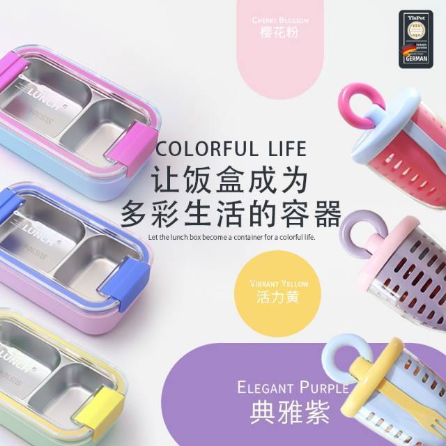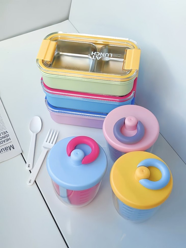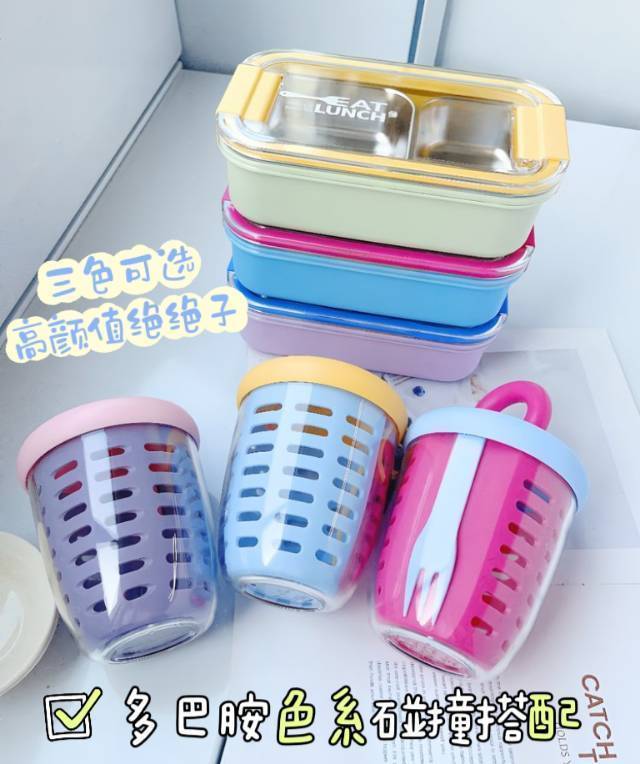 💥多巴胺配色,颜值高到飞起🌈 蓝粉保鲜盒搭配紫粉杯子,蓝色沉稳静谧,粉色甜美活泼,两者碰撞,像把梦幻的晚霞装了进来,满满的青春气息。 蓝红保鲜盒和蓝红杯子组合,经典红蓝 CP,视觉冲击感强,时尚又吸睛,日常带出门超亮眼。 黄绿保鲜盒配蓝黄杯子,清新的黄绿带来春天般的活力,蓝黄的撞色设计又增添了几分俏皮,看着就心情愉悦。
