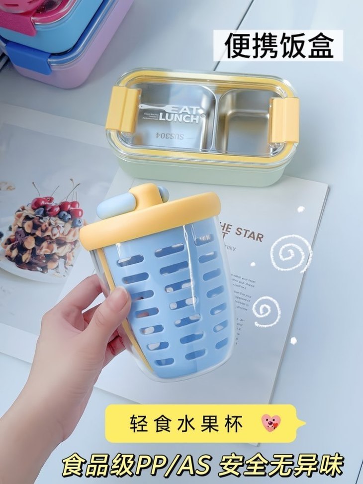 饭盒带餐具🍽水果杯同时也附赠水果叉🍴便携与实用性超高✌🏻