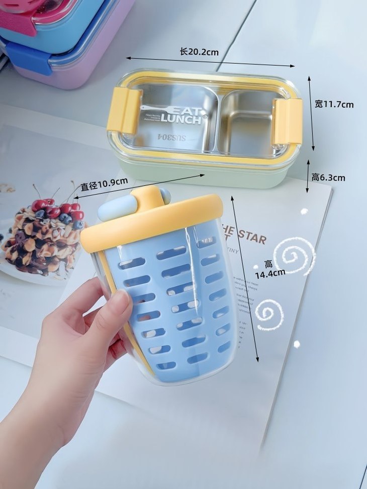 🔻食品级304不锈钢内胆 耐腐蚀,耐高温,0涂层 有检测报告‼️ ‼️饭盒内胆304食品级更安全更放心,水果杯采用食品级pp材质可装水果、酸奶杯健康环保😆